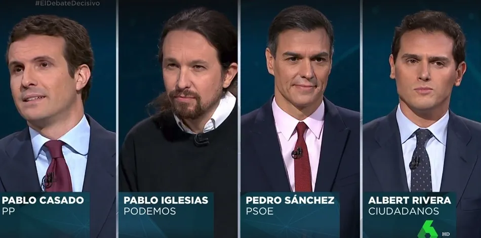 24 horas después, los principales candidatos a la presidencia del Gobierno -Pedro Sánchez (PSOE), Pablo Casado (PP), Albert Rivera (Ciudadanos) y Pablo Iglesias (Unidas Podemos)- se volvían a ver las caras en un intenso debate electoral, el debate en Atresmedia a tan solo cinco días de la cita con las urnas. Un debate en el que había mucho en juego, desde el liderazgo en la derecha a la capacidad para atraer el voto de los todavía indecisos. A ellos había que dirigir especialmente el mensaje. Los candidatos ya avanzaron que este segundo encuentro sería diferente, y en esto no defraudaron. Se ha hablado de empleo, de vivienda, de pensiones, de eutanasia, de inmigración, de violencia de género, de educación, de cultura, de regeneración democrática, y de mucho más. Y, sí, también se ha hablado de independentismo.