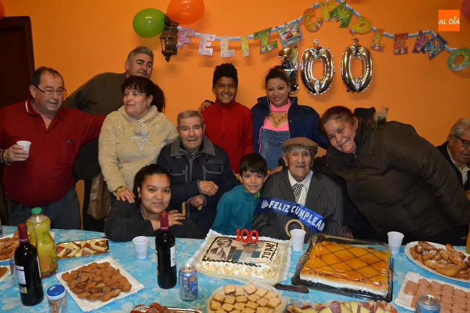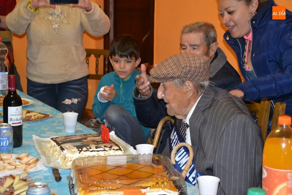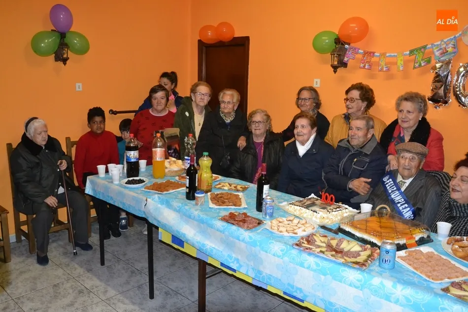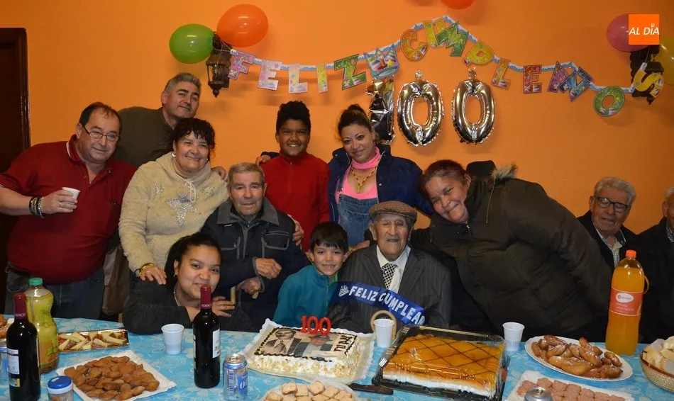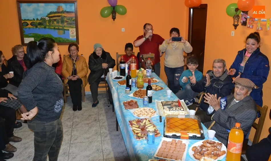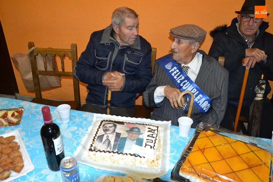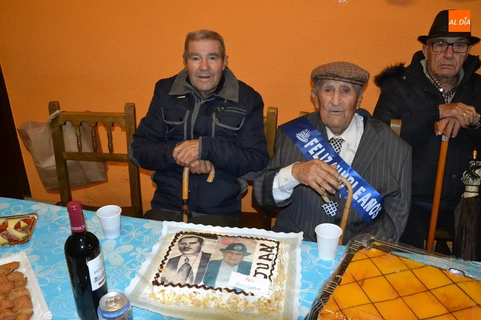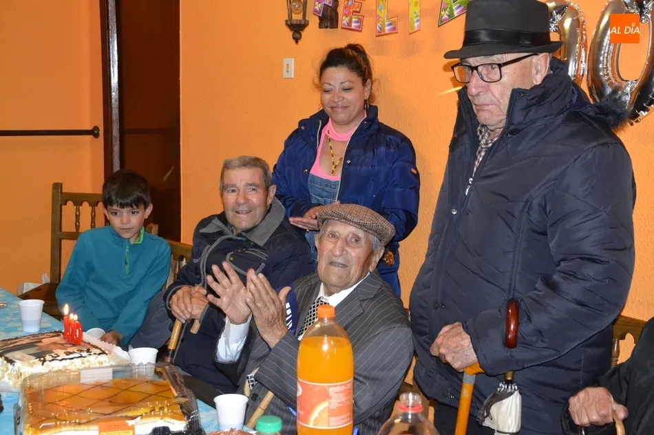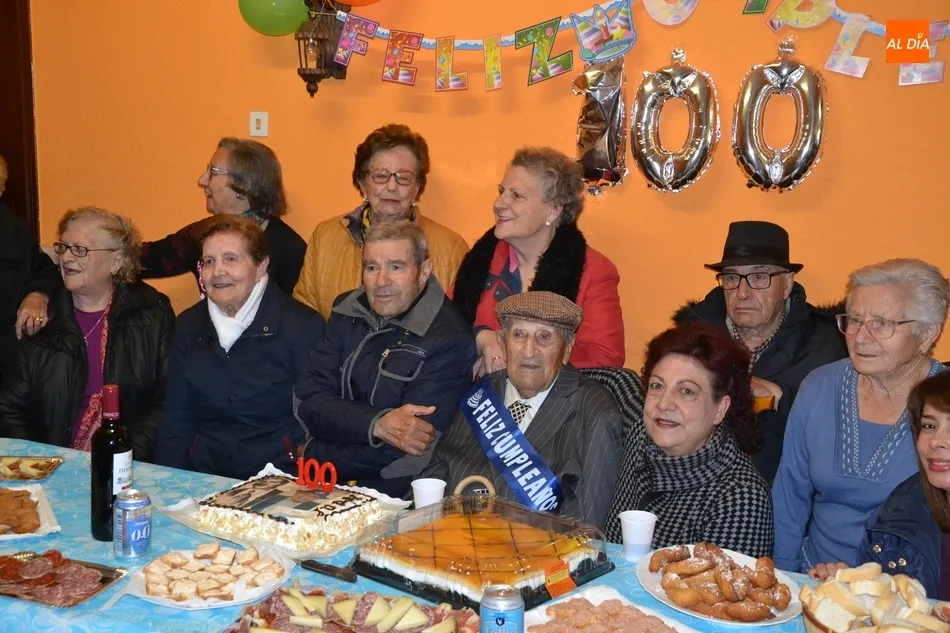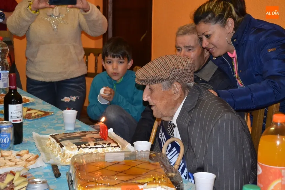 El Bar Montecarlo acogió en la tarde del miércoles la fiesta de cumpleaños de Juan Galán Galán, vecino de Ciudad Rodrigo que ha alcanzado la cifra mágica de los 100 años de vida. En la celebración, Juan Galán (quién nació en Castillejo de Azaba) estuvo rodeado de familiares y amigos, quiénes le acompañaron en el momento de soplar las velas de la tarta, en la cual aparecían dos fotografías de él mismo: una de hace varias décadas y otra actual. Como en toda buena fiesta de cumpleaños, el homenajeado recibió varios regalos.