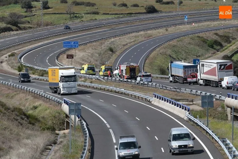 Decenas de coches y camiones han permanecido parados, en ambos carriles de la autovía, sentido Salamanca, durante cerca de dos horas