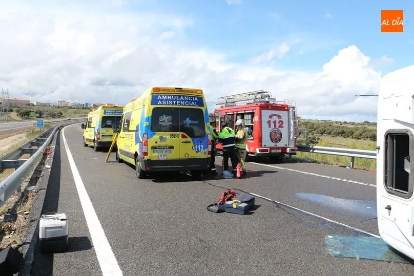 El accidente se ha producido en el kilómetro 389, en torno a las 15:30 horas, en una curva donde ya se han ocurrido más accidentes. Los Bomberos de Béjar han tenido que intervenir para rescatar al conductor del camión volcado, que viajaba solo. Tras estabilizar al herido, se ha solicitado la presencia del helicóptero de traslado del 112, pero finalmente se ha marchado del accidente sin el paciente por decisión de los facultativos. Finalmente, el herido ha sido trasladado al complejo hospitalario de Salamanca.