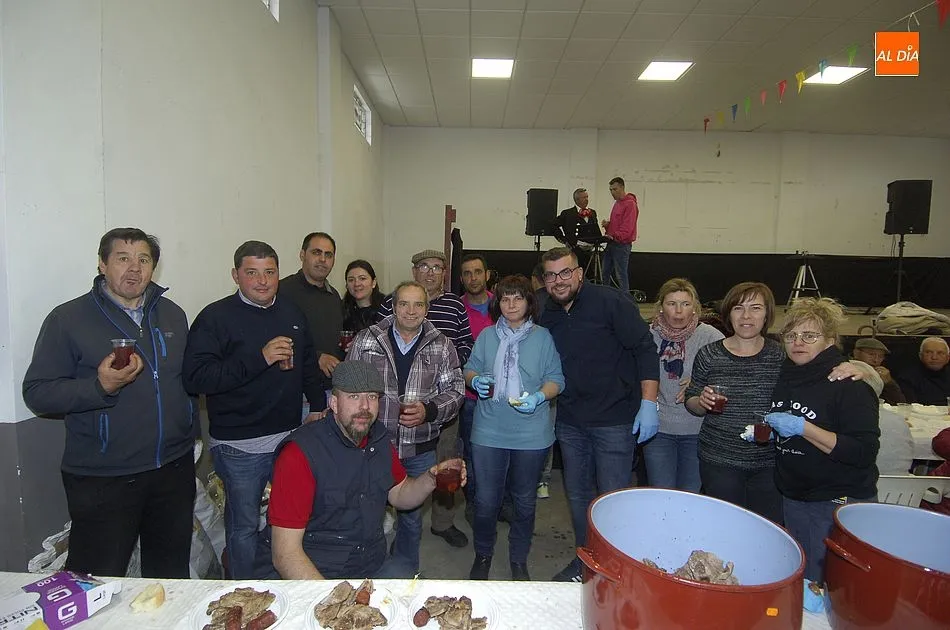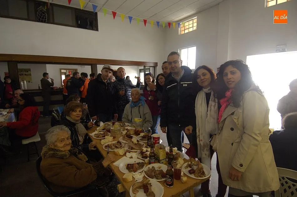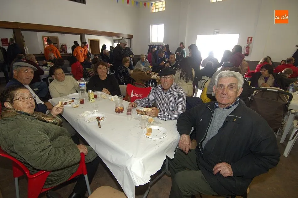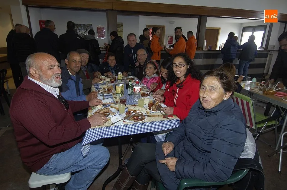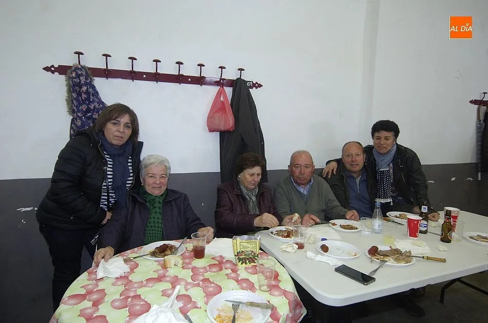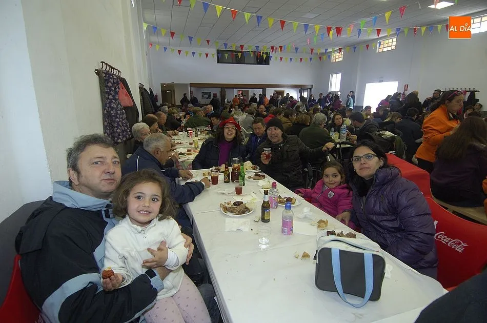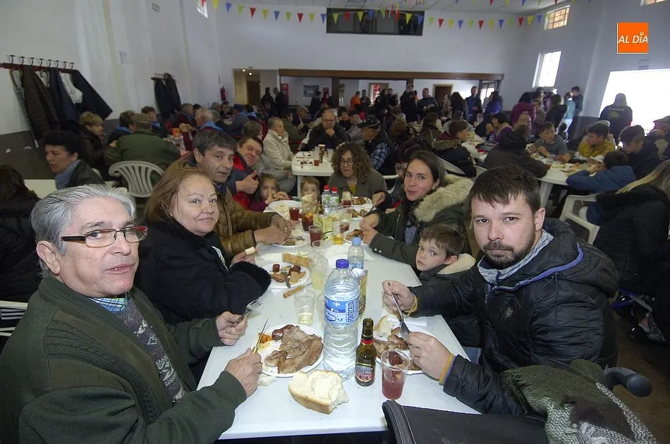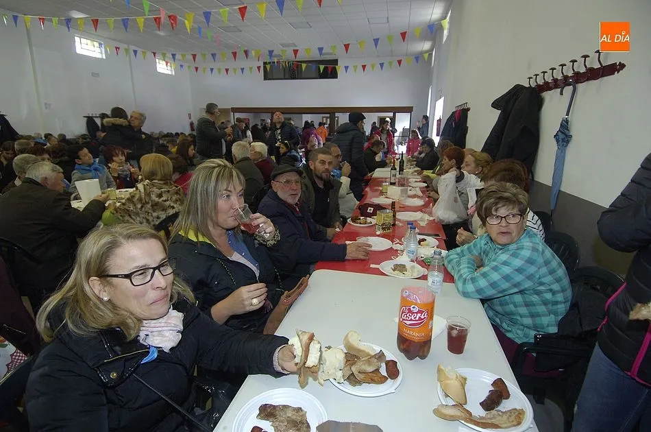 Habitualmente, la carne que se degusta en esa comida conjunta se suele asar a la parrilla a las propias puertas de La Panera. Sin embargo, la lluvia que estaba cayendo obligó a la organización a cancelar el plan habitual y a improvisar otro. En este sentido, se decidió llevar la panceta y el chorizo hasta la panadería de Fuentes de Oñoro, donde se cocinó en sus grandes hornos.