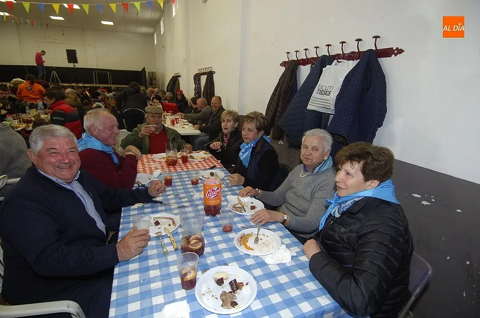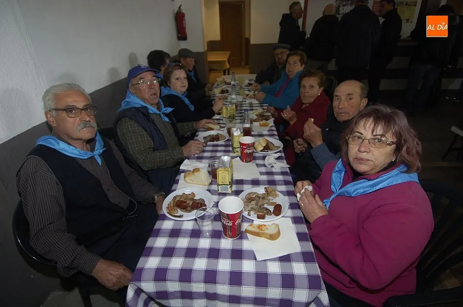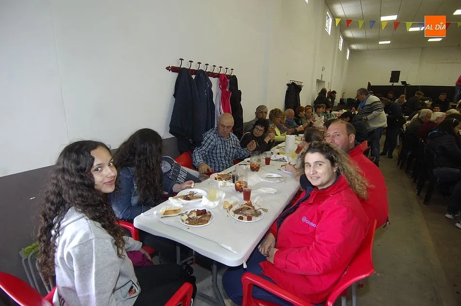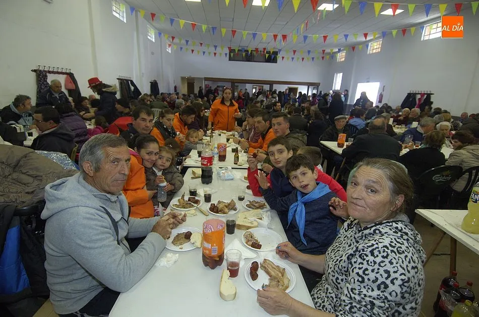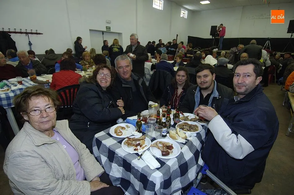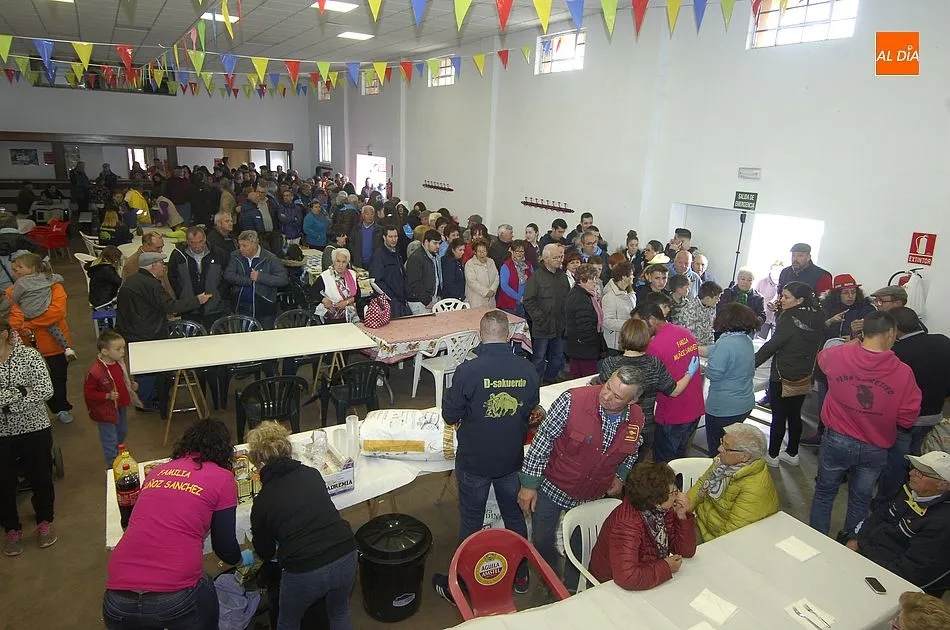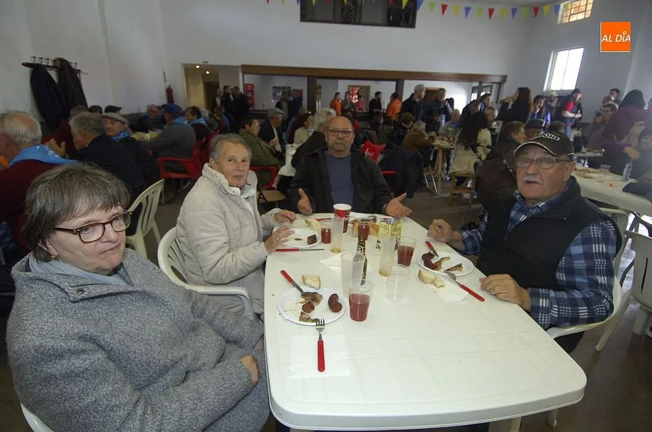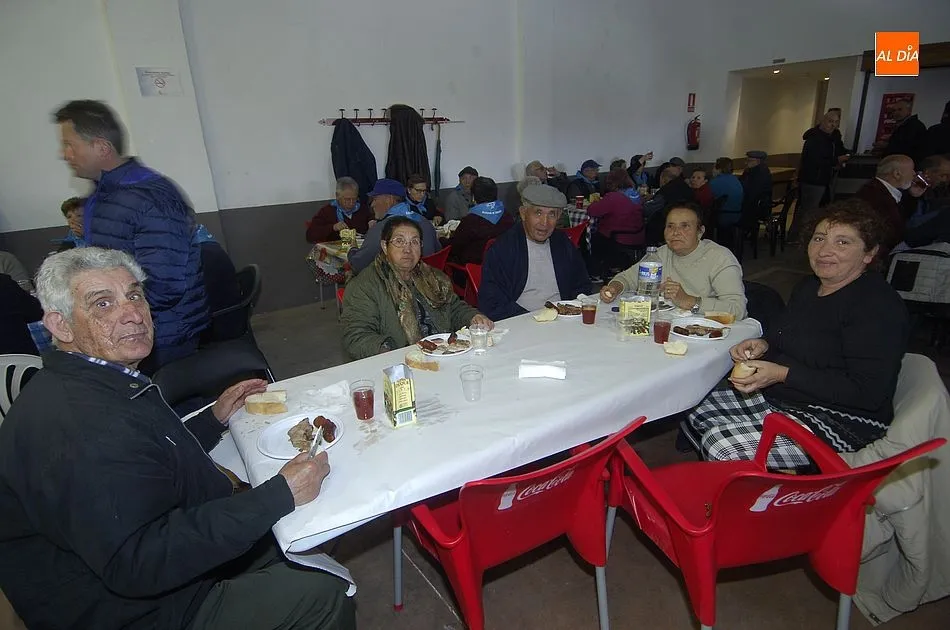 Habitualmente, la carne que se degusta en esa comida conjunta se suele asar a la parrilla a las propias puertas de La Panera. Sin embargo, la lluvia que estaba cayendo obligó a la organización a cancelar el plan habitual y a improvisar otro. En este sentido, se decidió llevar la panceta y el chorizo hasta la panadería de Fuentes de Oñoro, donde se cocinó en sus grandes hornos.