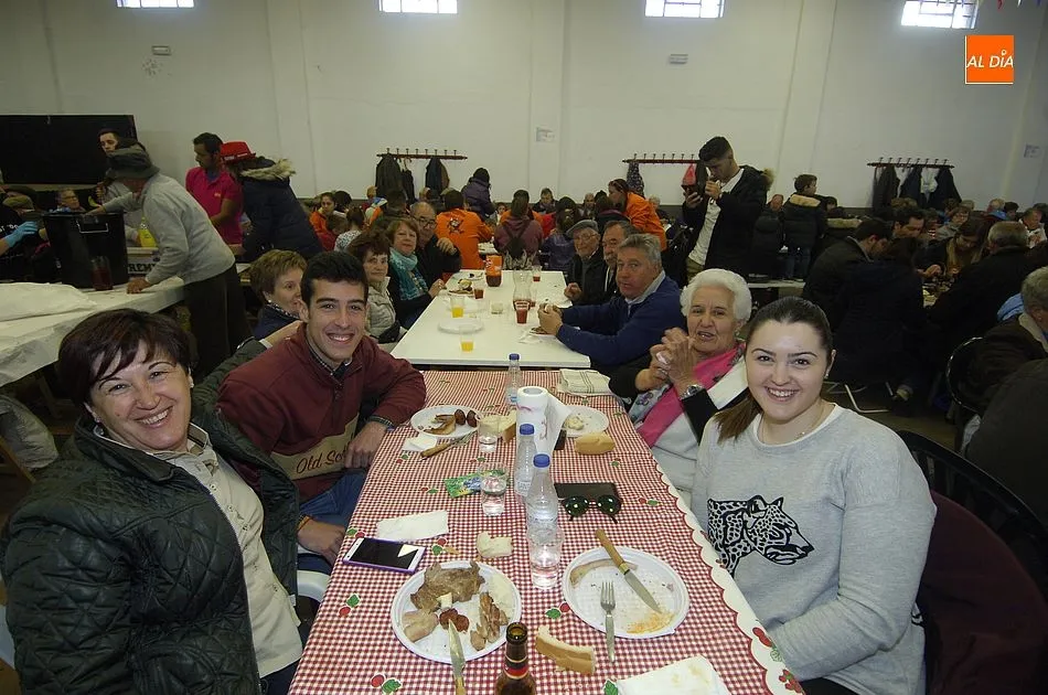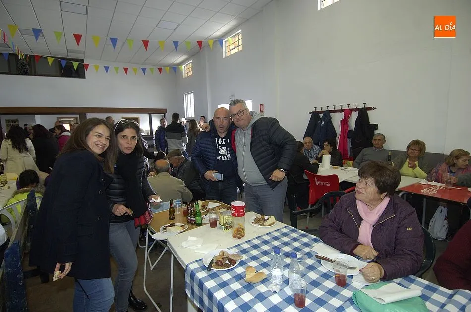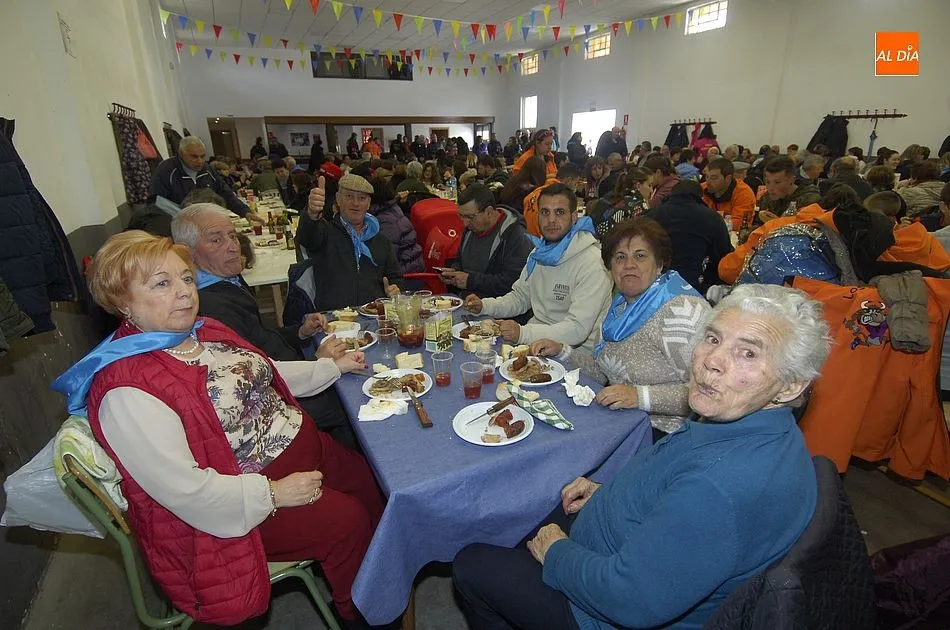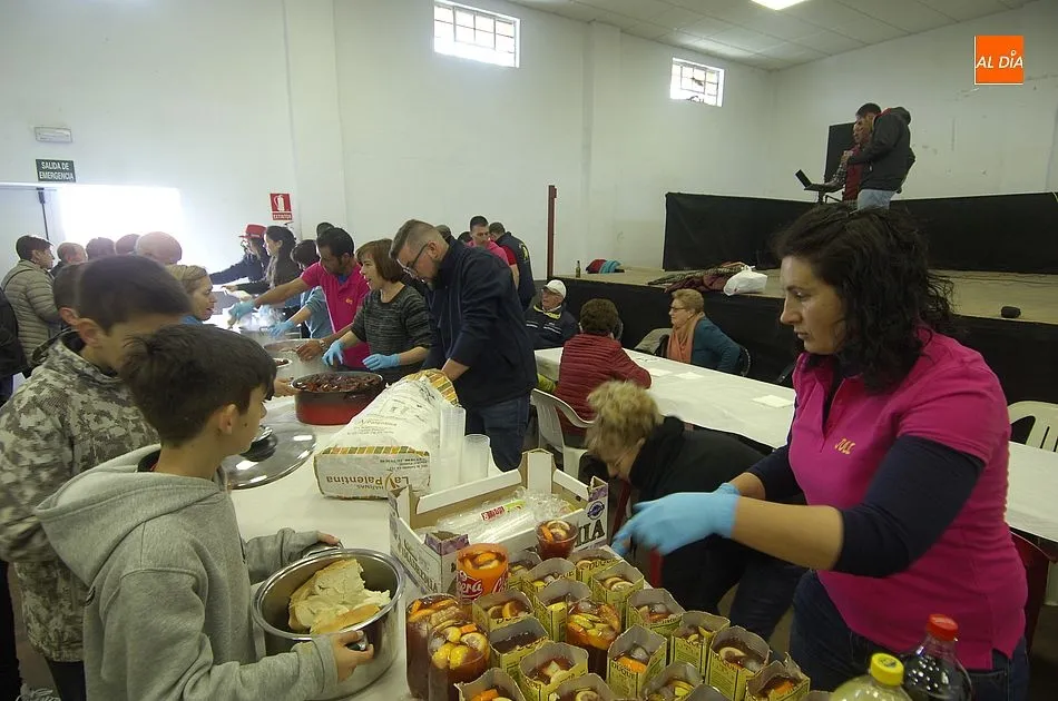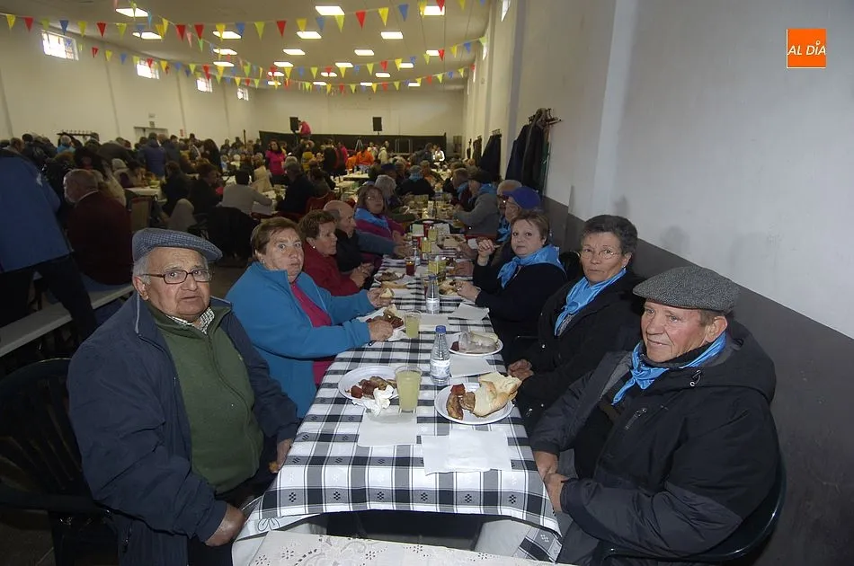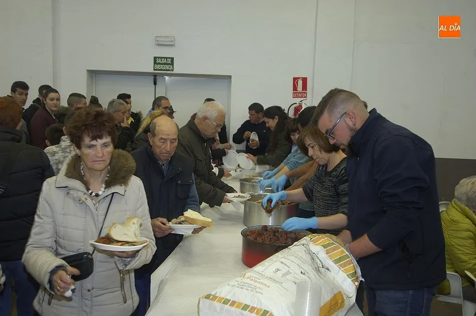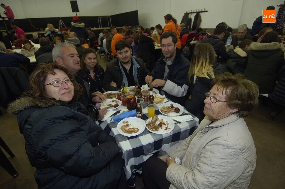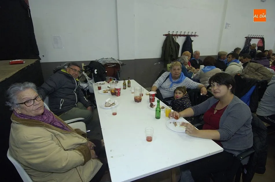 Habitualmente, la carne que se degusta en esa comida conjunta se suele asar a la parrilla a las propias puertas de La Panera. Sin embargo, la lluvia que estaba cayendo obligó a la organización a cancelar el plan habitual y a improvisar otro. En este sentido, se decidió llevar la panceta y el chorizo hasta la panadería de Fuentes de Oñoro, donde se cocinó en sus grandes hornos.