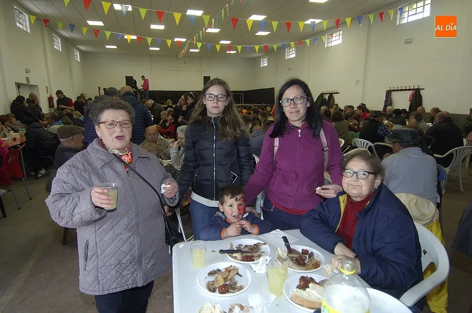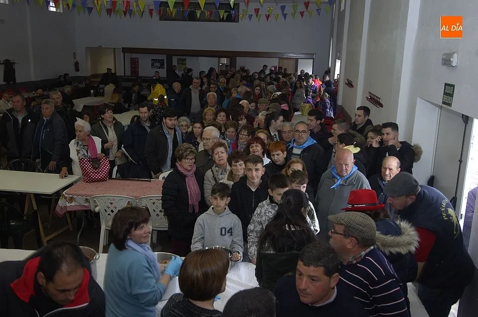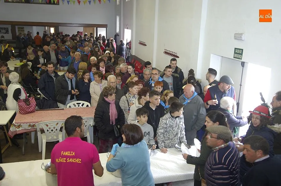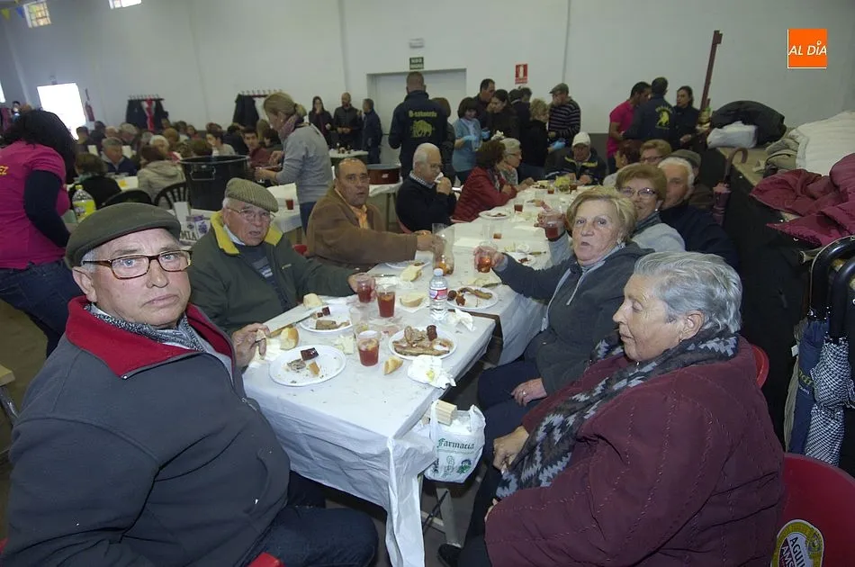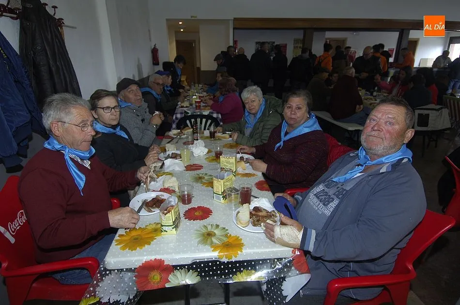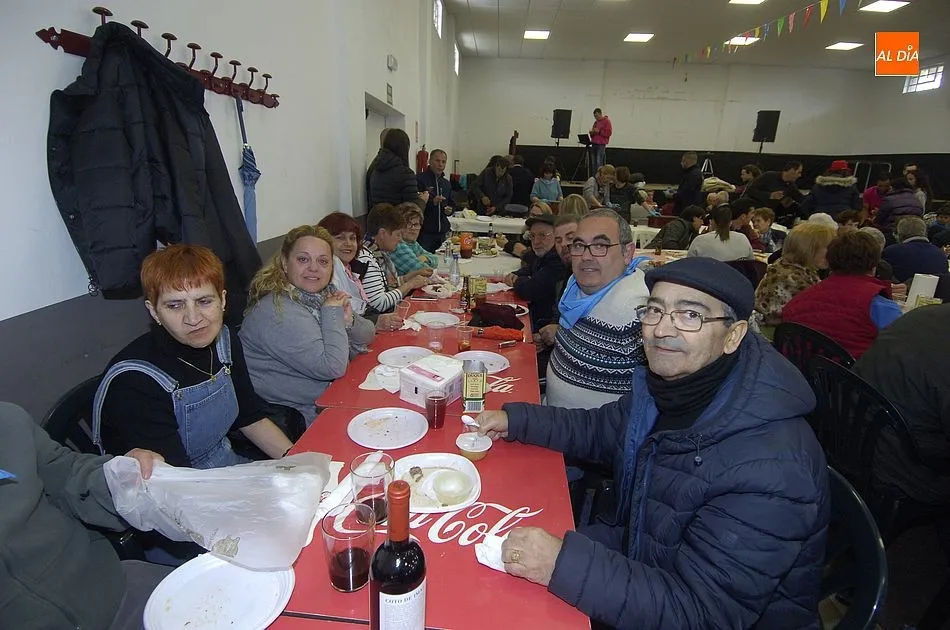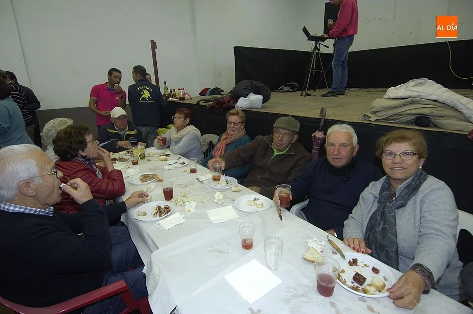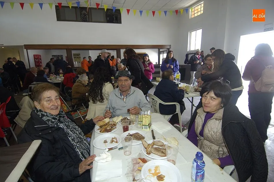 Habitualmente, la carne que se degusta en esa comida conjunta se suele asar a la parrilla a las propias puertas de La Panera. Sin embargo, la lluvia que estaba cayendo obligó a la organización a cancelar el plan habitual y a improvisar otro. En este sentido, se decidió llevar la panceta y el chorizo hasta la panadería de Fuentes de Oñoro, donde se cocinó en sus grandes hornos.