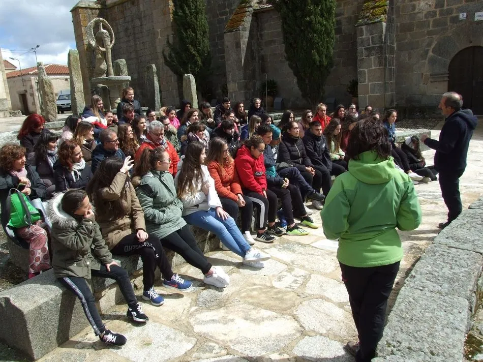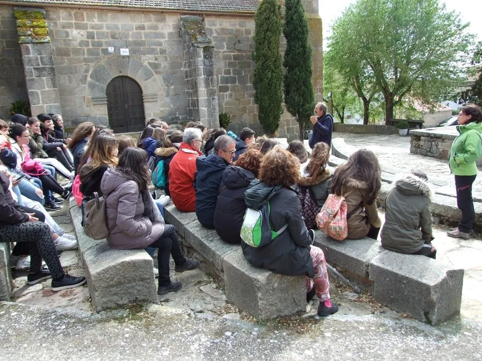La visita se inició en el Centro de Interpretación de Monleras, donde Maite del Arco, directora técnica del mismo, y Almudena Sánchez, trabajadora social de Escuelas Campesinas, presentaron las líneas clave de la iniciativa a los alumnos y profesores asistentes. Seguidamente se trasladaron hasta la localidad de El Manzano, donde los recibió su alcaldesa, Mª Carmen Ruano, y fueron guiadosen su visita a la casa asistida de mayores, a la fábrica de harinas restaurada para albergar la Casa de la palabra y al corral de concejo, rehabilitado por los vecinos para disfrute comunitario.