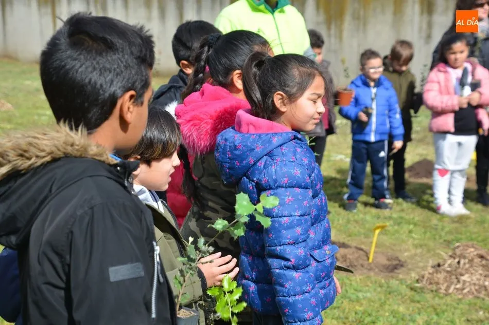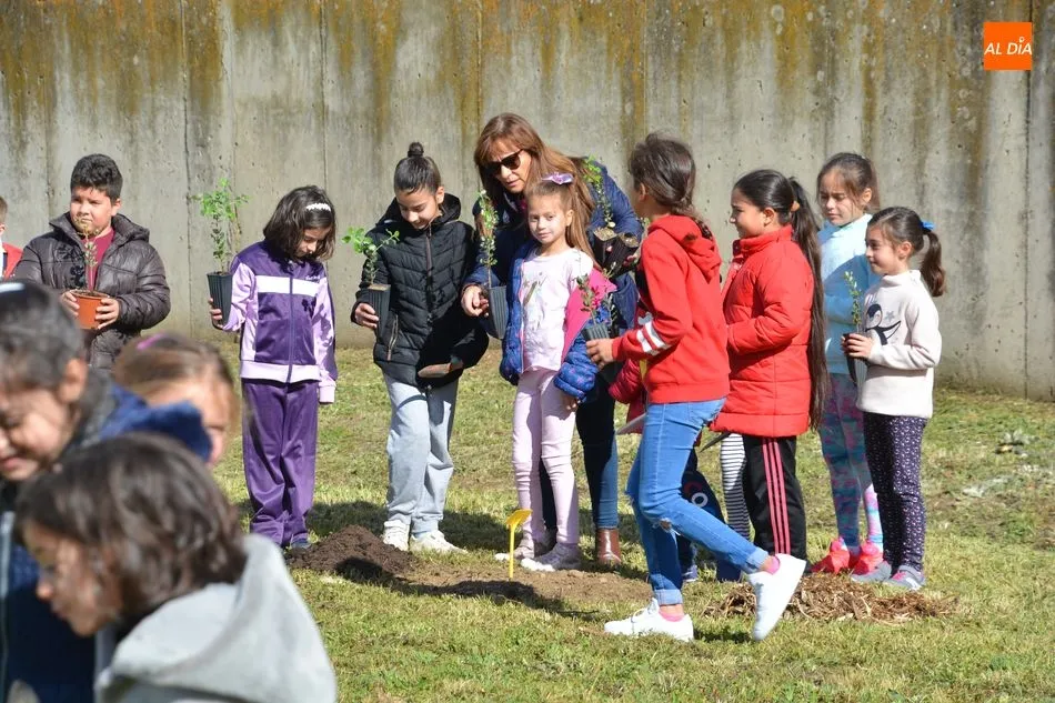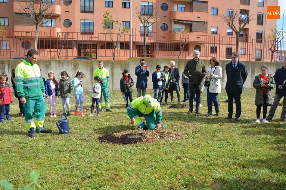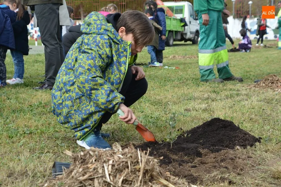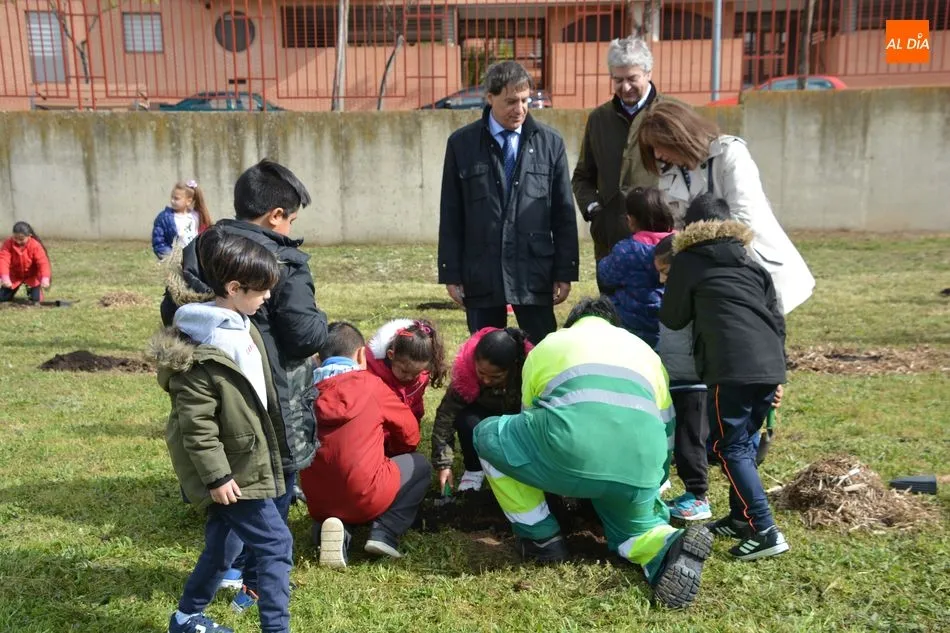 El alcalde de Salamanca, Carlos García Carbayo, ha participado hoy, con motivo del Día Mundial del Árbol, en una plantación de encinas llevada a cabo en el Colegio Lazarillo de Tormes. Una treintena de alumnos de segundo, tercero y cuarto de Primaria han plantado en el patio del centro escolar los brotes que recibieron hace un mes, con motivo del Día del Agua, para proceder a su riego y cuidado durante este tiempo en sus domicilios.