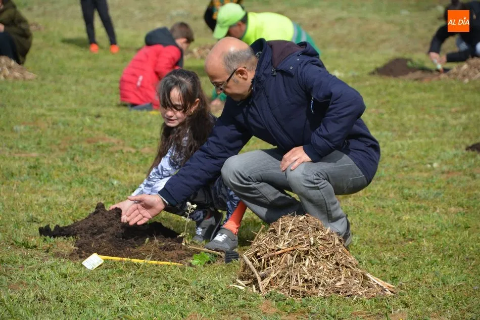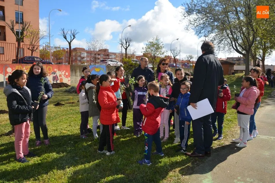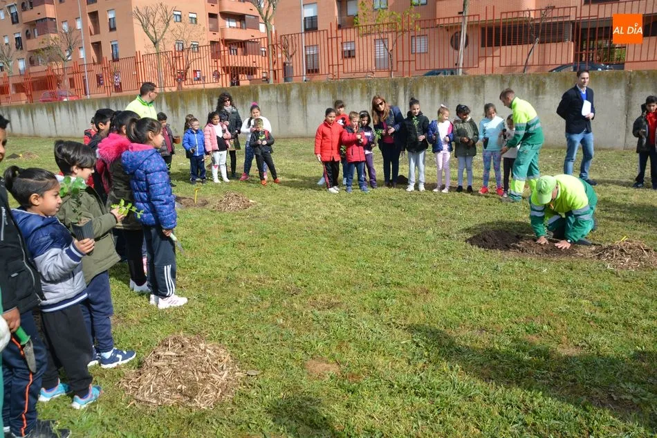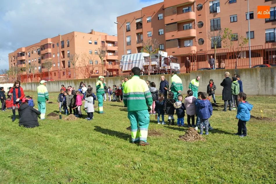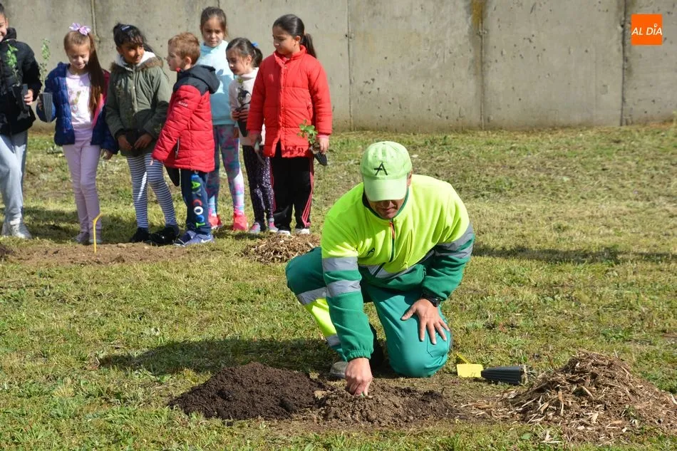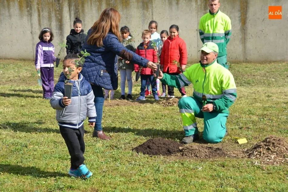El alcalde de Salamanca, Carlos García Carbayo, ha participado hoy, con motivo del Día Mundial del Árbol, en una plantación de encinas llevada a cabo en el Colegio Lazarillo de Tormes. Una treintena de alumnos de segundo, tercero y cuarto de Primaria han plantado en el patio del centro escolar los brotes que recibieron hace un mes, con motivo del Día del Agua, para proceder a su riego y cuidado durante este tiempo en sus domicilios.