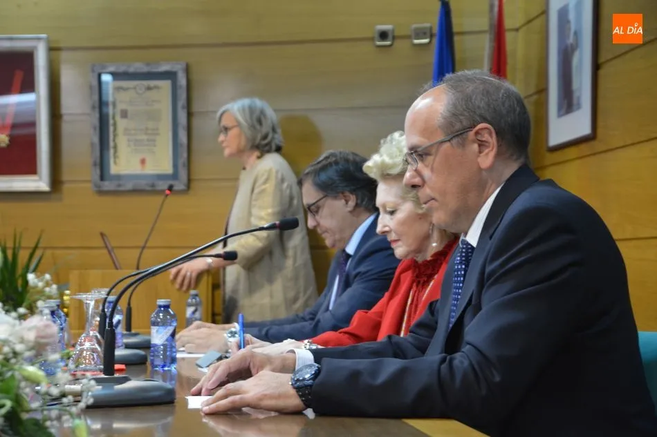 Con motivo de este homenaje, la actual presidenta del Colegio de Enfermería de Salamanca, María José García Romo, ha sido la encargada de entregar a su antecesora la distinción institucional por su labor al frente de la enfermería de Salamanca.