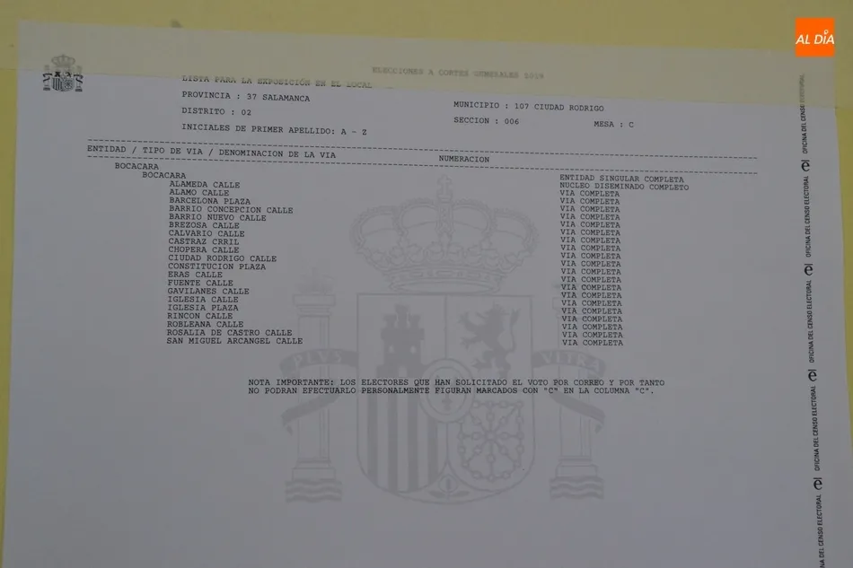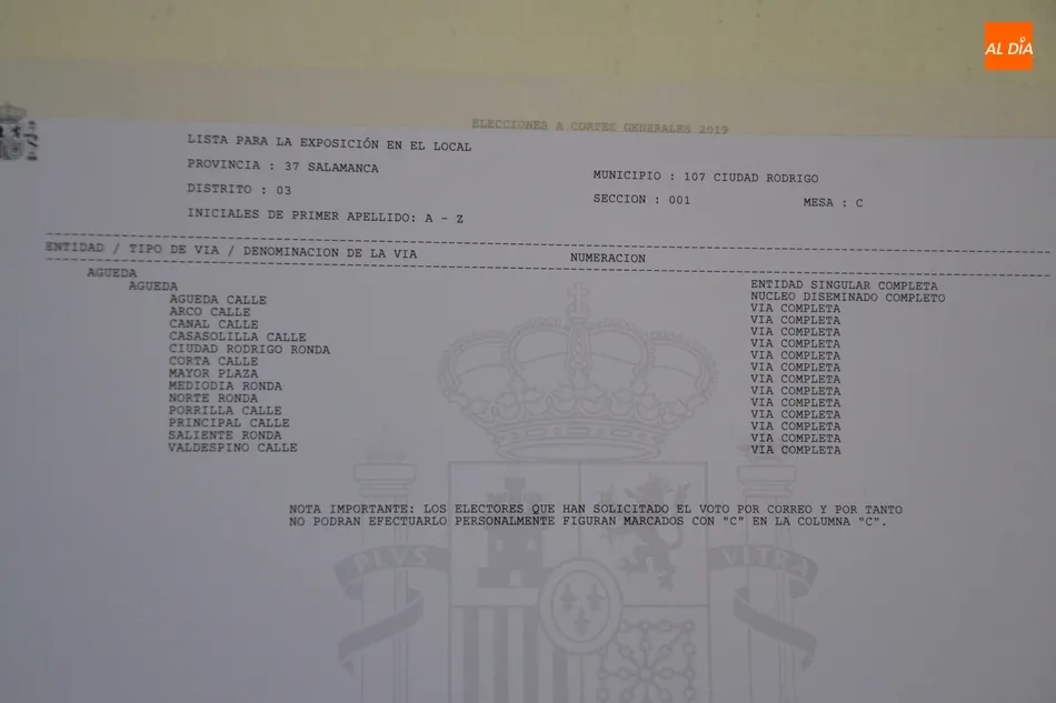 CIUDAD RODRIGO , ELECCIONES GENERALES 2019