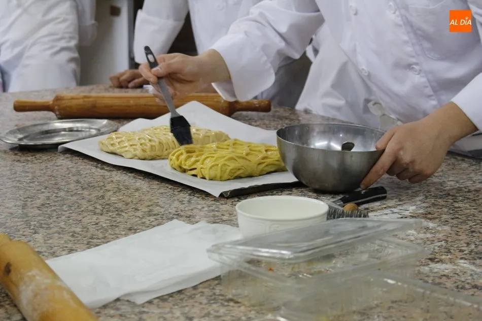 Dentro de las actividades del calendario de la marca gastronómica Tegusta Salamanca, este viernes, la Escuela Fonda Veracruz acogía un taller de elaboración de hornazo.