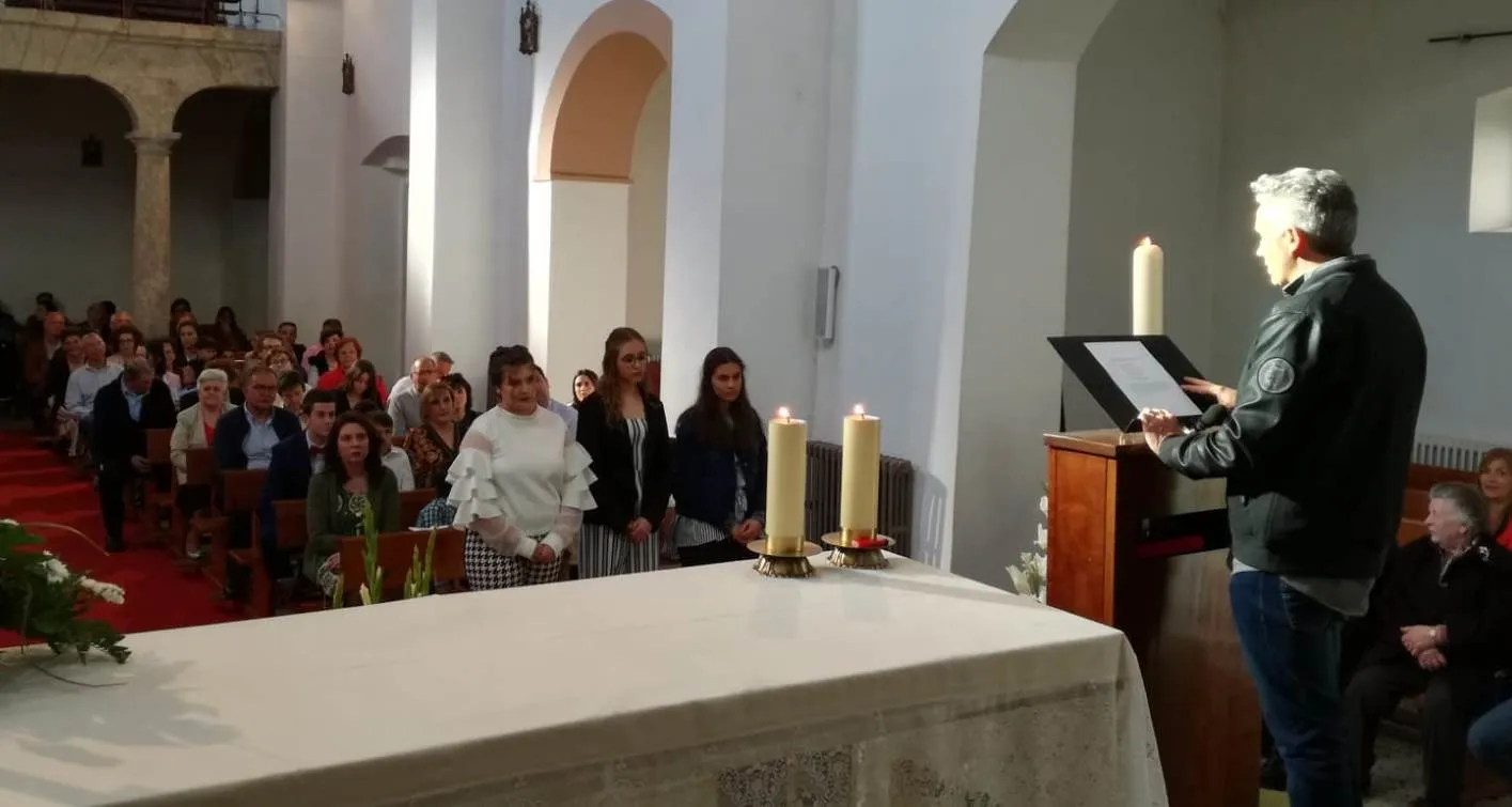 En esta ocasión, los jóvenes recibieron el Sacramento de manos del Obispo emérito de Sigüenza-Guadalajara, el guinaldés José Sánchez, quién estuvo acompañado en el altar del presidente del Cabildo Catedralicio, Ángel Martín Carballo, y de los actuales responsables de la Parroquia de Santa Marina, José María Rodríguez-Veleiro y Efraín Peinado.