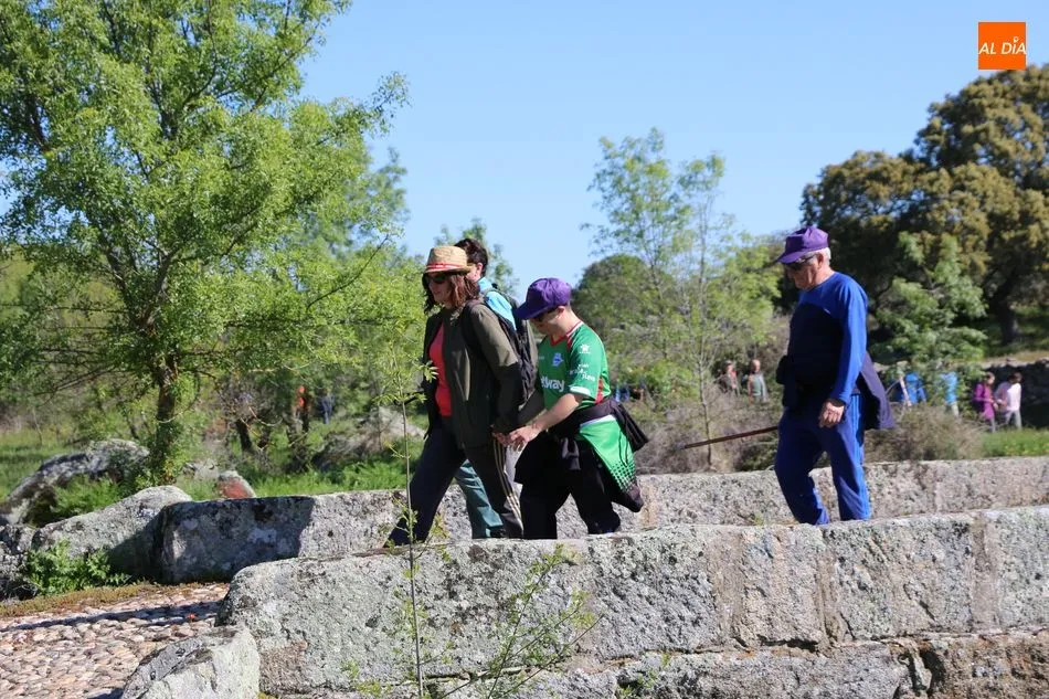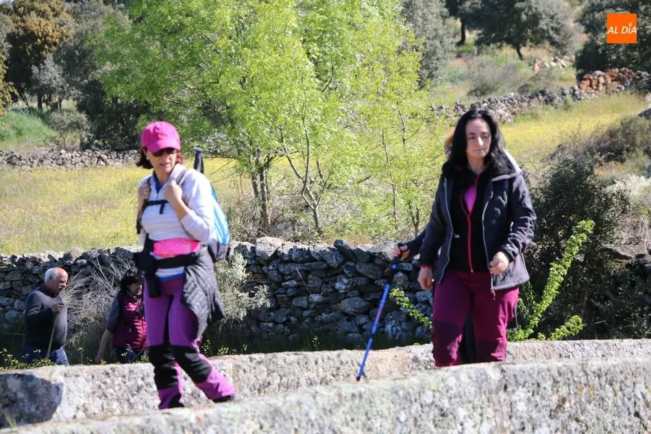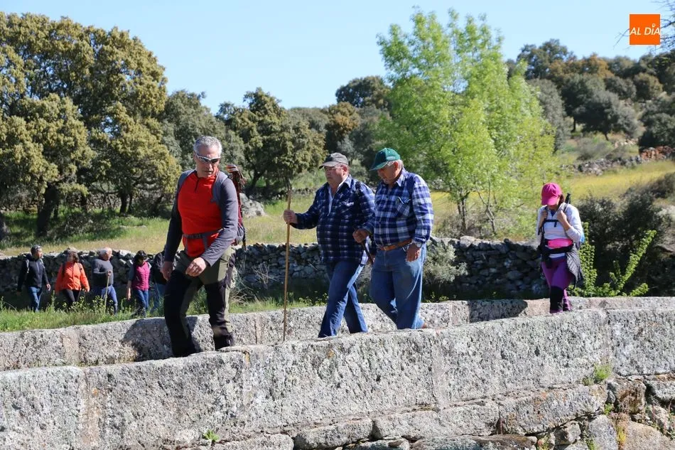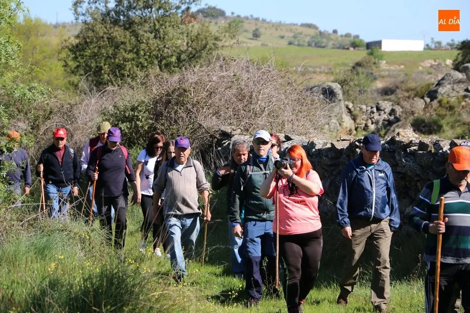 Y con esta imagen de la historia del municipio en la retina, los caminantes tomaban dirección al ?Prao del Toro?, lugar legendario que anuncia la llegada de las fiestas de San Juan con una jornada campera en El Monte. Desde este paraje, los caminantes se dirigirían hasta Vega Matahijos, desde donde girarían hacia el Norte en dirección al ?Prao Cambón? para caminar un tramo junto a los raíles de la vía férrea del Duero, hasta la antigua estación del tren, lugar desde el que se encaminarían hasta el paraje del Teso el Pollero y desde ahí al ?Prao Canillero?, para dirigirse ya de regreso a la villa hinojosera por el camino de las piscinas.