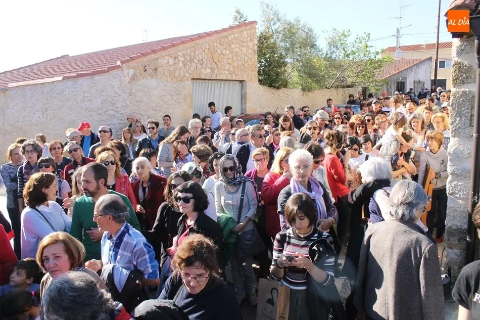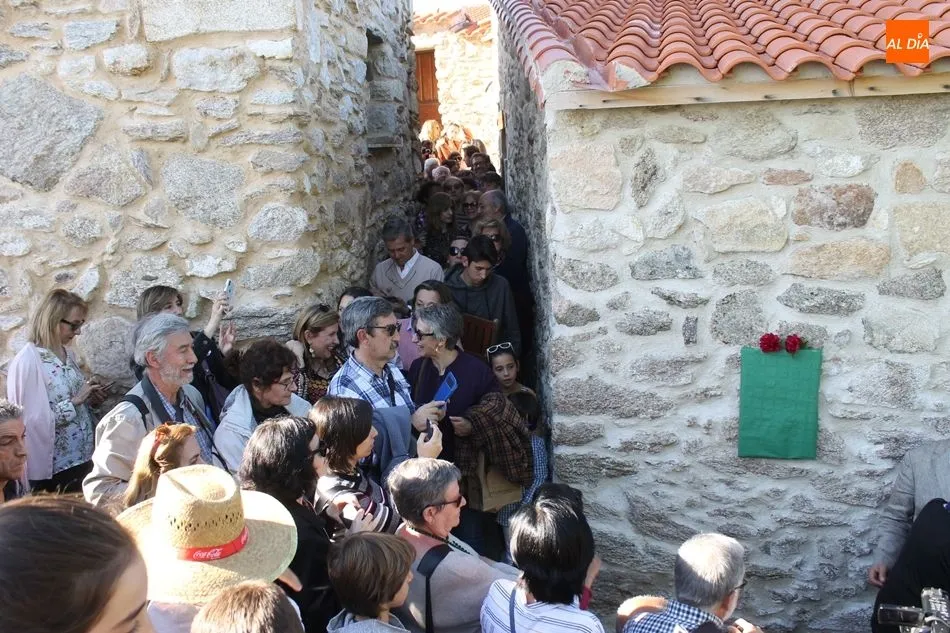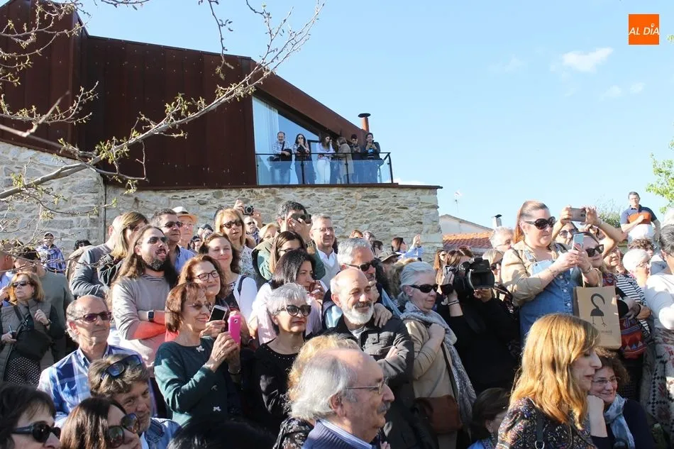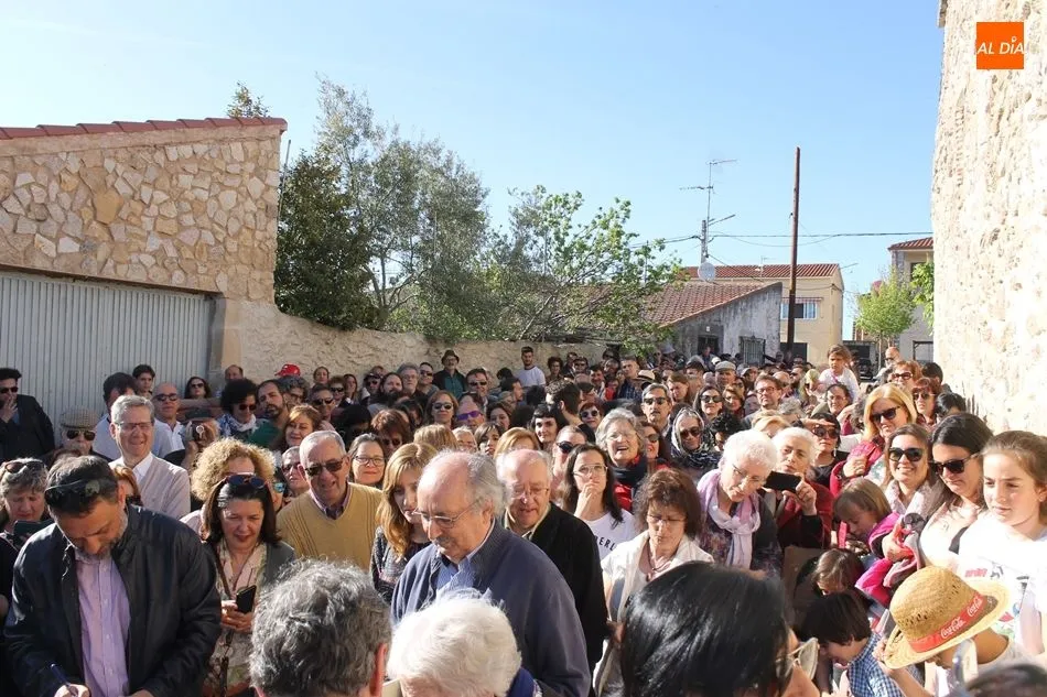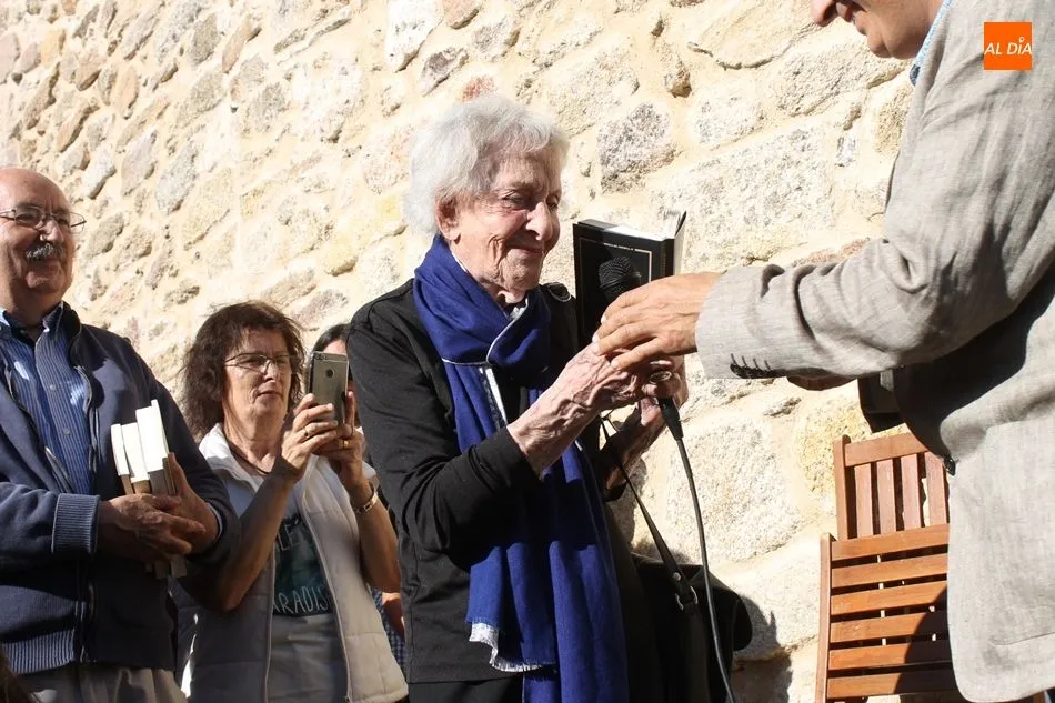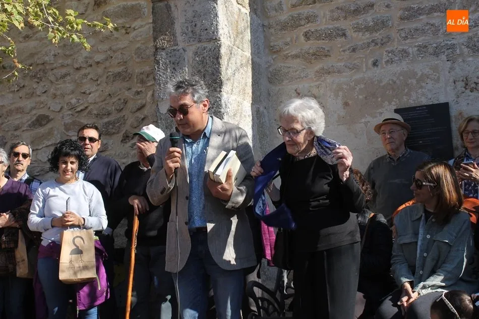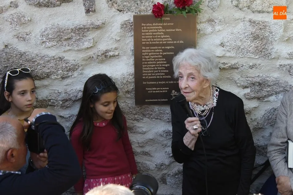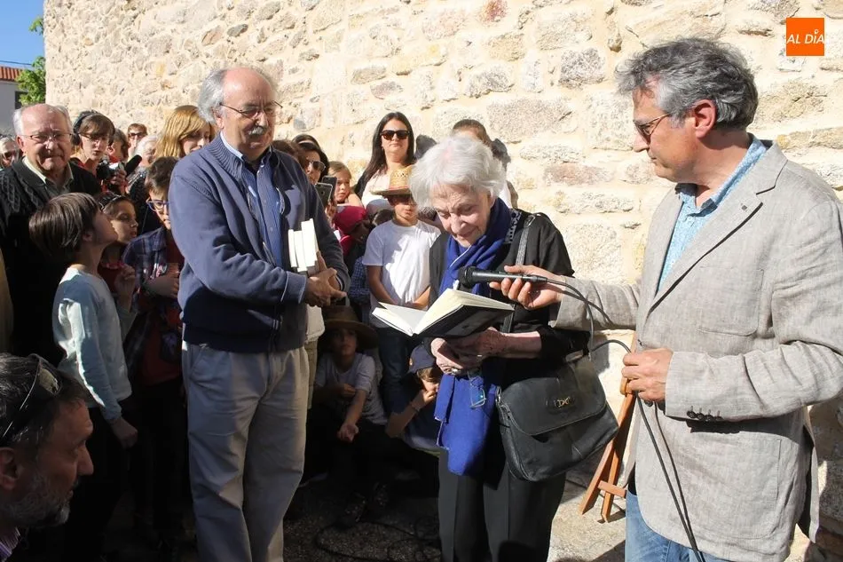 Numeroso público acompaña a la maestra de las letras, Premio Cervantes 2018, en el paseo literario para descubrir tres de sus poemas grabados y que se suman a ?Juzbado Libro Abierto?