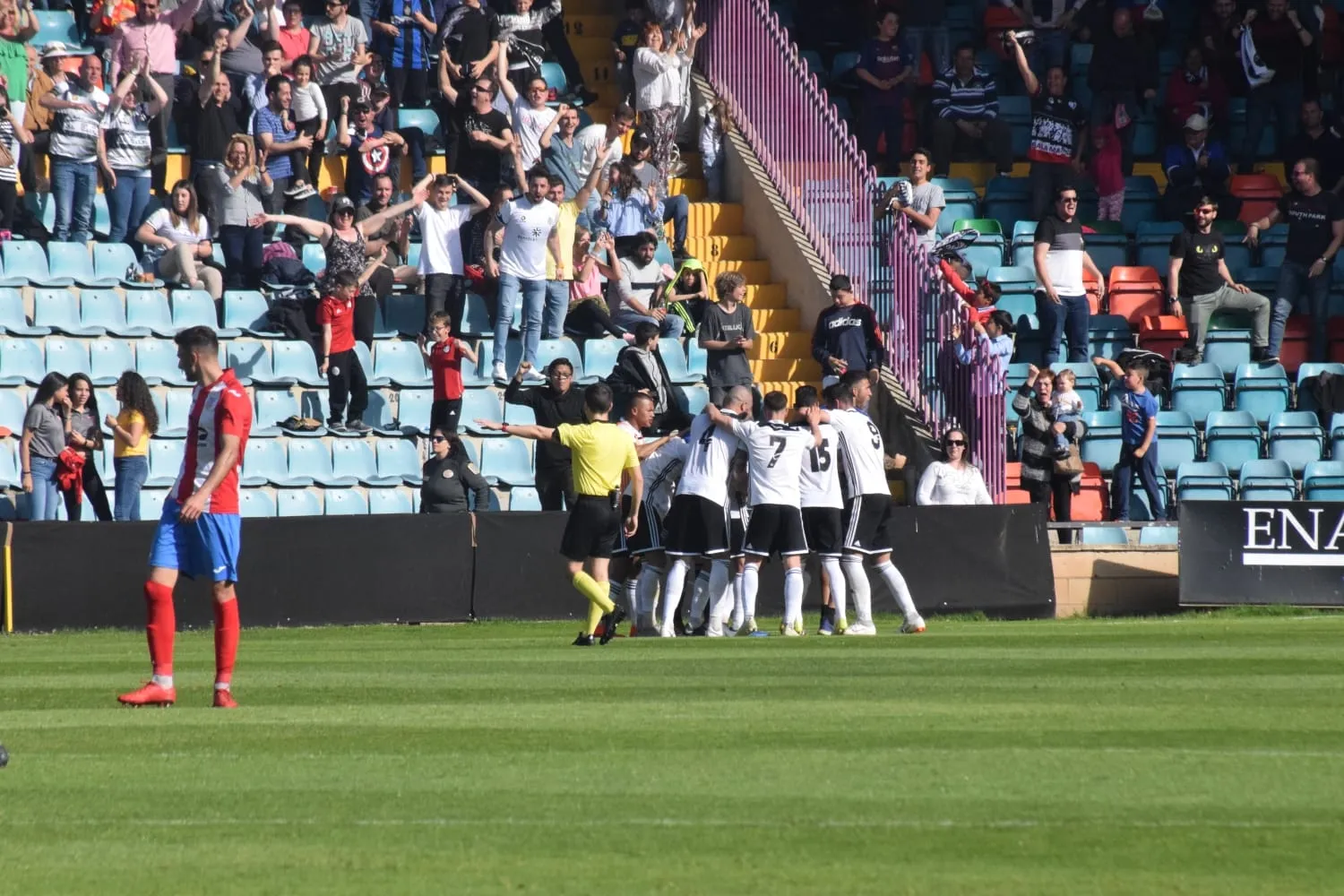 La afición olvidó el enfado con el equipo tras la primera parte y alentó a sus futbolistas en busca de una nueva gesta en el feudo blanquinegro en una tarde para recordar.