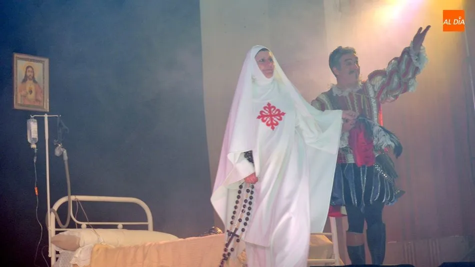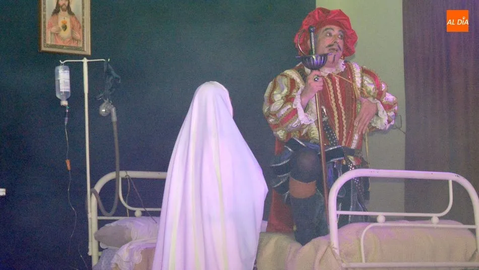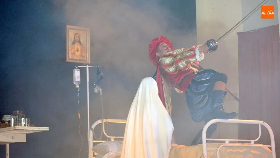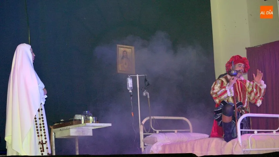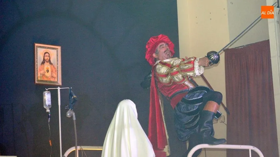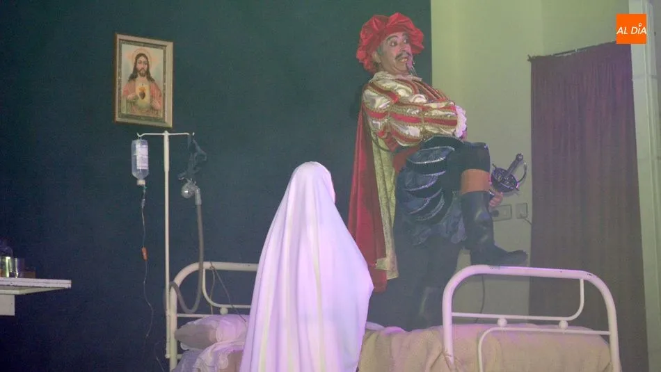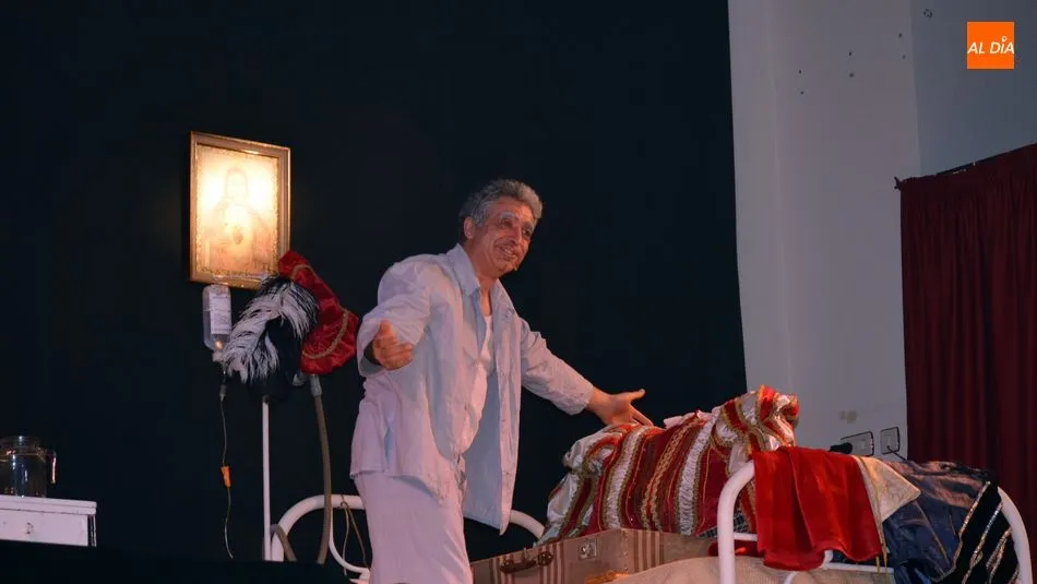 El actor Luis Miguel Orcajo dio vida al viejo actor desgranando versos del Tenorio de Zorrilla, de la obra de Alonso de Santos, de improvisaciones propias, mezclando el humor y la poesia, manteniendo con continuos guiños la atención del público durante más de hora y media que permaneció de forma continuada en el escenario, con la sola y silenciosa compañía de la actriz Consuelo Redondo.