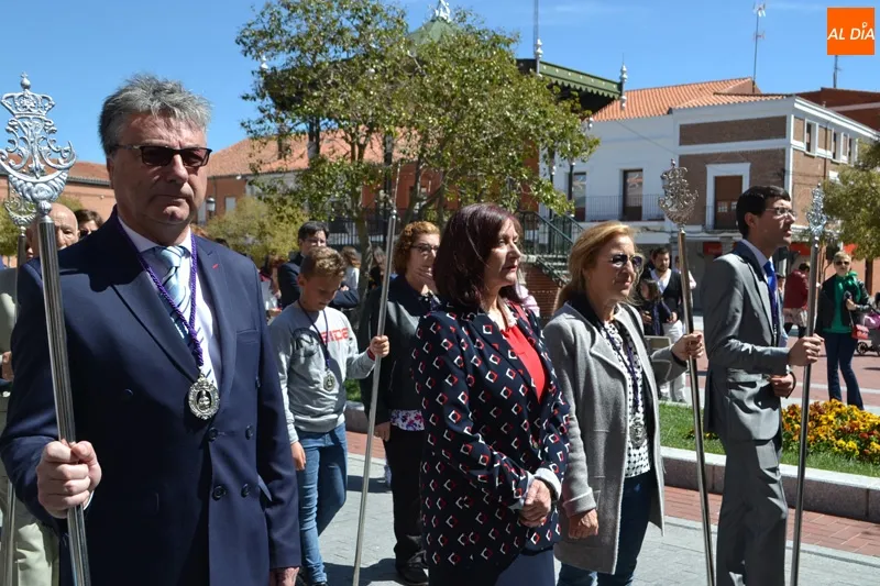 de la iglesia parroquial, en la que la querida imagen, portada a hombros, comenzaba su recorrido por las Plazas de España y la Constitución, acompañada por representantes municipales, responsables de las diferentes cofradías locales y numerosos fieles.