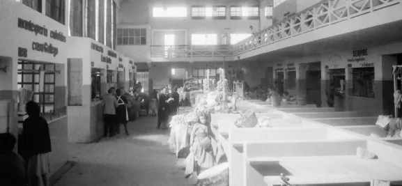El edificio con planta rectangular, dispone de una gran superficie para poder situar los puesto de una manera espaciosa. Está cubierto por una bóveda de perfil arqueado y grandes ventanas verticales que permiten una gran iluminación y ventilación del mercado.