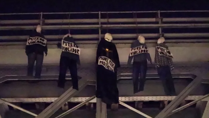 Además, para reforzar su mensaje, han colgado muñecos en el puente del Pradillo, junto al paseo fluvial, así como una pancarta en el puente Enrique Estevan. ?Hemos decidido aportar nuestro granito de arena decorando los puentes de nuestro querido Tormes, por donde antiguamente pasaban el proxeneta padre Putas y su séquito de puteros violadores trasladando a nuestas hermanas explotadas?.