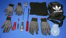 En el arresto los agentes encontraron una bandolera de camuflaje, cinco guantes, dos destornilladores, cuatro tarjetas de plástico duro dobladas, dos linternas, un mechero, una navaja pequeña, una bufanda tubular y un manojo de llaves tipo dumping, efectos todos ellos que pueden ser utilizados para la comisión de los robos. Los tres varones reconocieron como suyos todos los efectos.
