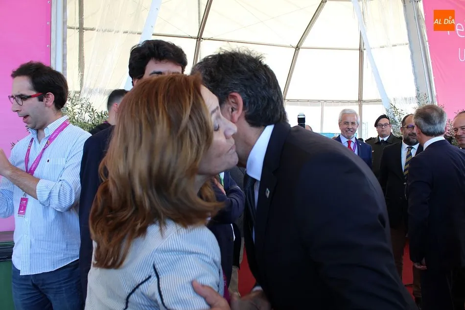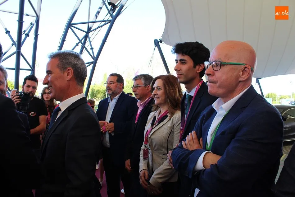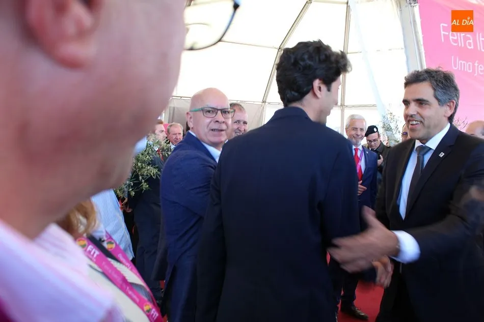 El ministro portugués de Economía, Pedro Siza Vieira, presente en Guarda para la inauguración oficial de la FIT, departió con Ángel Orgaz y Purificación Pozo, hallando enseguida puntos en común entre Béjar y las comarcas de la Serra da Estrela, por el paisaje y por el pasado vinculado a la producción textil.