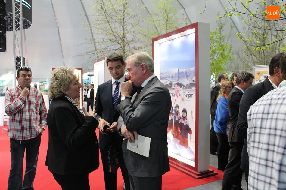 El concejal de Turismo de Béjar, Ángel Orgaz, la concejala de Cultura, Purificación Pozo y el director de la estación de esquí de La Covatilla estuvieron presentes durante la jornada inaugural de la Feria Ibérica de Turismo (FIT) ayer en Guarda.