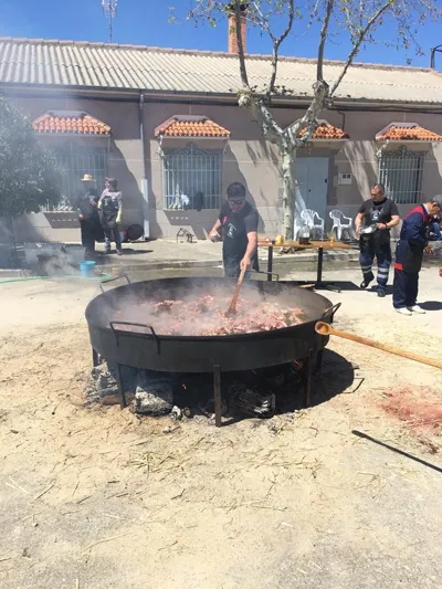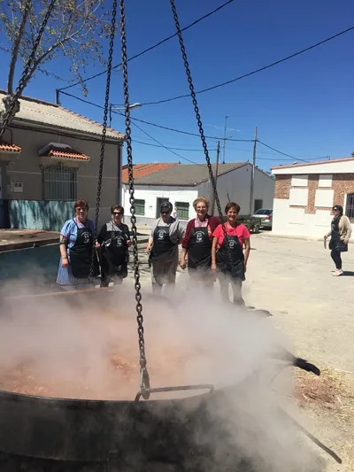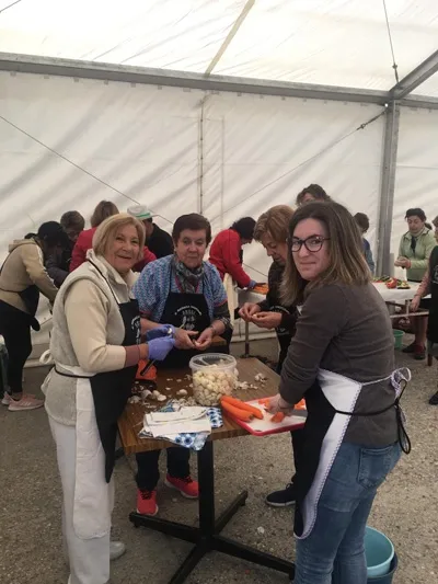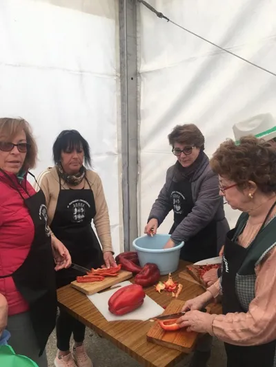 el proceso de preparación de los diferentes productos hasta las tres de la tarde, momento en el que llegaba la gran comida de hermandad a base de patatas con costilla y espinazo.