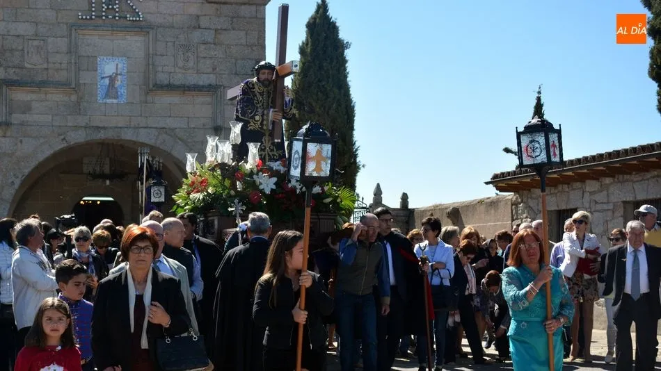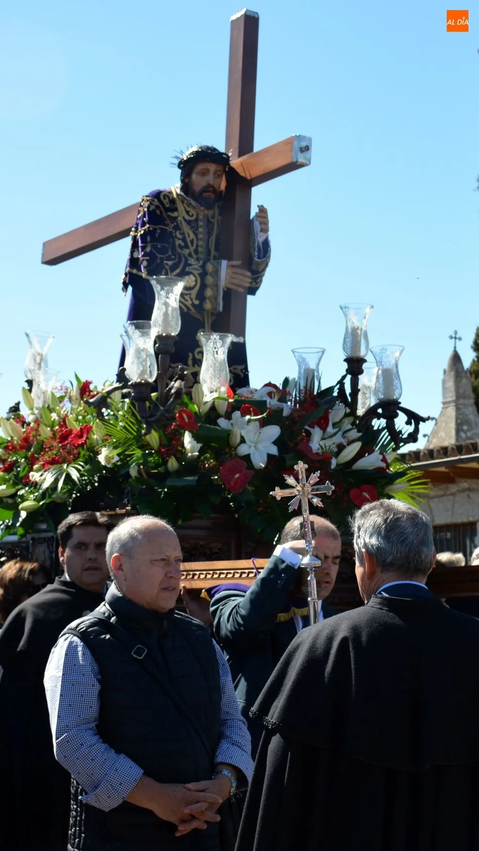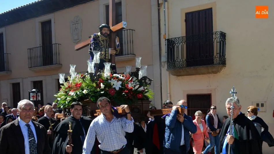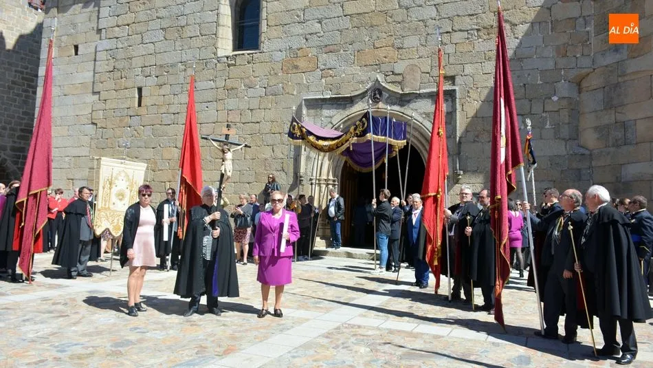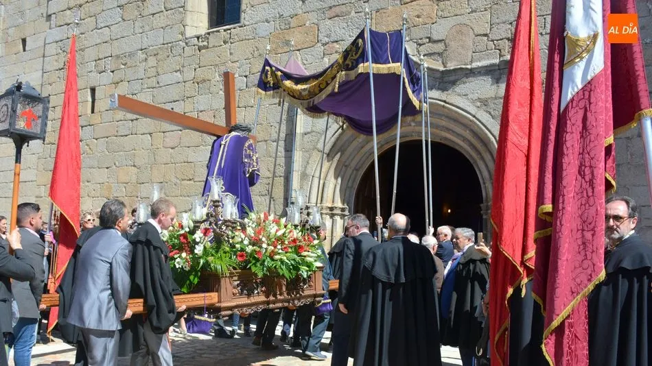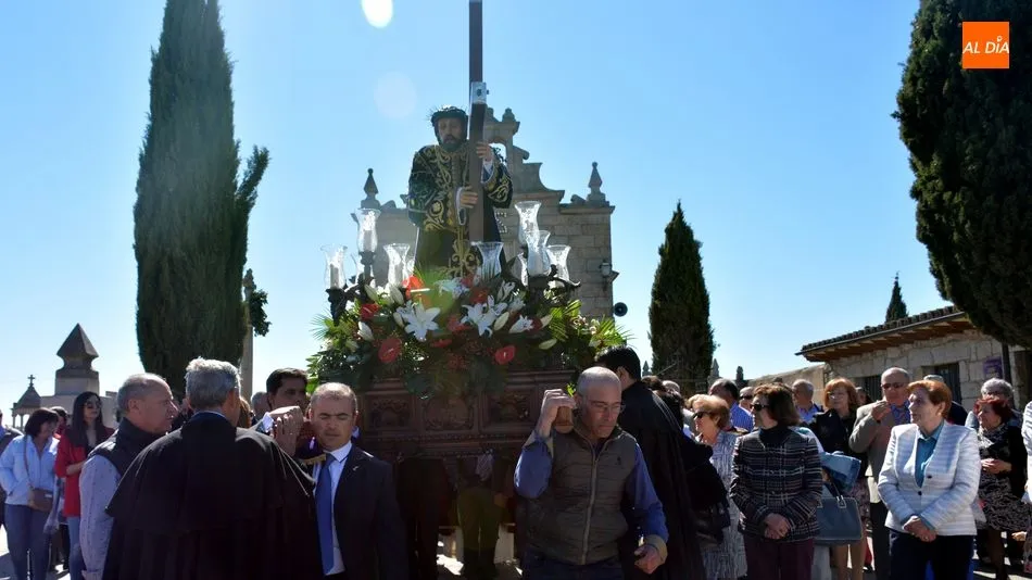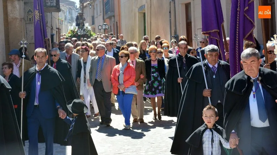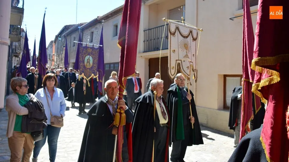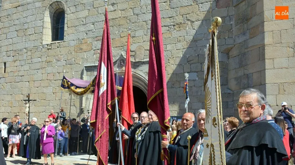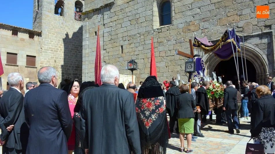 La presencia de devotos se incrementó en los actos celebrados esta mañana. Los peregrinos y todos los vecinos de San Felices acompañaron a los miembros de la Cofradía de Jesús Nazareno en los actos religioso del día grande de la Santa Cruz. A las 11,30 horas, salía de su ermita la imagen del Nazareno, llevada en procesión hasta la iglesia parroquial. La agrupación musical Virgen de la Vega de Salamanca abría la comitiva integrada por la Cofradía de Jesús Nazareno, formada, según el orden jerárquico, por seis alcaldes, seis oficiales y los mayordomos, luciendo la capa charra y cordón y pañuelo al cuello, abría la comitiva portando los grandes estandartes de color morado. Iban acompañados también por los miembros de la Cofradía del Santísimo y sus estandartes rojos.