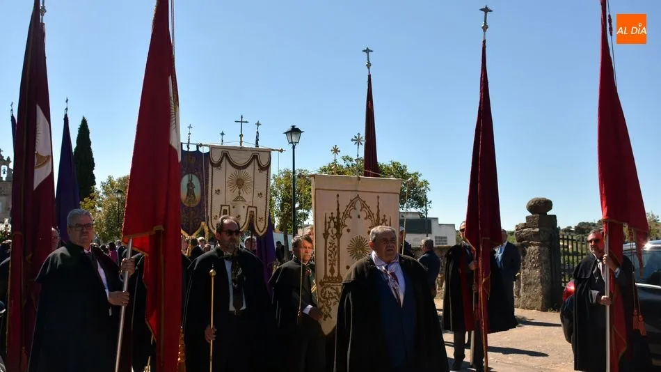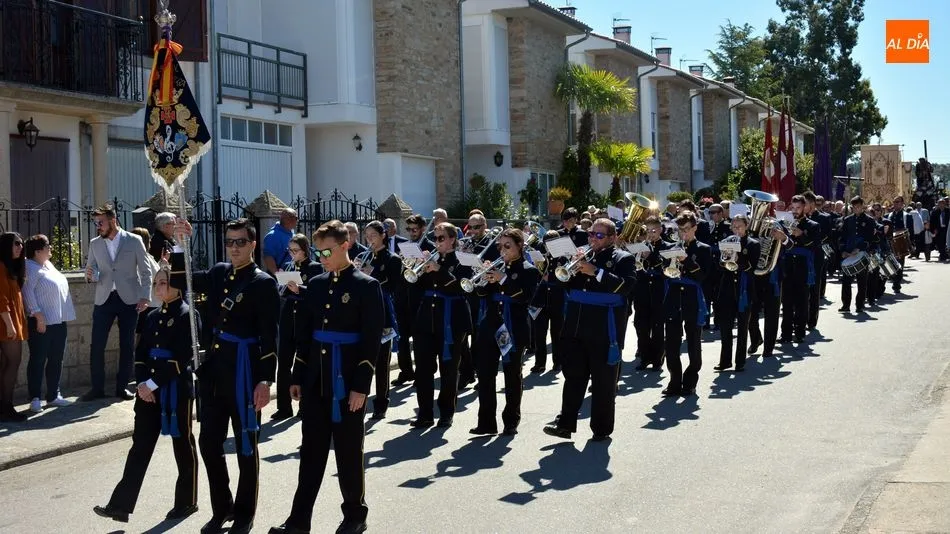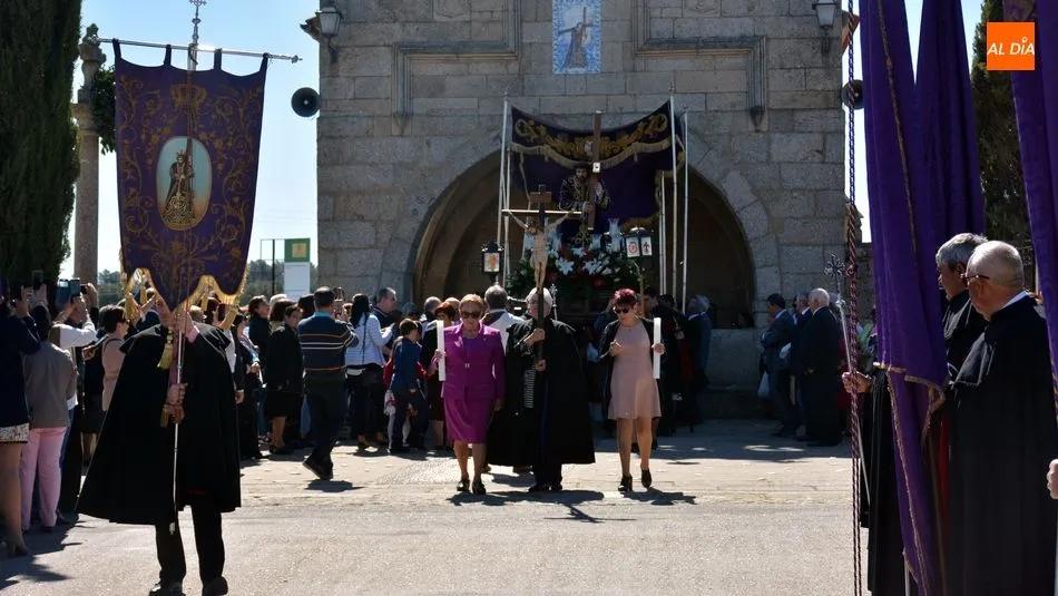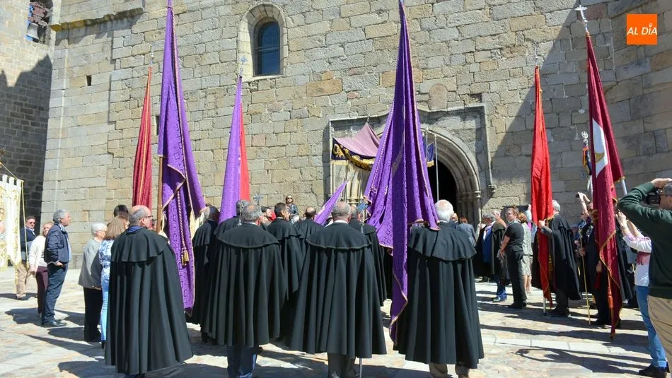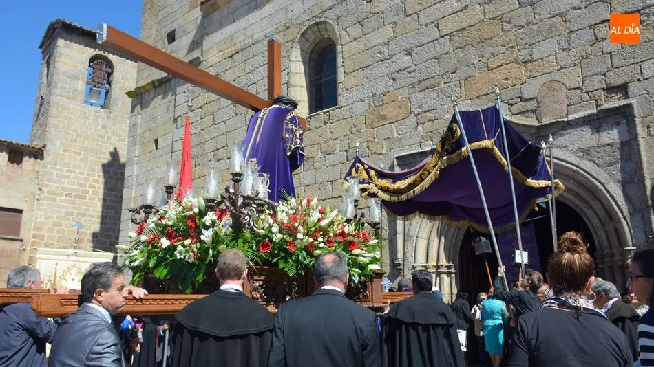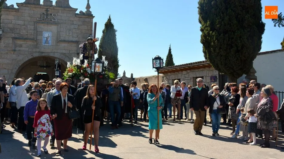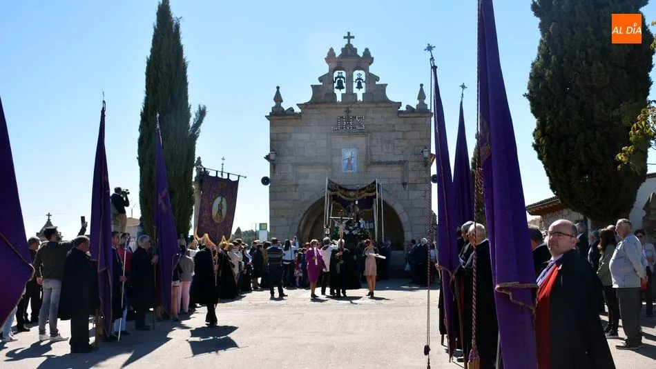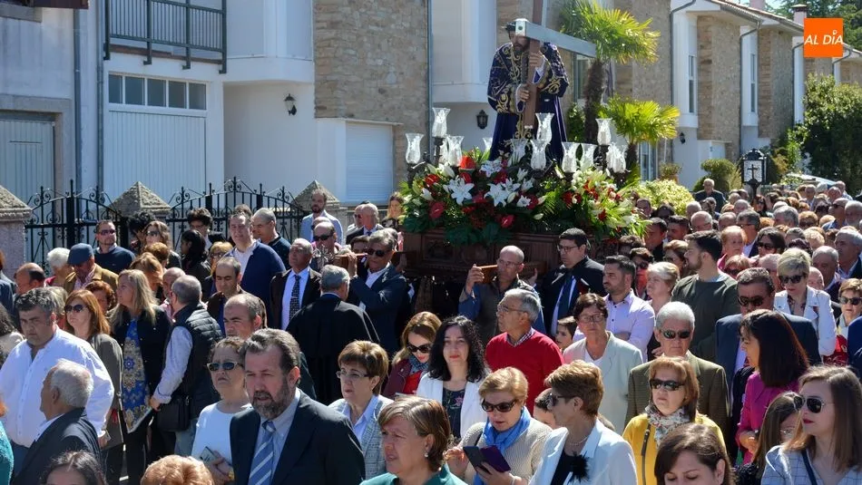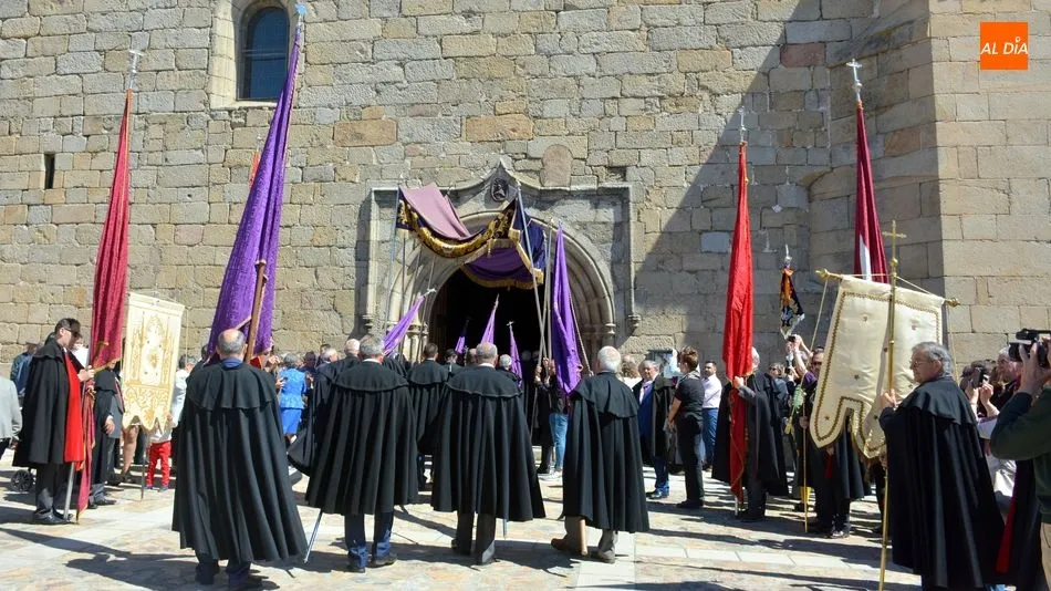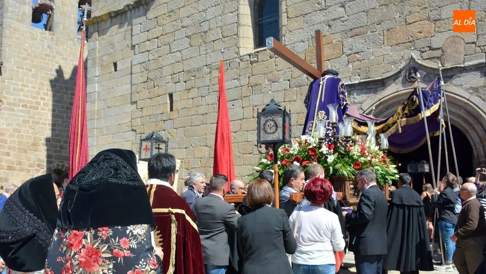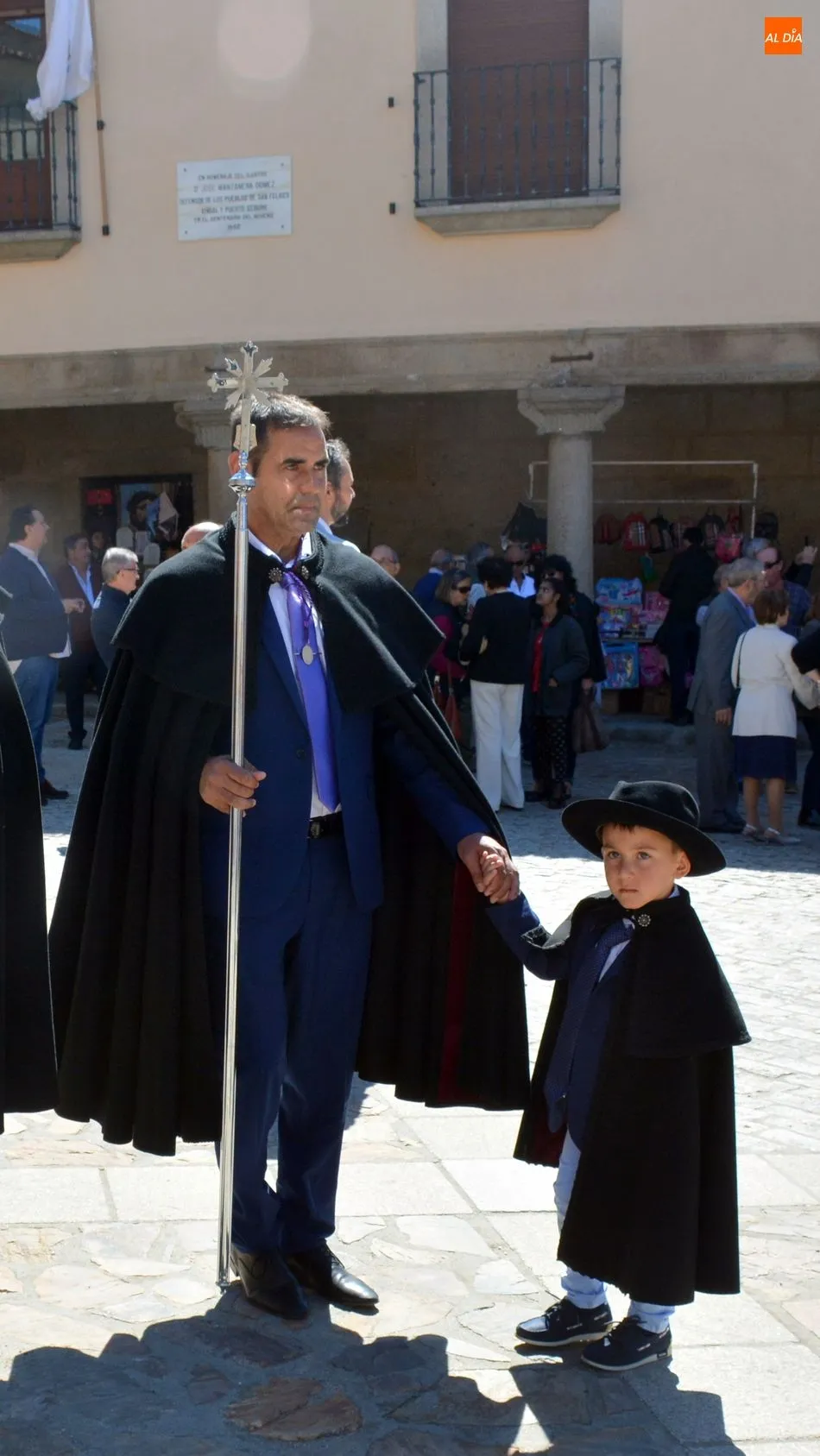La presencia de devotos se incrementó en los actos celebrados esta mañana. Los peregrinos y todos los vecinos de San Felices acompañaron a los miembros de la Cofradía de Jesús Nazareno en los actos religioso del día grande de la Santa Cruz. A las 11,30 horas, salía de su ermita la imagen del Nazareno, llevada en procesión hasta la iglesia parroquial. La agrupación musical Virgen de la Vega de Salamanca abría la comitiva integrada por la Cofradía de Jesús Nazareno, formada, según el orden jerárquico, por seis alcaldes, seis oficiales y los mayordomos, luciendo la capa charra y cordón y pañuelo al cuello, abría la comitiva portando los grandes estandartes de color morado. Iban acompañados también por los miembros de la Cofradía del Santísimo y sus estandartes rojos.