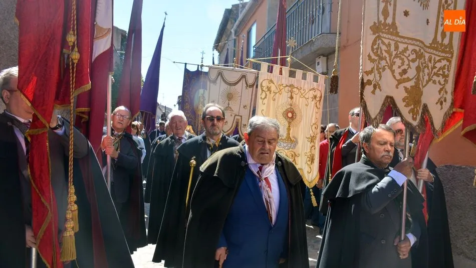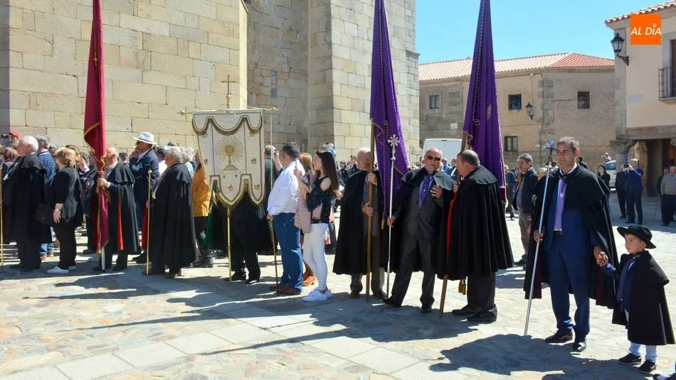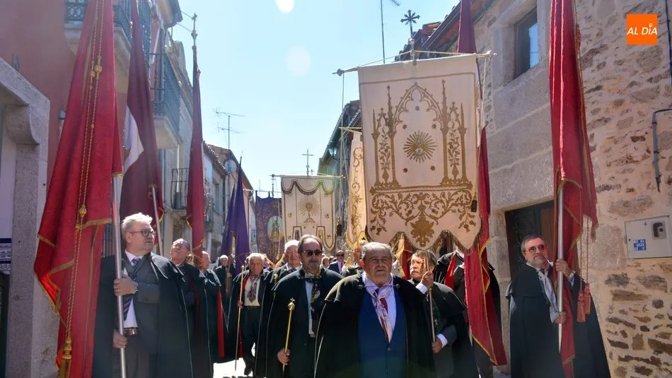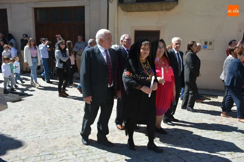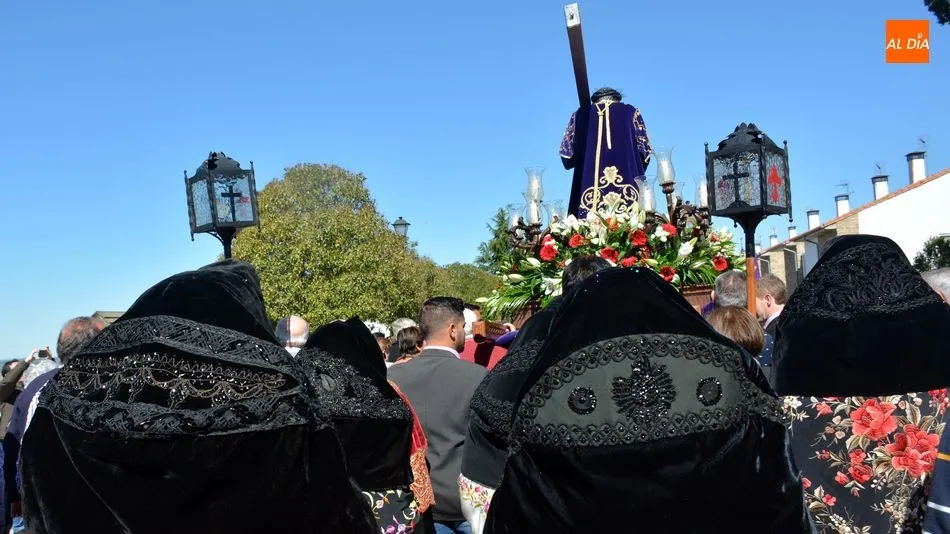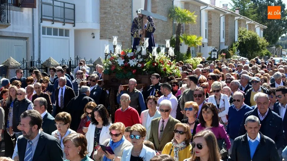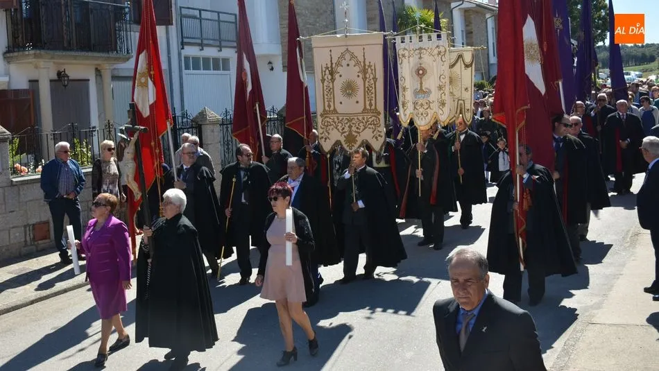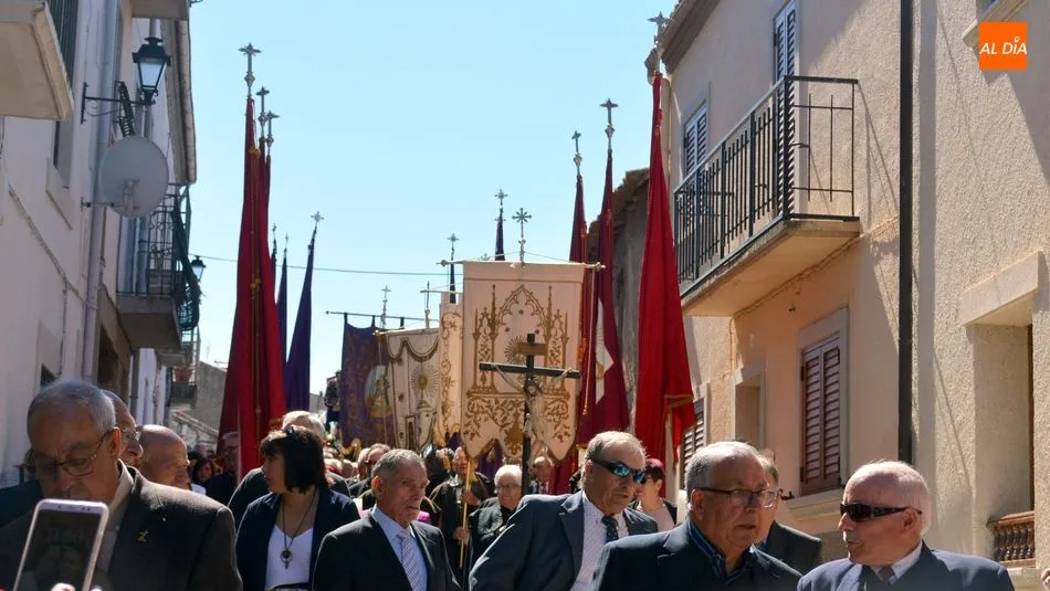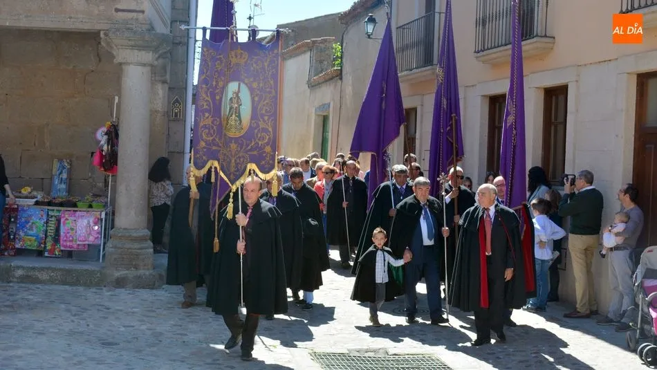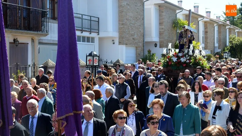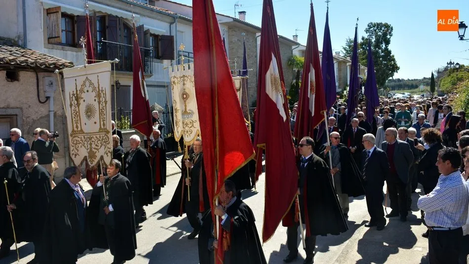 La presencia de devotos se incrementó en los actos celebrados esta mañana. Los peregrinos y todos los vecinos de San Felices acompañaron a los miembros de la Cofradía de Jesús Nazareno en los actos religioso del día grande de la Santa Cruz. A las 11,30 horas, salía de su ermita la imagen del Nazareno, llevada en procesión hasta la iglesia parroquial. La agrupación musical Virgen de la Vega de Salamanca abría la comitiva integrada por la Cofradía de Jesús Nazareno, formada, según el orden jerárquico, por seis alcaldes, seis oficiales y los mayordomos, luciendo la capa charra y cordón y pañuelo al cuello, abría la comitiva portando los grandes estandartes de color morado. Iban acompañados también por los miembros de la Cofradía del Santísimo y sus estandartes rojos.