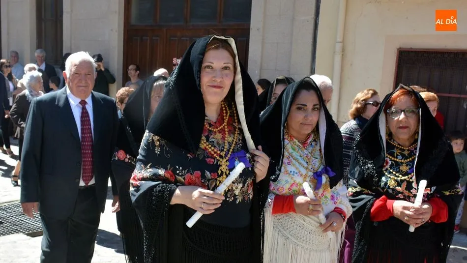 Detrás de la imagen, que es llevada en hombros por los propios miembros de la cofradía y algunos devotos, caminan las mayordomas, ataviadas con mantones y con la peculiar mantilla de rocador. Los hermanos Redero Centeno (Mercedes, Alberto y Alicia) y sus respectivas parejas: Manuel José Fregeneda Sánchez, Nuria Redero González y David Coria Iglesias, además de Arturo Agudo Holgado y Noelia Román Trevejo, Javier Alvarado Sánchez y Mª Dolores Centeno Hernández, son los mayordomos de 2019.