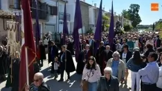 Cientos de personas participaron en la procesión de bajada de la imagen desde su ermita a la iglesia parroquial, acompañando a la Cofradía de Jesús Nazareno y del Santísimo