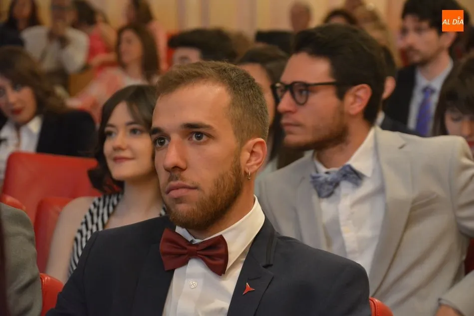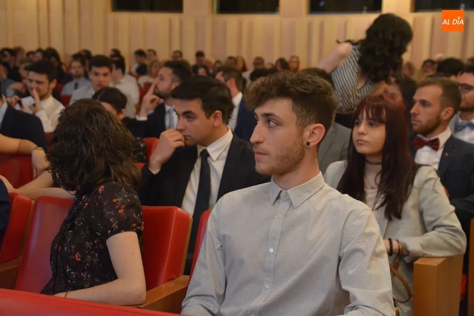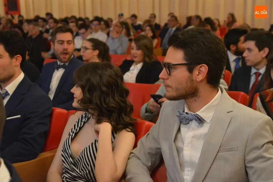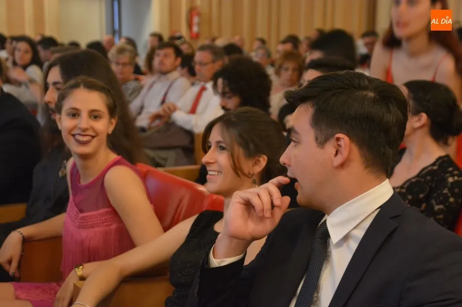 El Auditorio de la Hospedería Fonseca ha acogido esta mañana el acto de graduación de los alumnos de Geografía e Historia de la Universidad de Salamanca. La actividad ha contado con la presencia de la vicerrectora de Docencia y Evaluación de la Calidad, Izaskun Álvarez Cuartero; el decano de la Facultad de Geografía e Historia, Francisco Javier Lorenzo Pinar; el padrino de la promoción, Julio Sánchez Gómez; y la madrina de la promoción Juana Rodríguez Cortés.