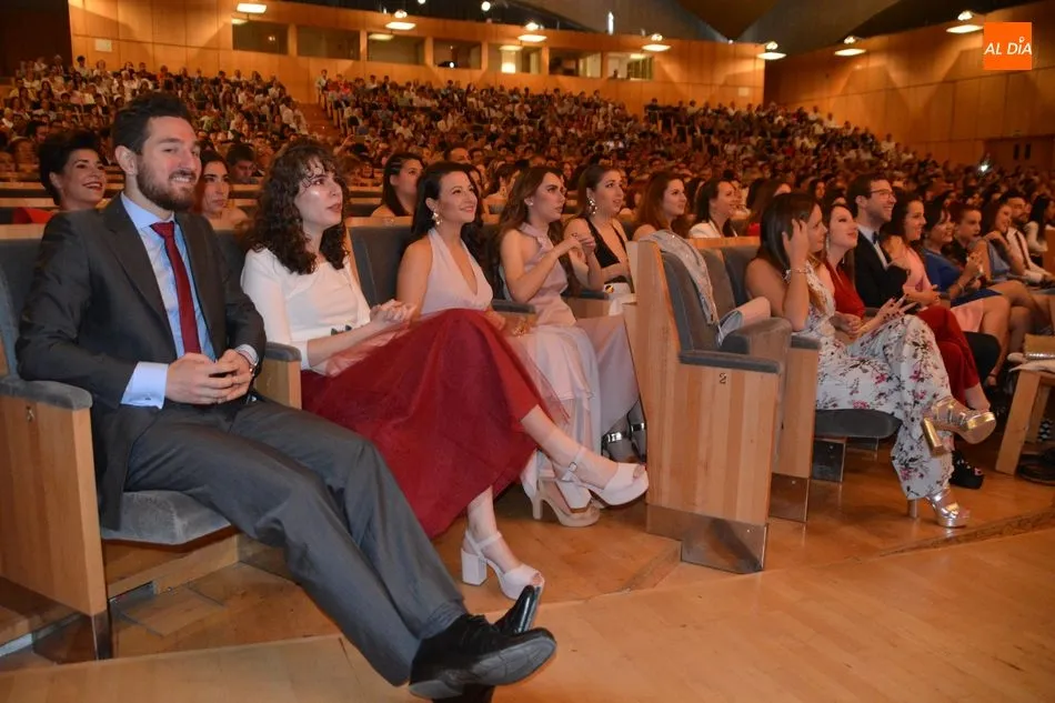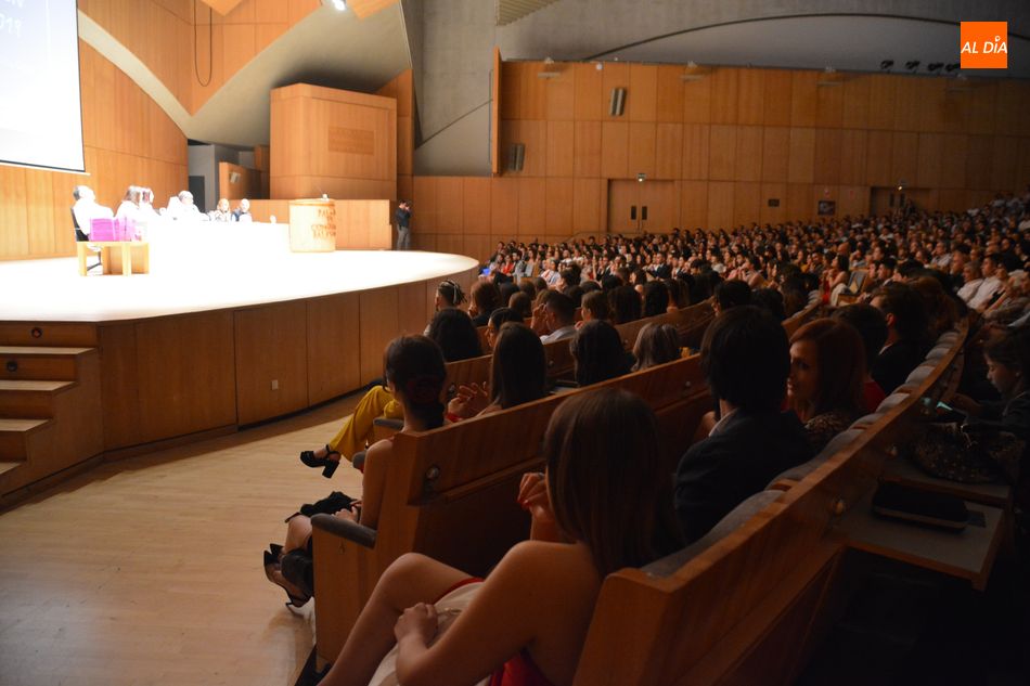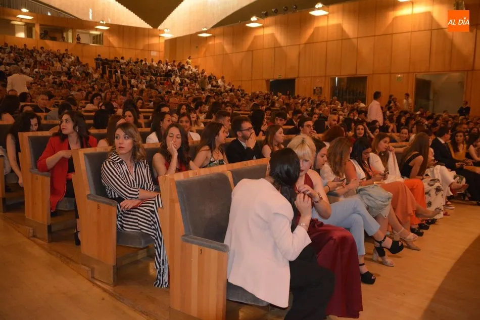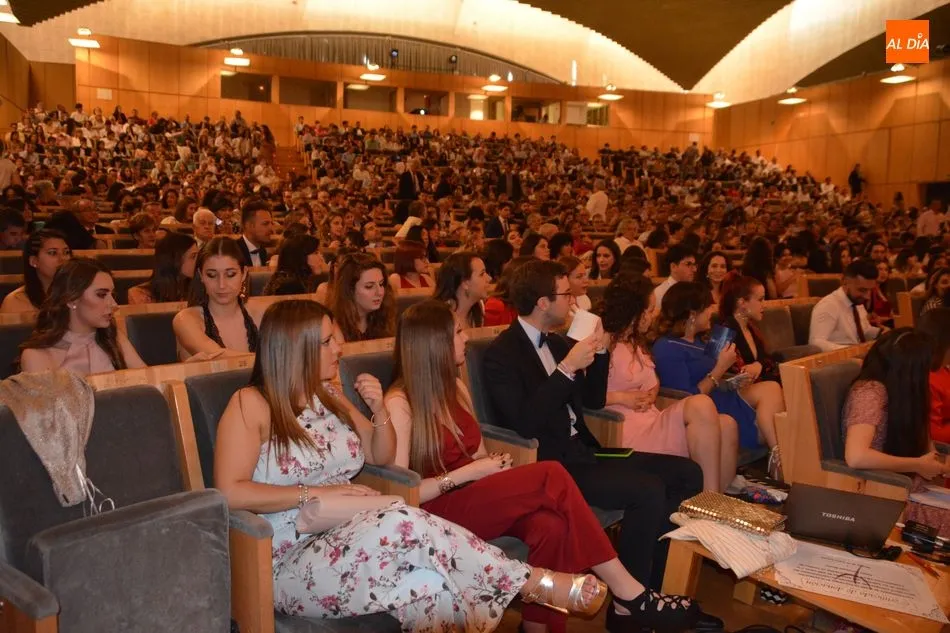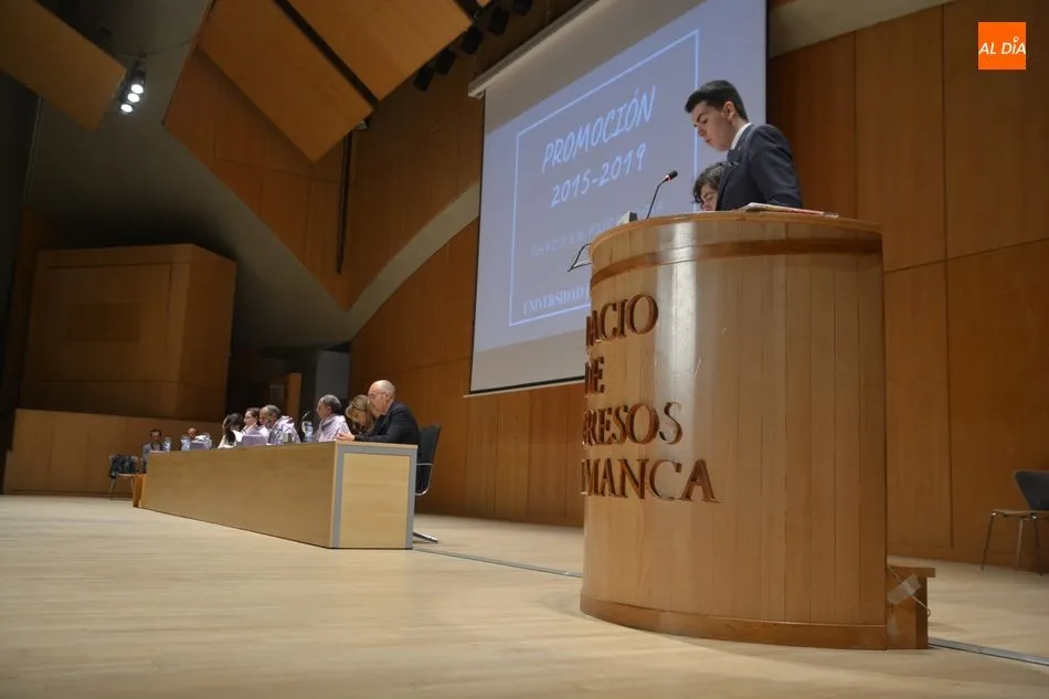 La Facultad de Psicología de la Universidad de Salamanca ha despedido esta mañana a una nueva promoción de graduados. El acto de graduación se ha celebrado en el Palacio de Congresos de Salamanca y ha contado con la presencia del vicedecano de Infraestructuras y Economía, Juan José García Meilán; el decano de la Facultad de Psicología, Emilio Sánchez Miguel; y la madrina y el padrino de la promoción, Amaia Yurrebaso y Alberto de la Torre.