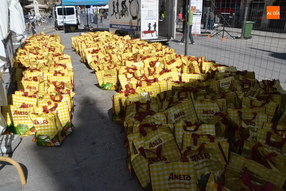 Como siempre, todos los atletas pudieron recoger en la Plaza la bolsa del corredor, que contenía una botella de agua, una bebida isotónica, una manzana y un bollito para recuperar fuerzas. De igual modo, pudieron retirar las pertenencias que habían entregado en la salida a los Bomberos Voluntarios, quienes las habían colocado en los soportales de la Casa Consistorial.