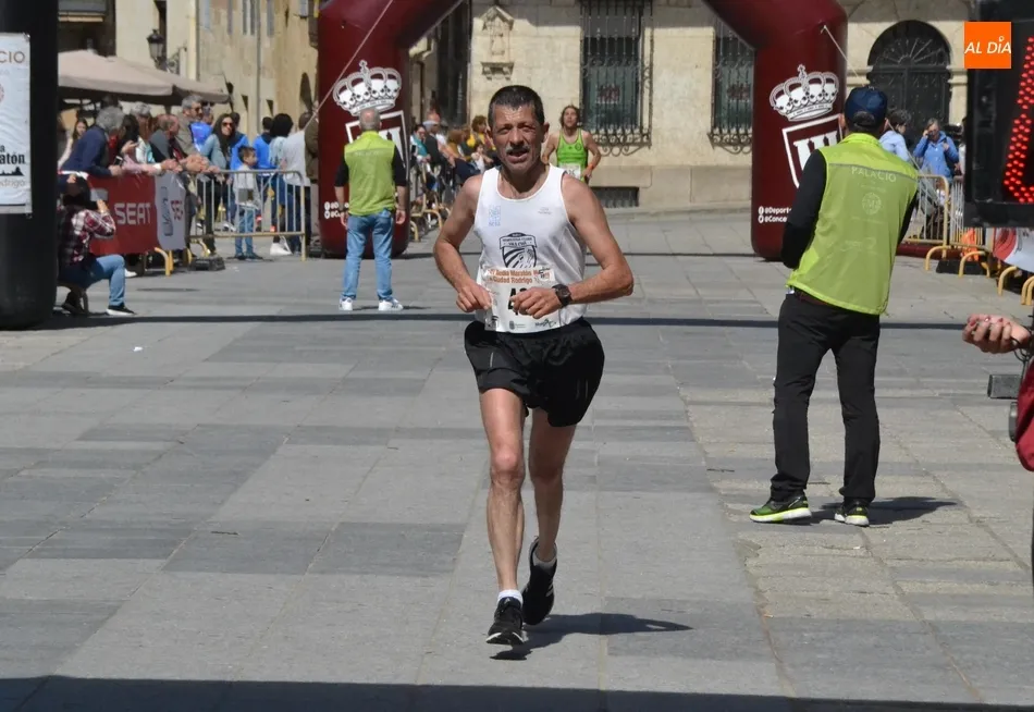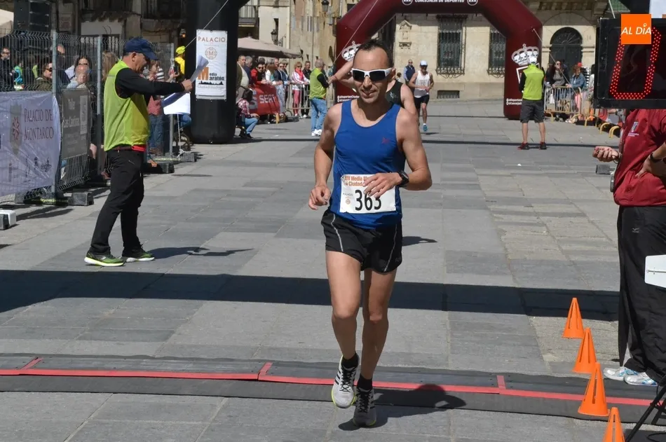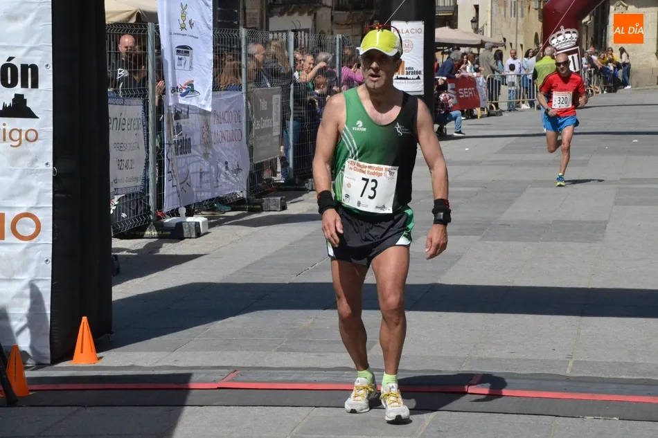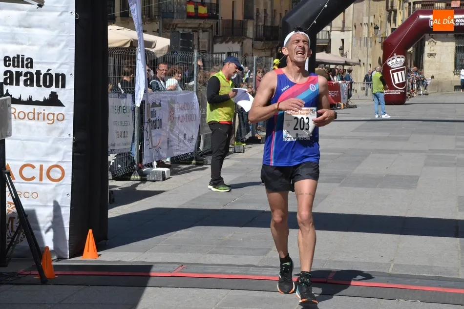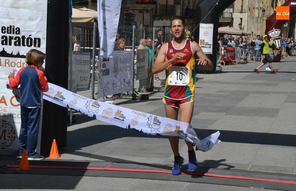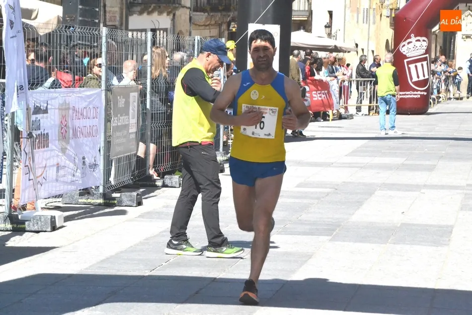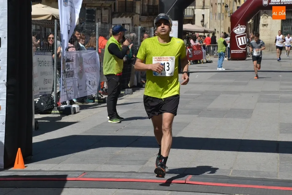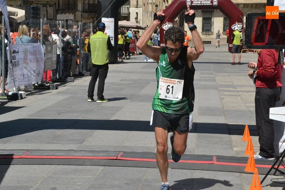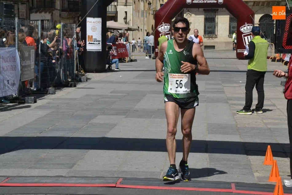 El primer atleta en hacer acto de presencia por ese ágora fue Alberto Marcos Rodríguez, del Vino de Toro-Caja Rural, quién tras haber firmado el año pasado la 3ª plaza, este año se aupó a lo más alto del podio, con un tiempo de 1h.09?27?. El granador le sacó ?un mundo?, casi 3 minutos, al segundo clasificado absoluto, Manuel Vicente Tejedor Morán, que entró en 1h.12?24?. Entre medias entró el único atleta en silla de ruedas participante, Vicente Martín Calvo, que completó los 21,097 kilómetros en 1h.11?49?.