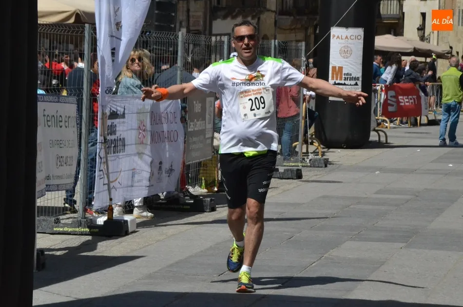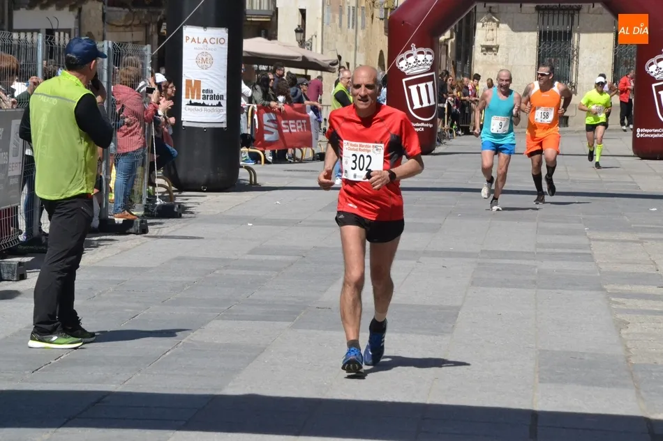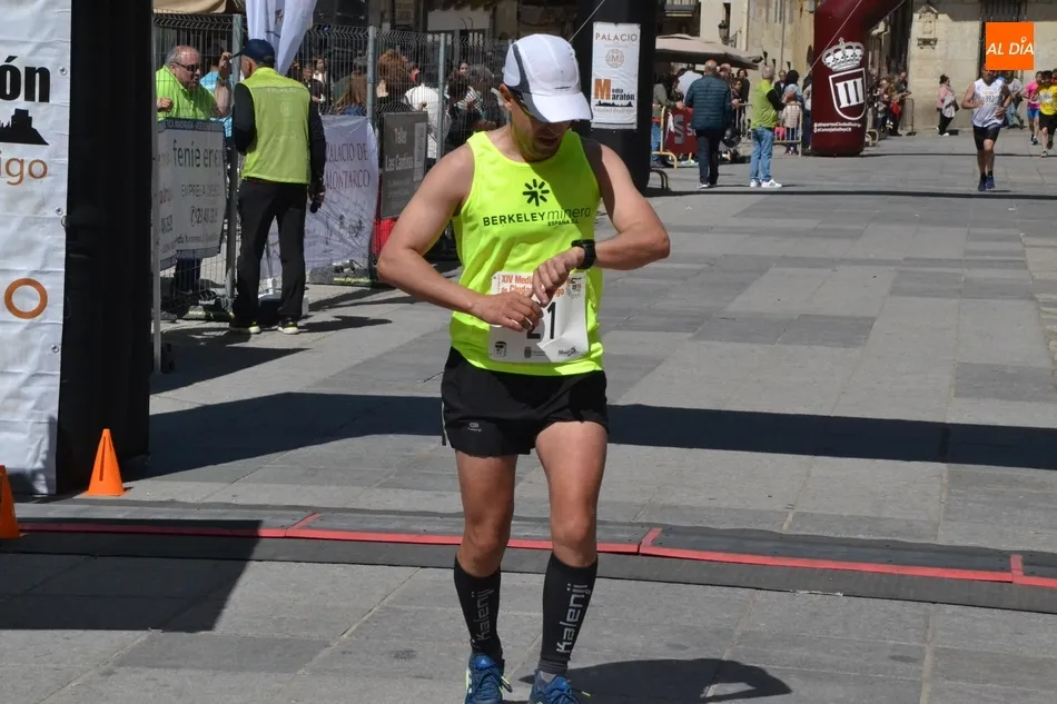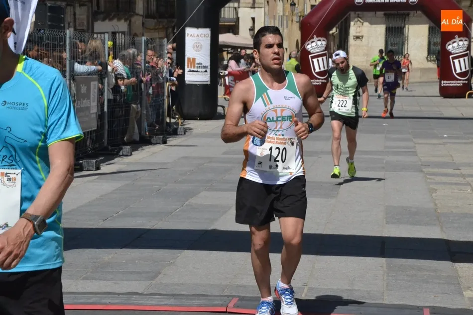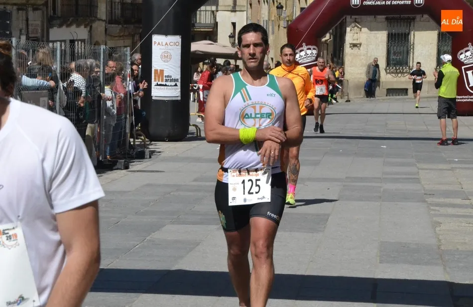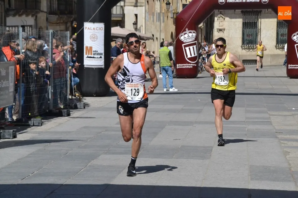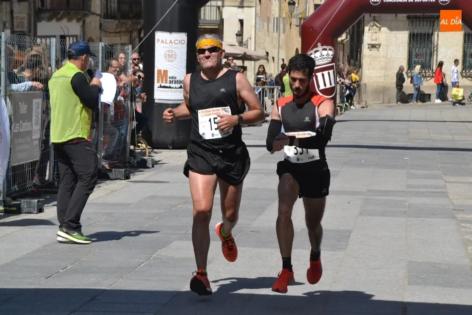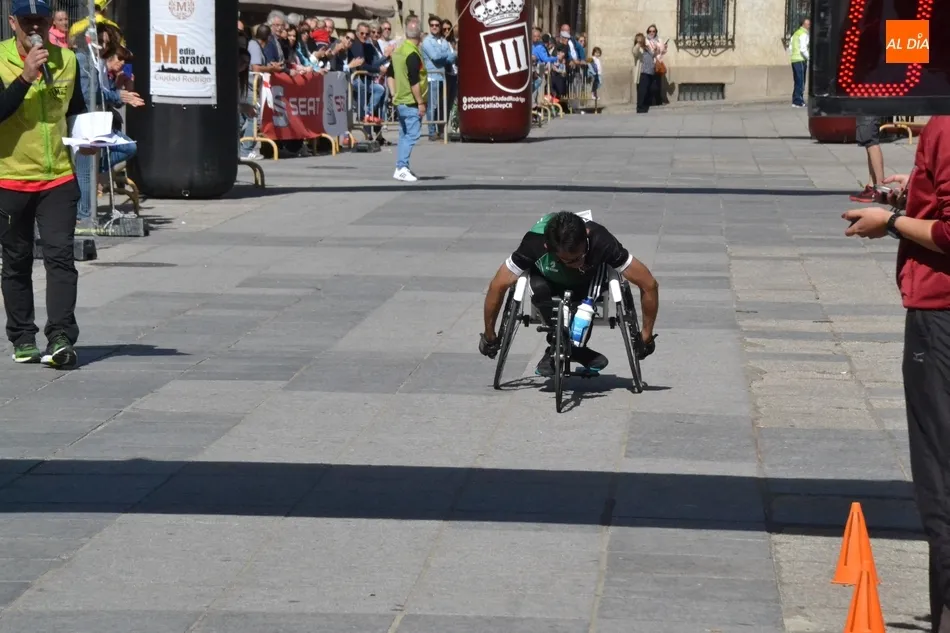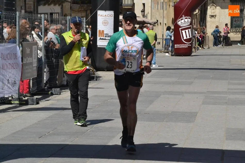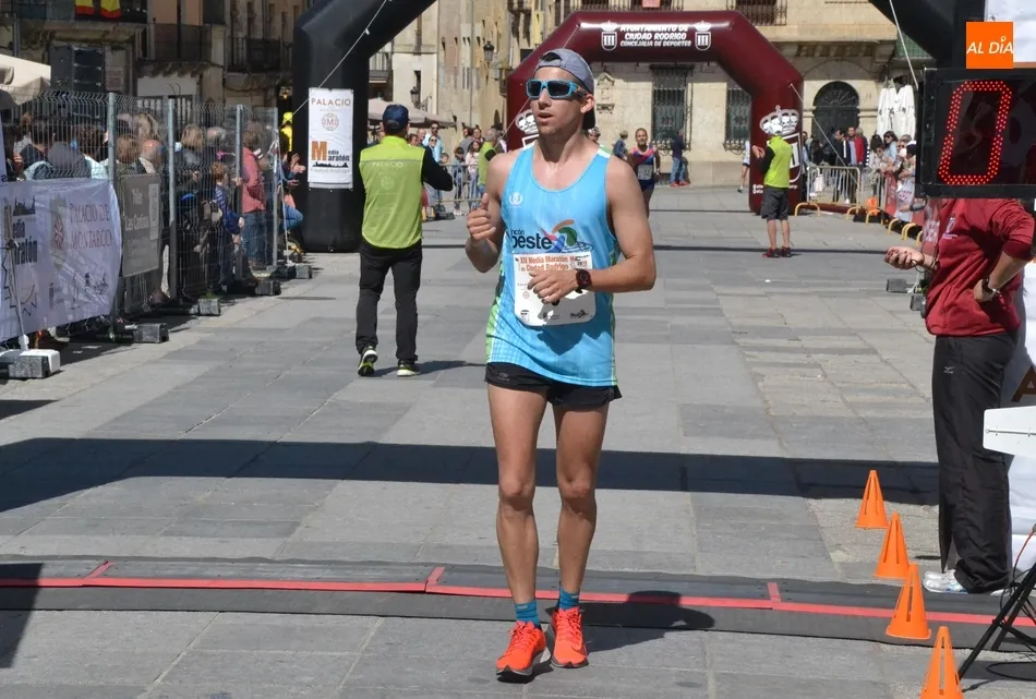 El primer atleta en hacer acto de presencia por ese ágora fue Alberto Marcos Rodríguez, del Vino de Toro-Caja Rural, quién tras haber firmado el año pasado la 3ª plaza, este año se aupó a lo más alto del podio, con un tiempo de 1h.09?27?. El granador le sacó ?un mundo?, casi 3 minutos, al segundo clasificado absoluto, Manuel Vicente Tejedor Morán, que entró en 1h.12?24?. Entre medias entró el único atleta en silla de ruedas participante, Vicente Martín Calvo, que completó los 21,097 kilómetros en 1h.11?49?.