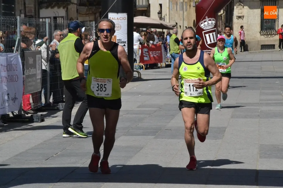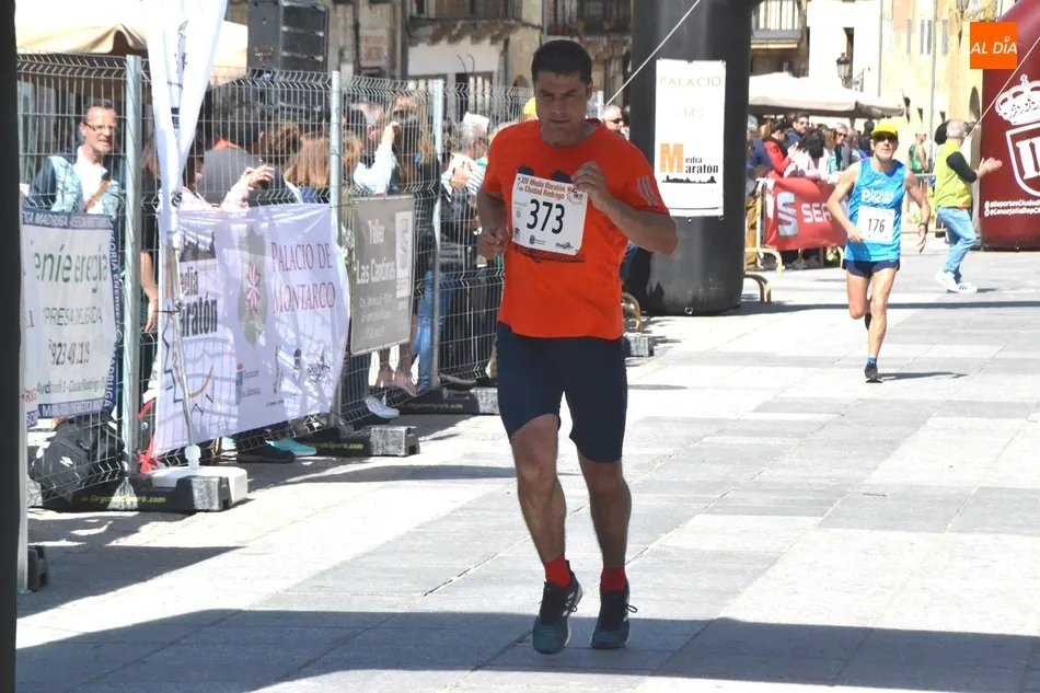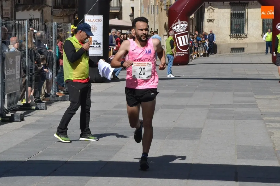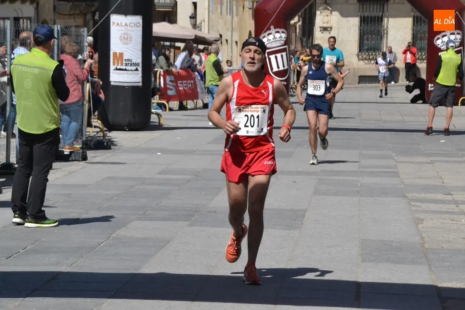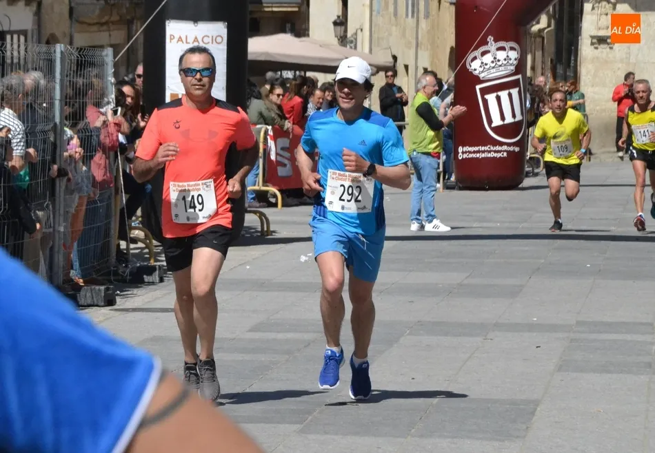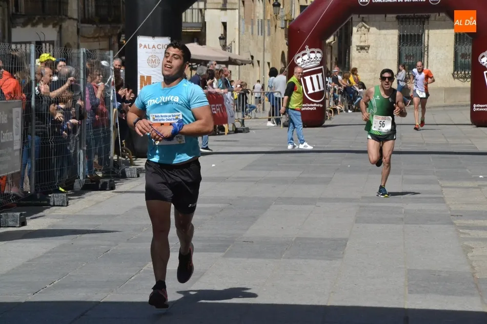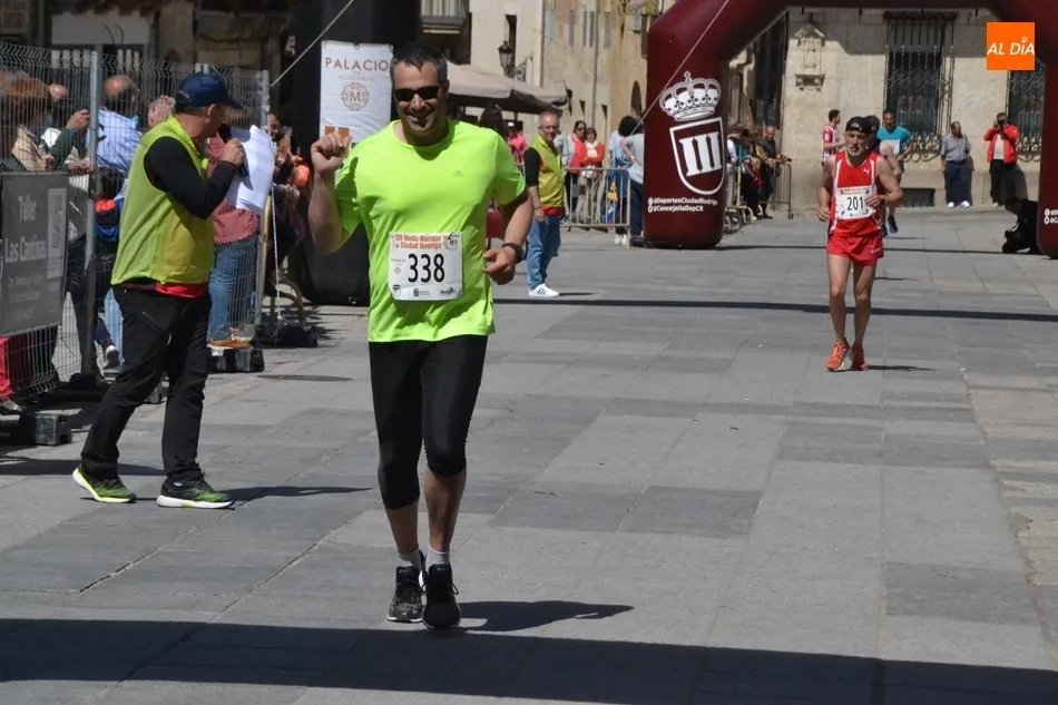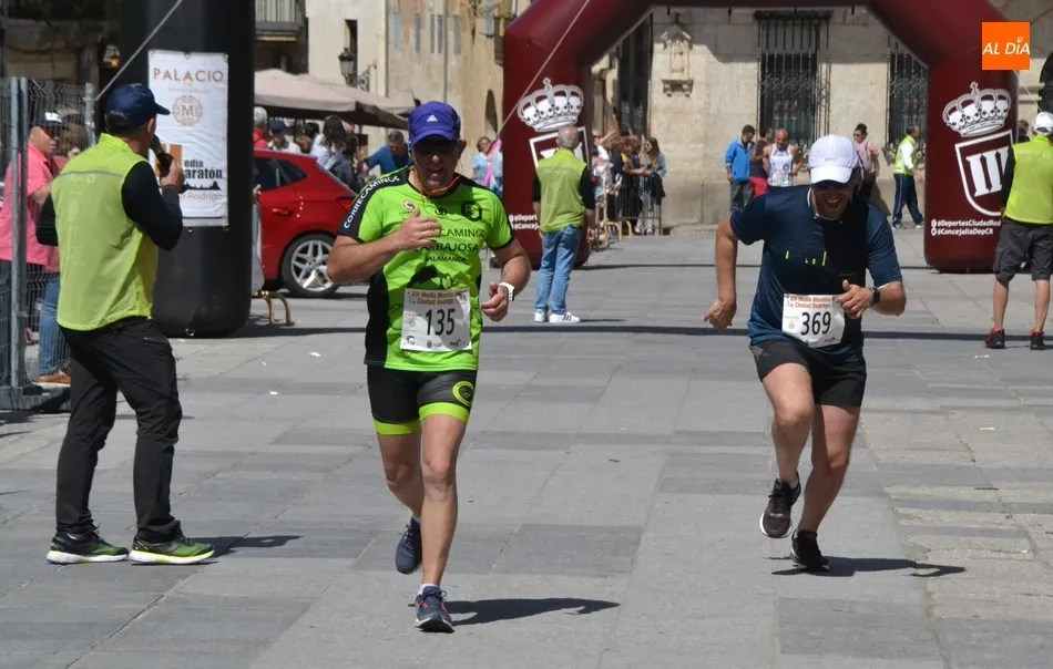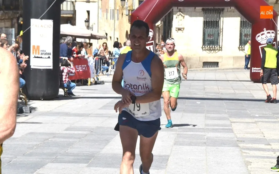 El primer atleta en hacer acto de presencia por ese ágora fue Alberto Marcos Rodríguez, del Vino de Toro-Caja Rural, quién tras haber firmado el año pasado la 3ª plaza, este año se aupó a lo más alto del podio, con un tiempo de 1h.09?27?. El granador le sacó ?un mundo?, casi 3 minutos, al segundo clasificado absoluto, Manuel Vicente Tejedor Morán, que entró en 1h.12?24?. Entre medias entró el único atleta en silla de ruedas participante, Vicente Martín Calvo, que completó los 21,097 kilómetros en 1h.11?49?.