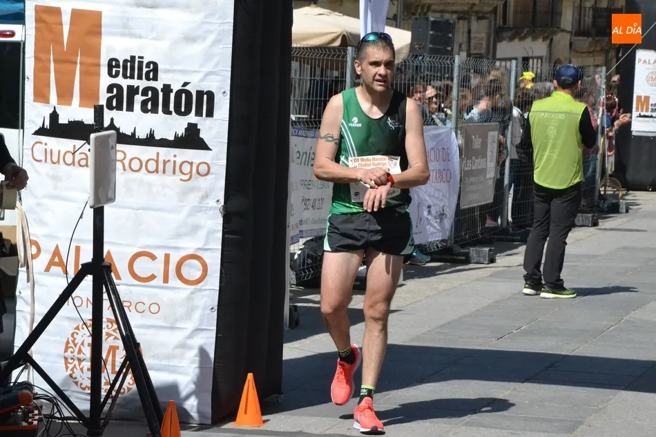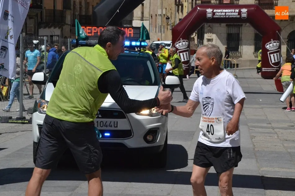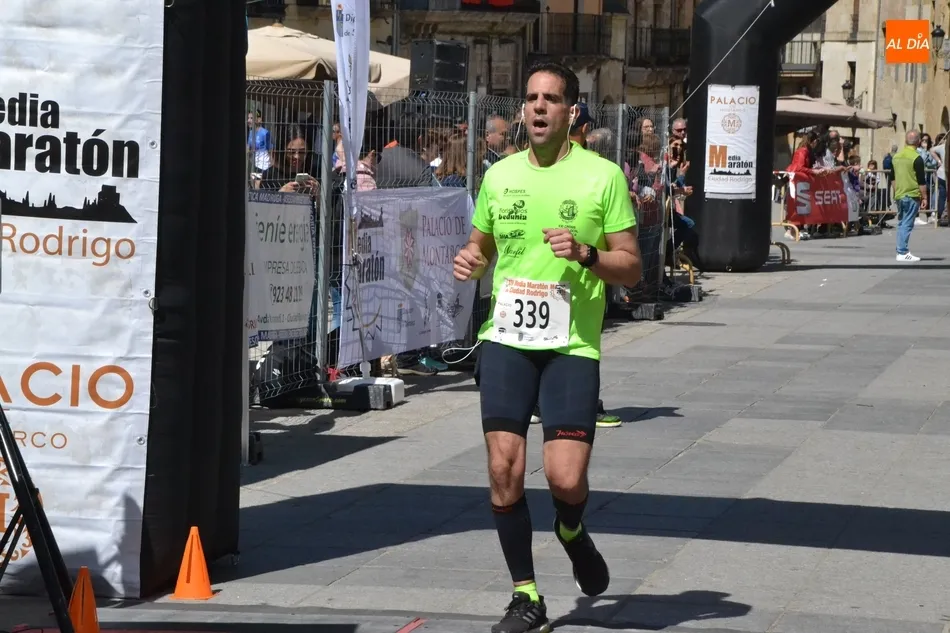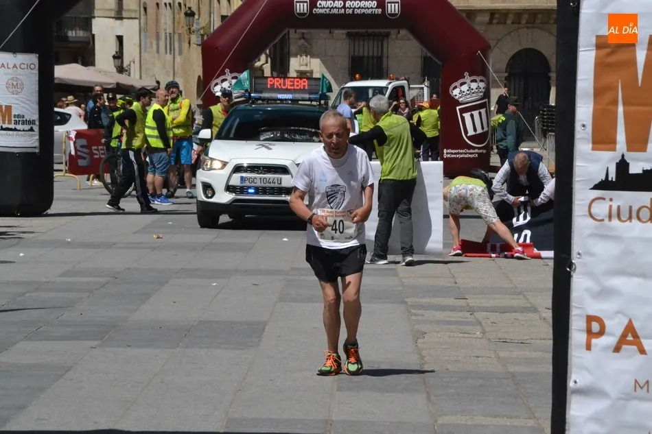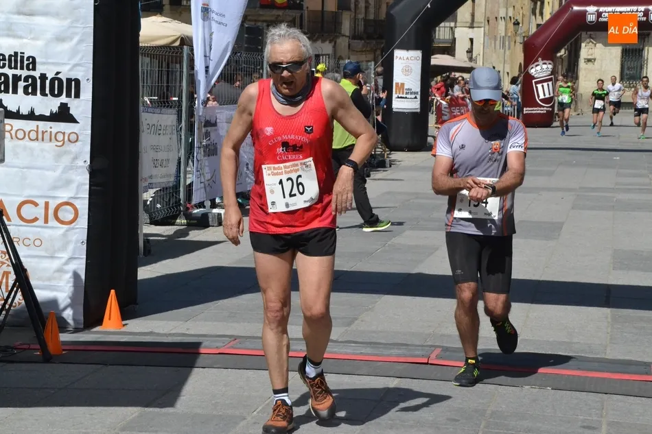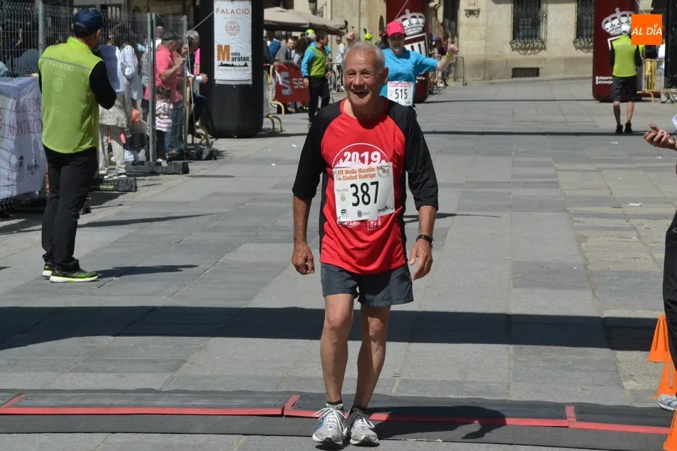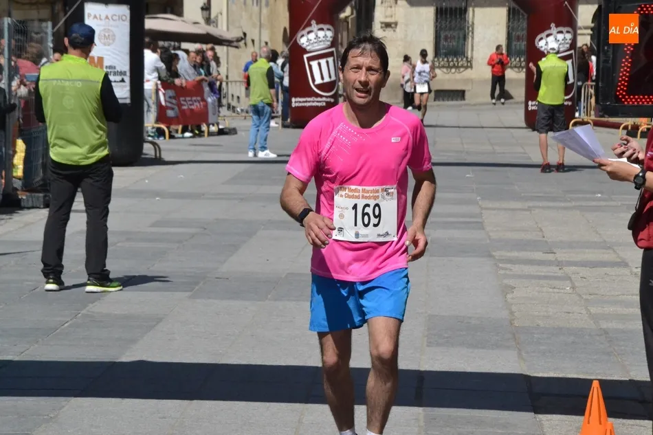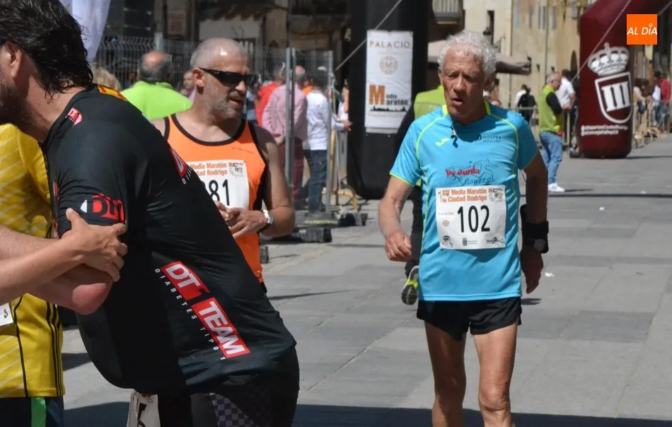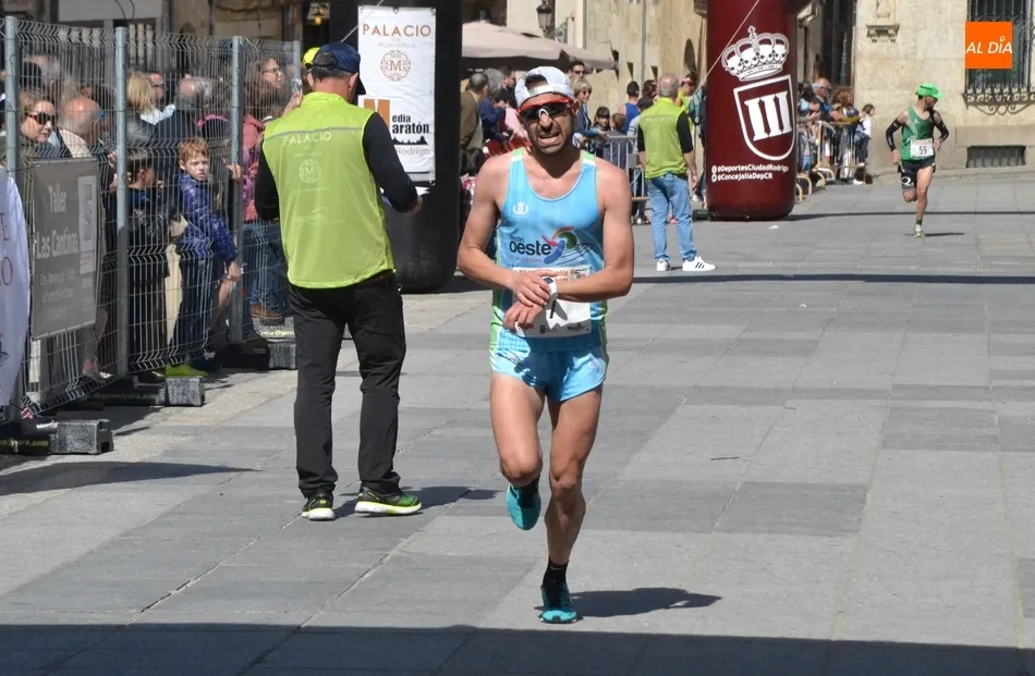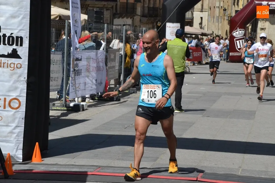 Ese atleta fue uno de los 4 que alcanzaron la Plaza Mayor mirobrigense cuando ya se había ?cerrado la meta? al alcanzarse el tiempo máximo establecido para completar la Media Maratón, que eran 2 horas y 15 minutos. En todo caso, esos 4 atletas tuvieron la oportunidad de pasar bajo el arco de meta, que todavía no se había desinflado. Y más aún, el último atleta en entrar se llevó una gran ovación de todas las personas que había por la Plaza, la mayoría de ellas a la sombra.
