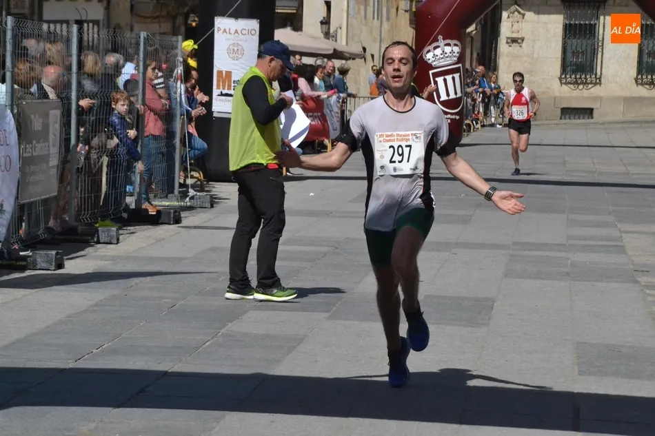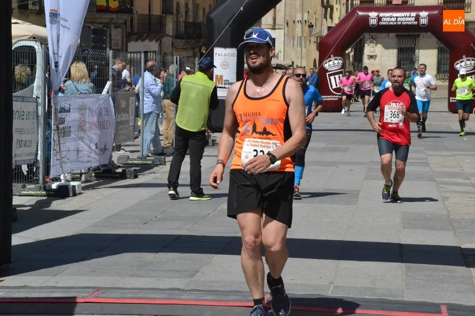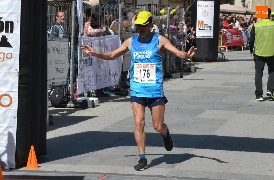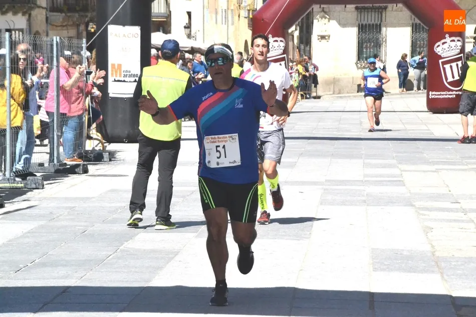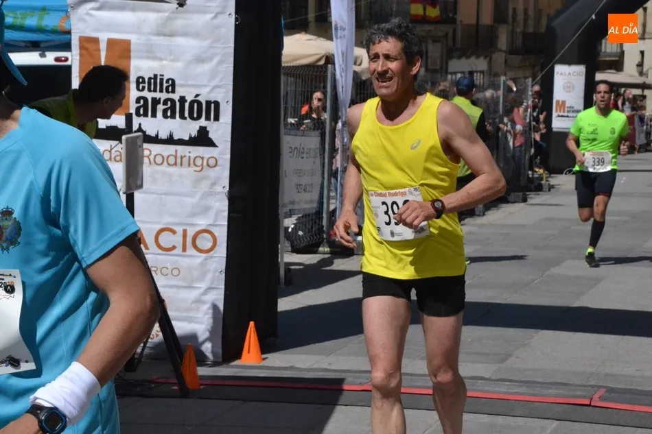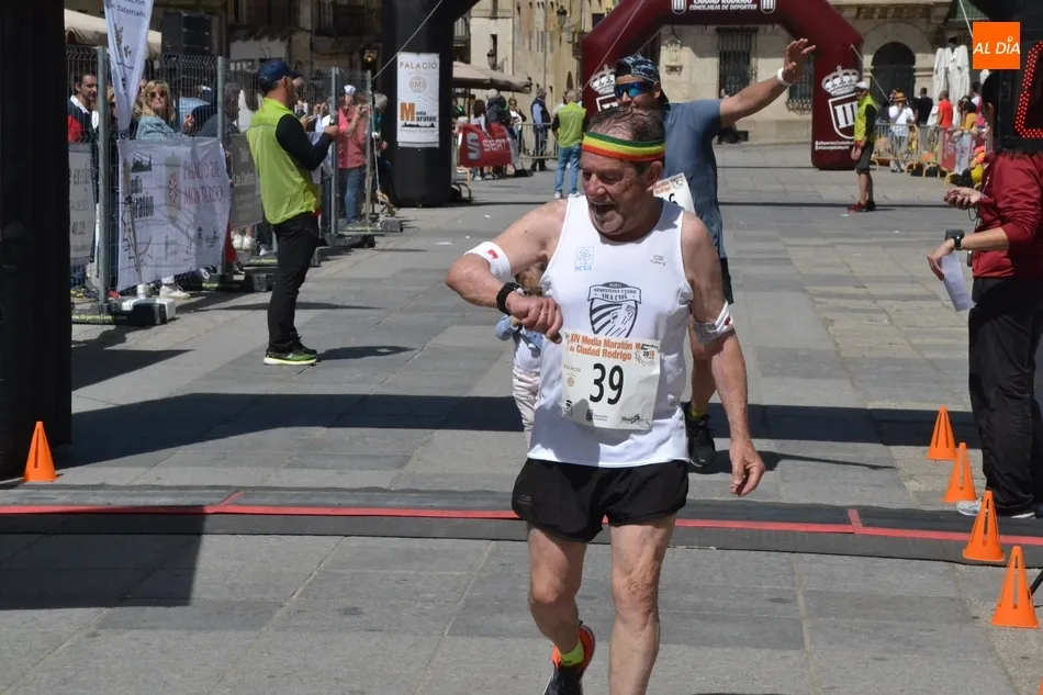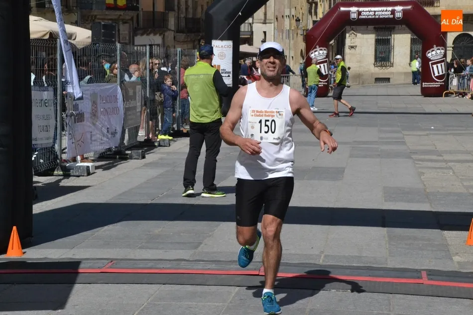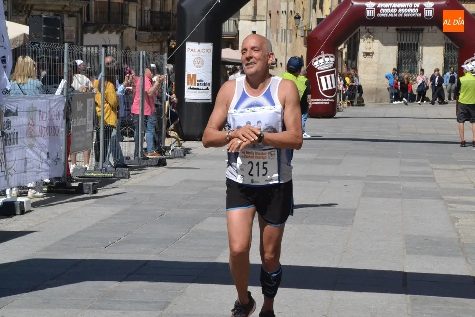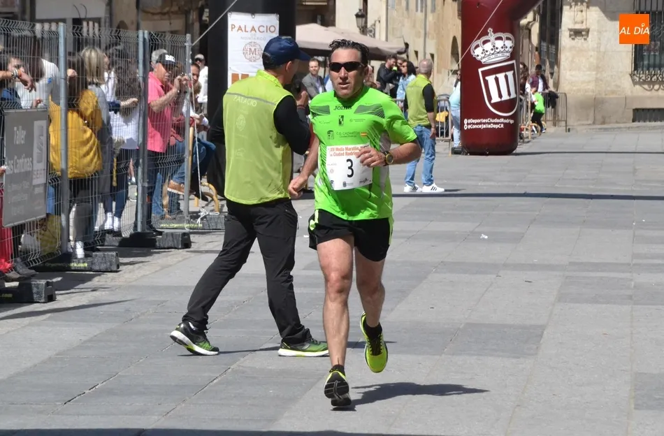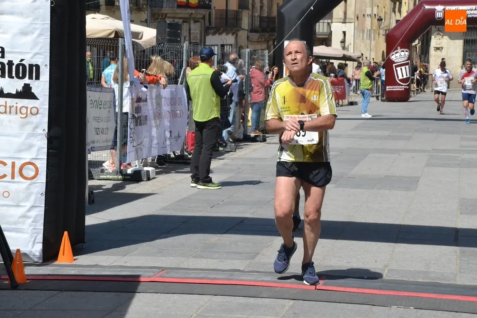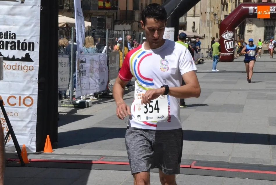 Ese atleta fue uno de los 4 que alcanzaron la Plaza Mayor mirobrigense cuando ya se había ?cerrado la meta? al alcanzarse el tiempo máximo establecido para completar la Media Maratón, que eran 2 horas y 15 minutos. En todo caso, esos 4 atletas tuvieron la oportunidad de pasar bajo el arco de meta, que todavía no se había desinflado. Y más aún, el último atleta en entrar se llevó una gran ovación de todas las personas que había por la Plaza, la mayoría de ellas a la sombra.