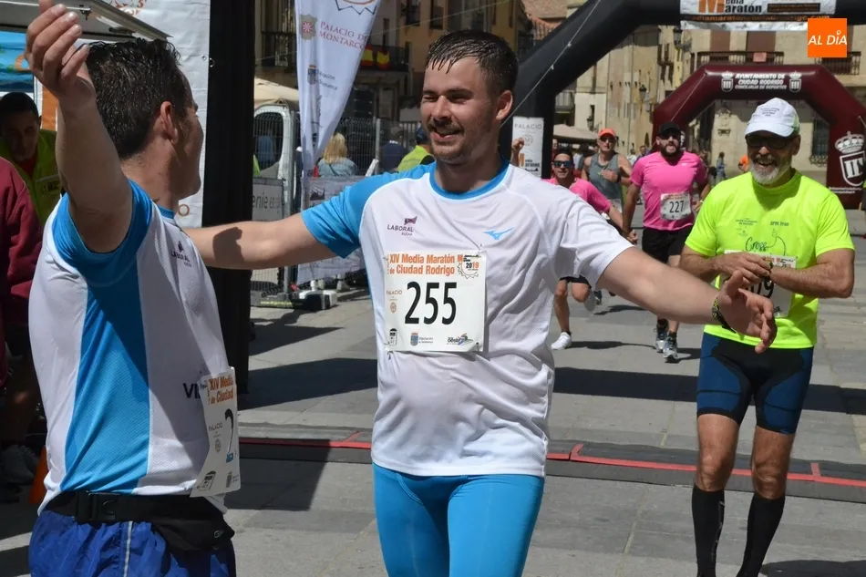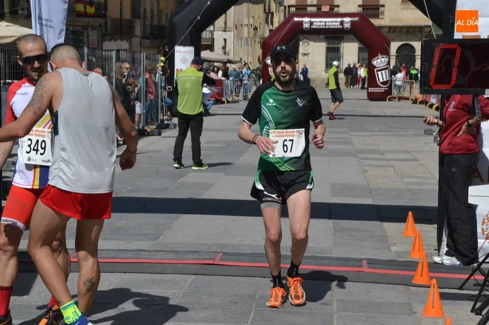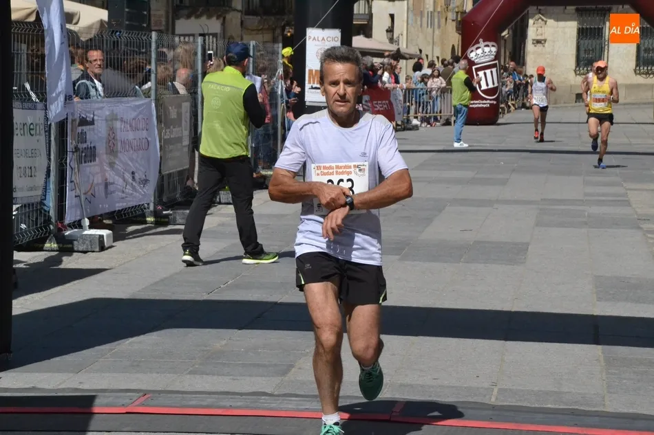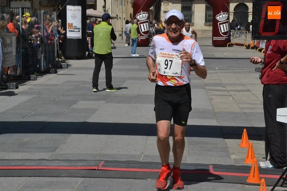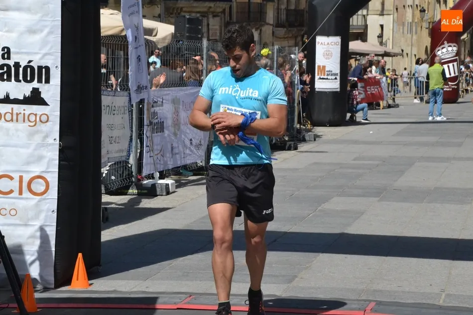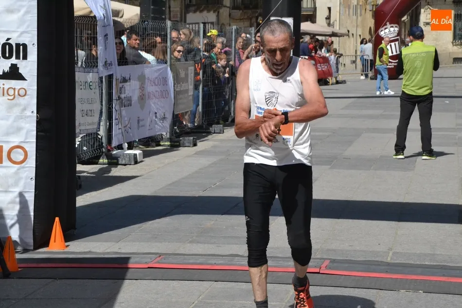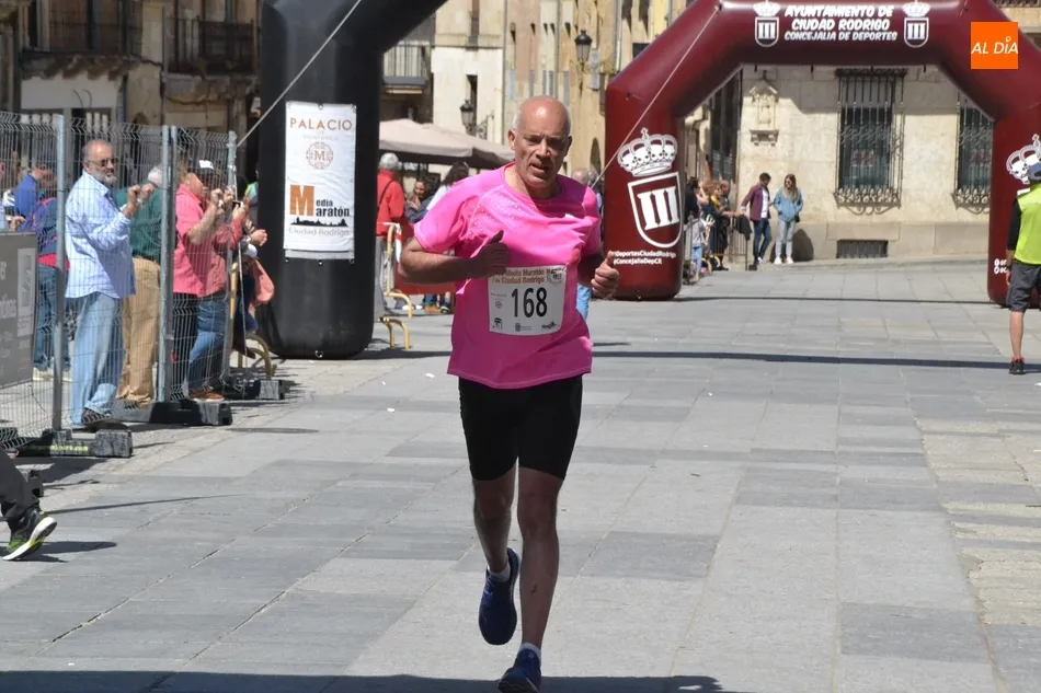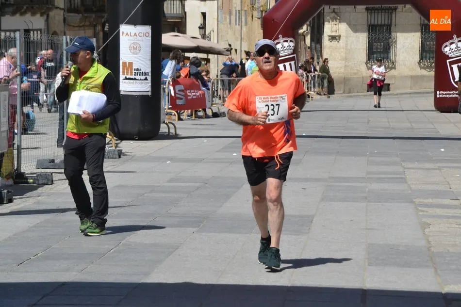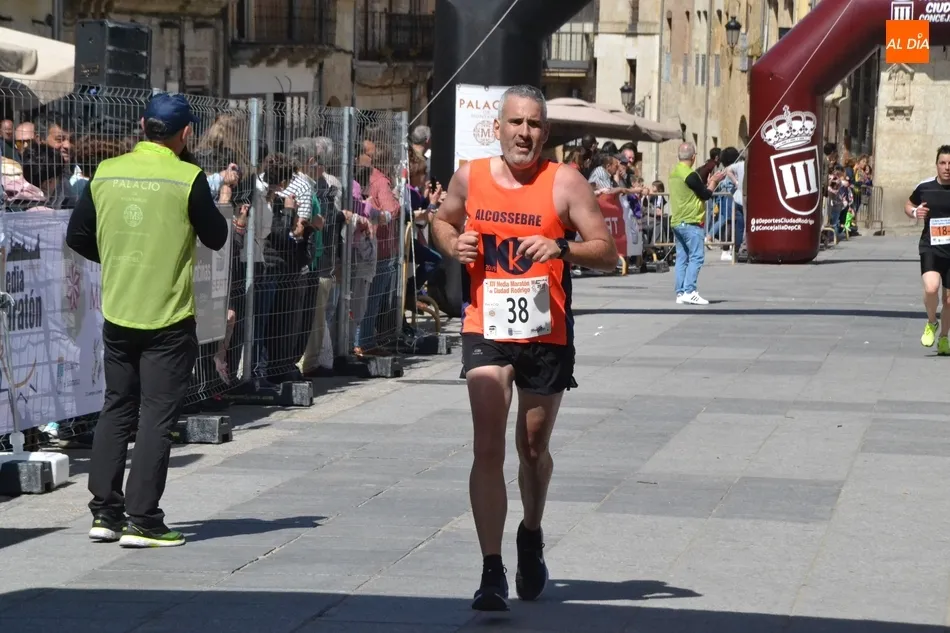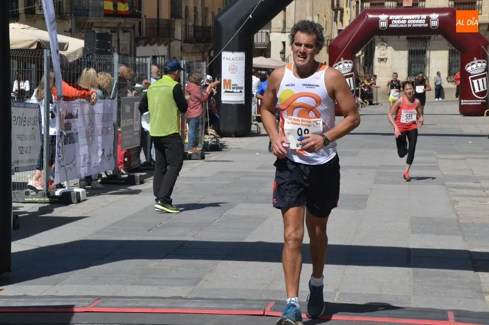 Ese atleta fue uno de los 4 que alcanzaron la Plaza Mayor mirobrigense cuando ya se había ?cerrado la meta? al alcanzarse el tiempo máximo establecido para completar la Media Maratón, que eran 2 horas y 15 minutos. En todo caso, esos 4 atletas tuvieron la oportunidad de pasar bajo el arco de meta, que todavía no se había desinflado. Y más aún, el último atleta en entrar se llevó una gran ovación de todas las personas que había por la Plaza, la mayoría de ellas a la sombra.