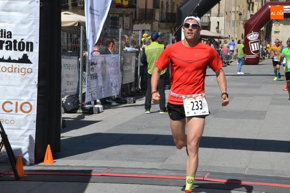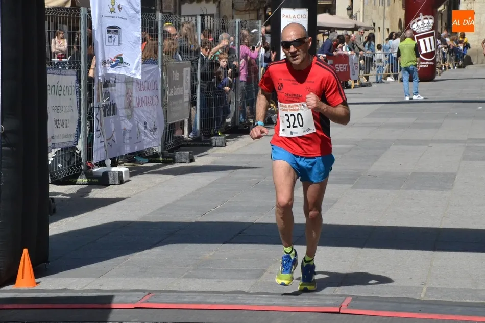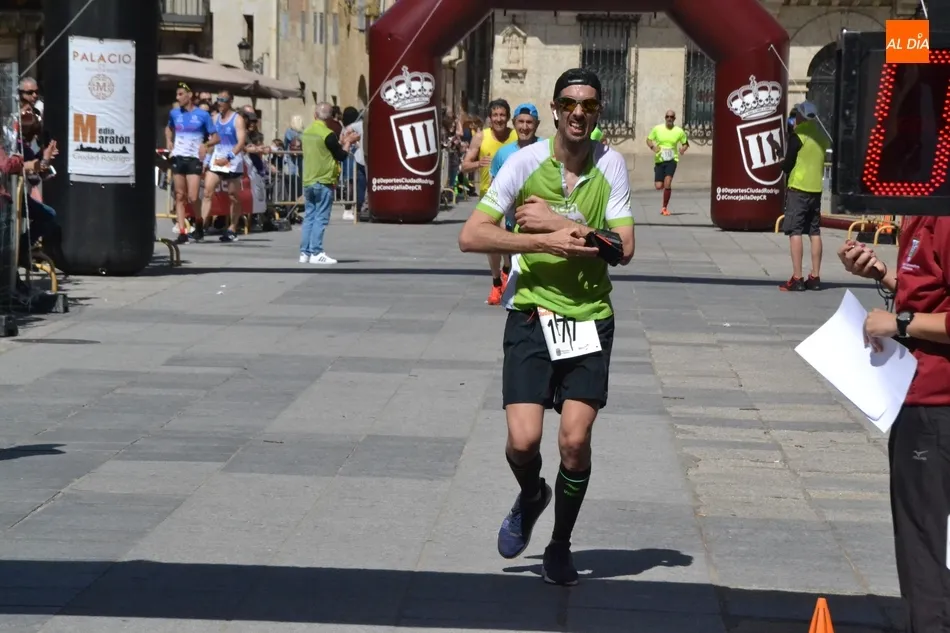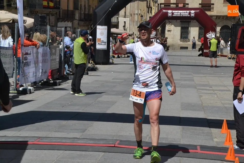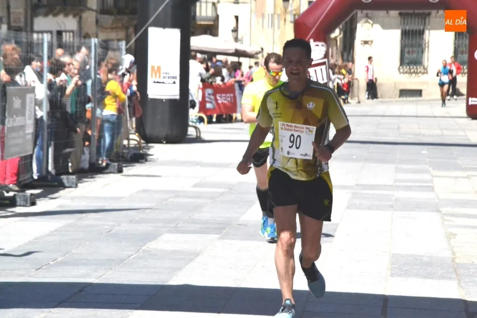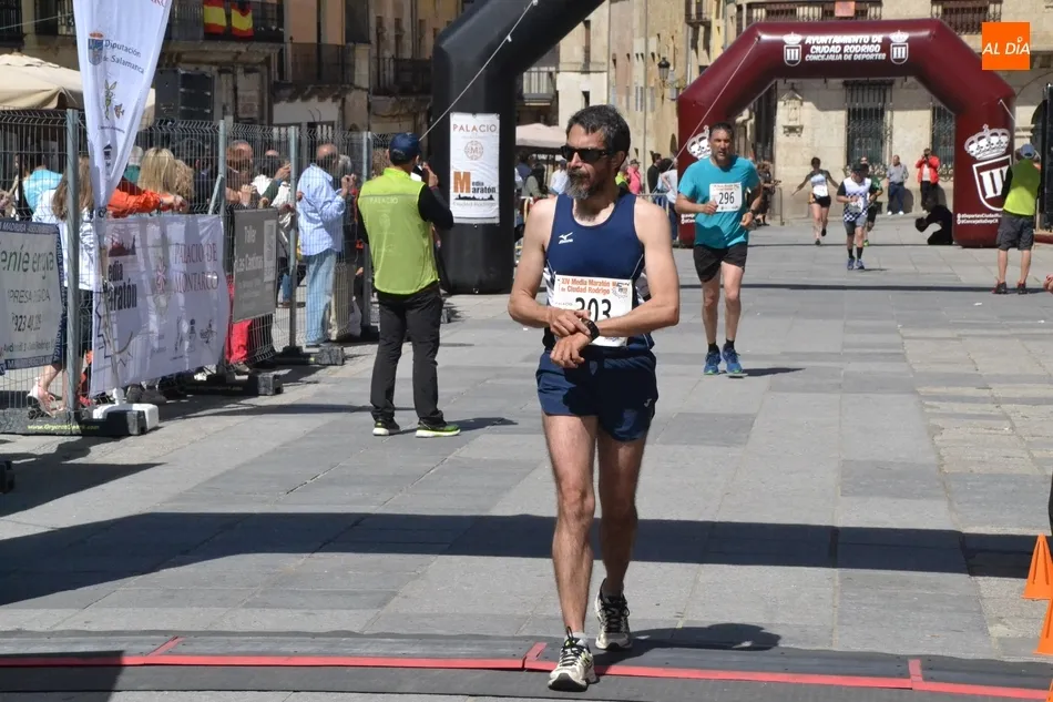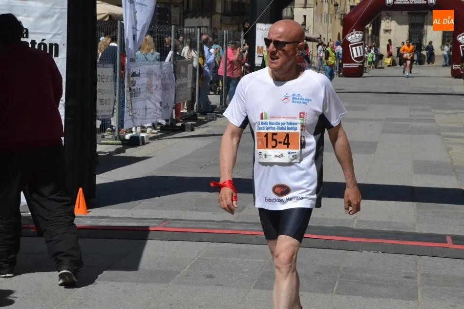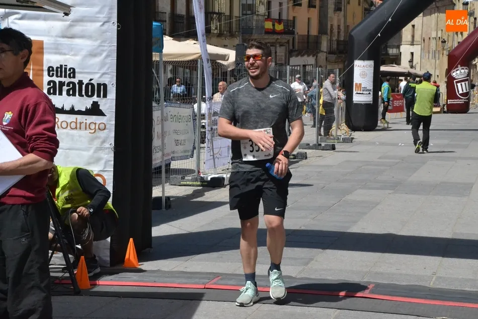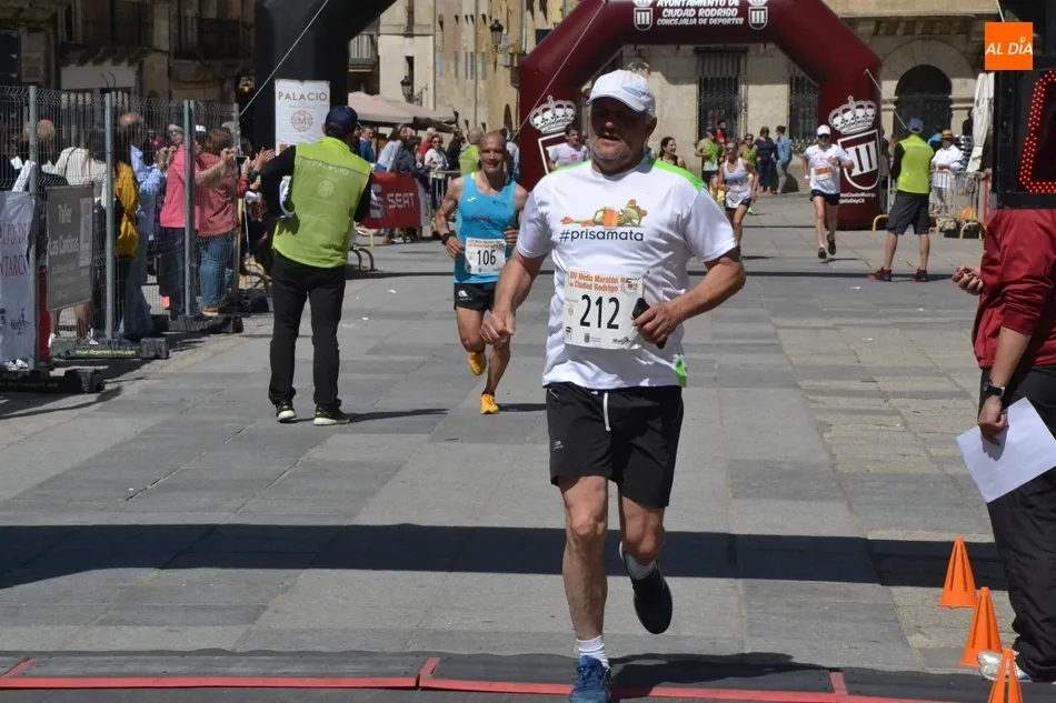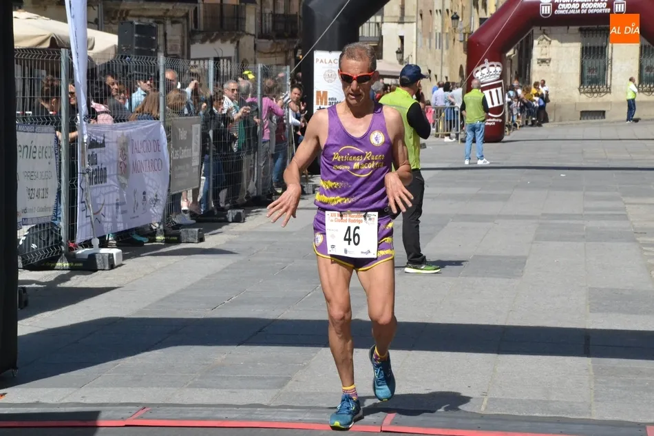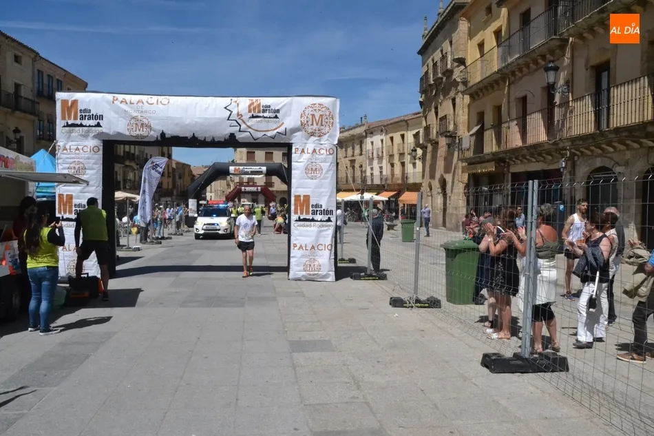 Ese atleta fue uno de los 4 que alcanzaron la Plaza Mayor mirobrigense cuando ya se había ?cerrado la meta? al alcanzarse el tiempo máximo establecido para completar la Media Maratón, que eran 2 horas y 15 minutos. En todo caso, esos 4 atletas tuvieron la oportunidad de pasar bajo el arco de meta, que todavía no se había desinflado. Y más aún, el último atleta en entrar se llevó una gran ovación de todas las personas que había por la Plaza, la mayoría de ellas a la sombra.