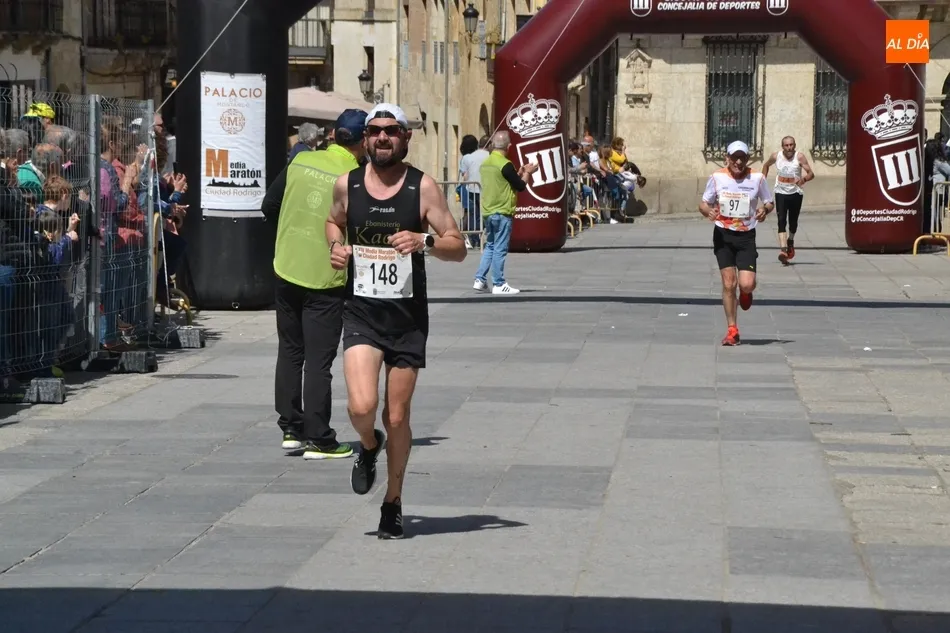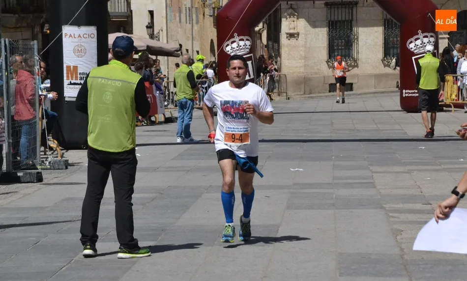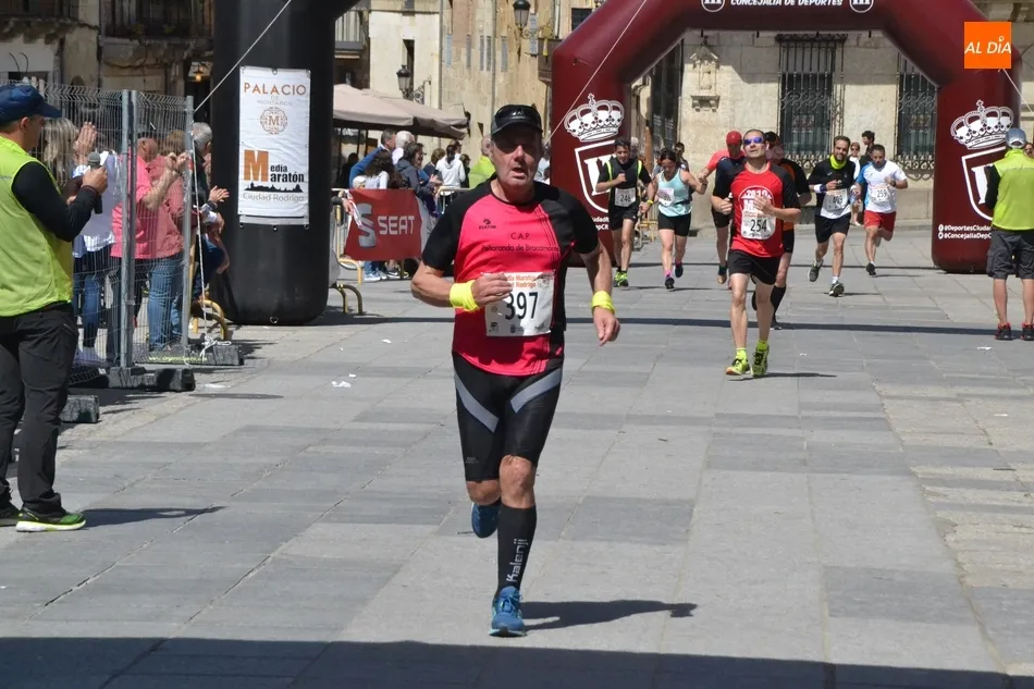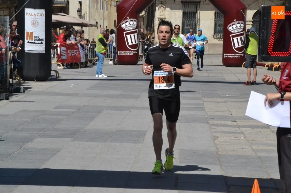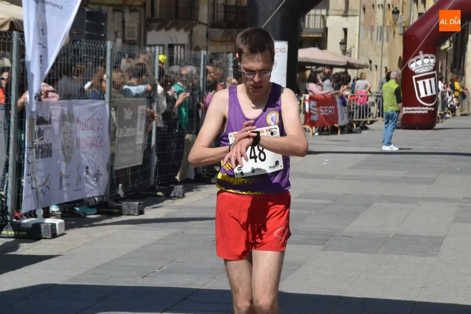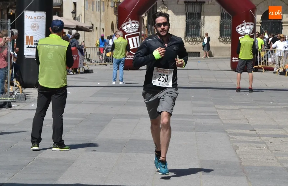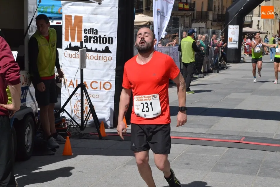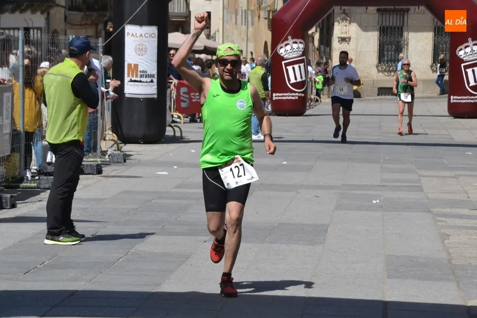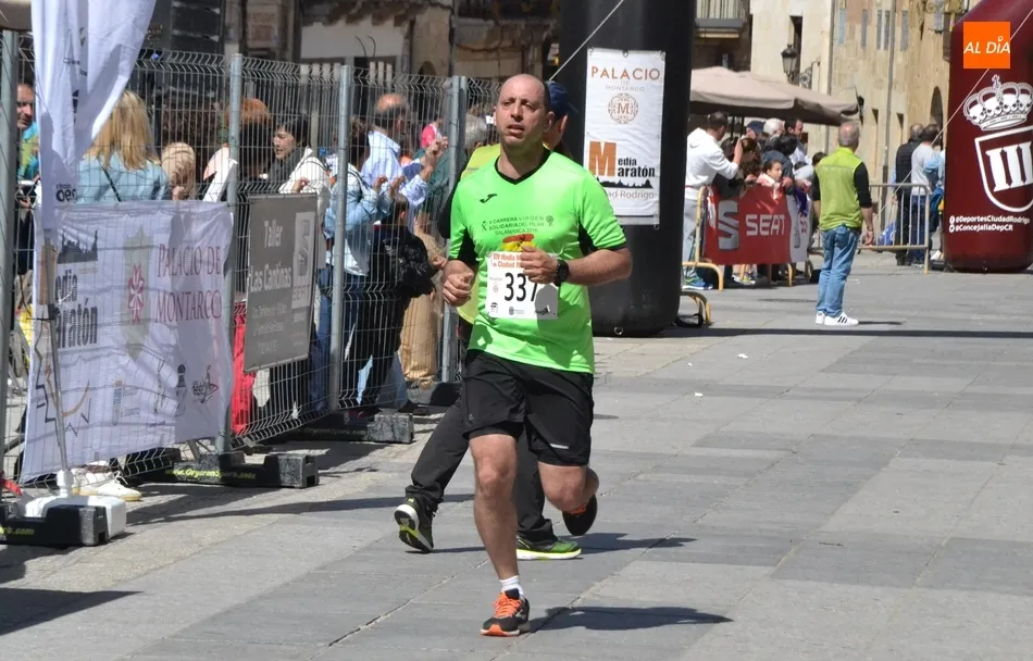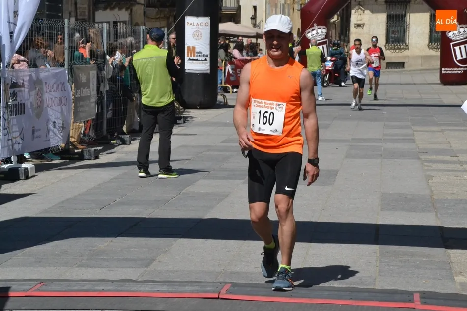Ese atleta fue uno de los 4 que alcanzaron la Plaza Mayor mirobrigense cuando ya se había ?cerrado la meta? al alcanzarse el tiempo máximo establecido para completar la Media Maratón, que eran 2 horas y 15 minutos. En todo caso, esos 4 atletas tuvieron la oportunidad de pasar bajo el arco de meta, que todavía no se había desinflado. Y más aún, el último atleta en entrar se llevó una gran ovación de todas las personas que había por la Plaza, la mayoría de ellas a la sombra.