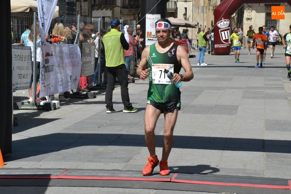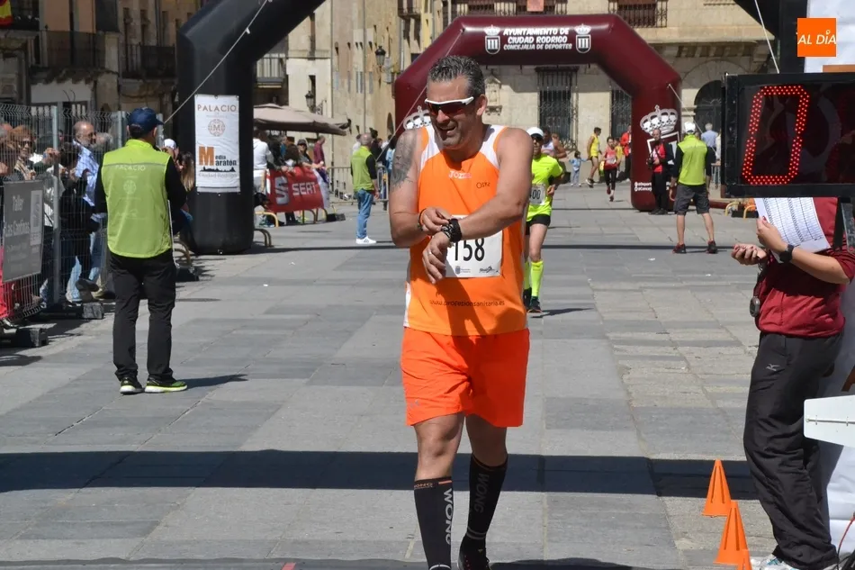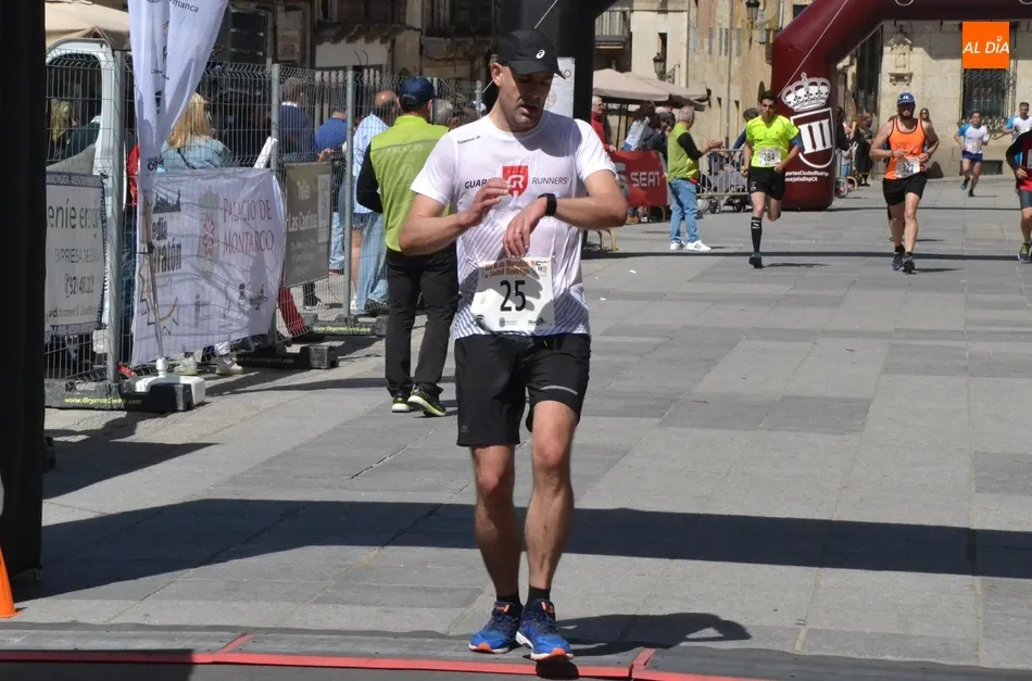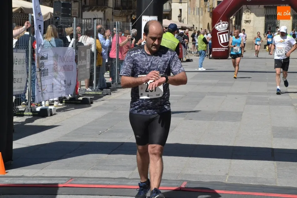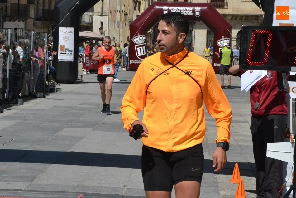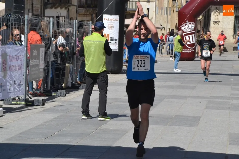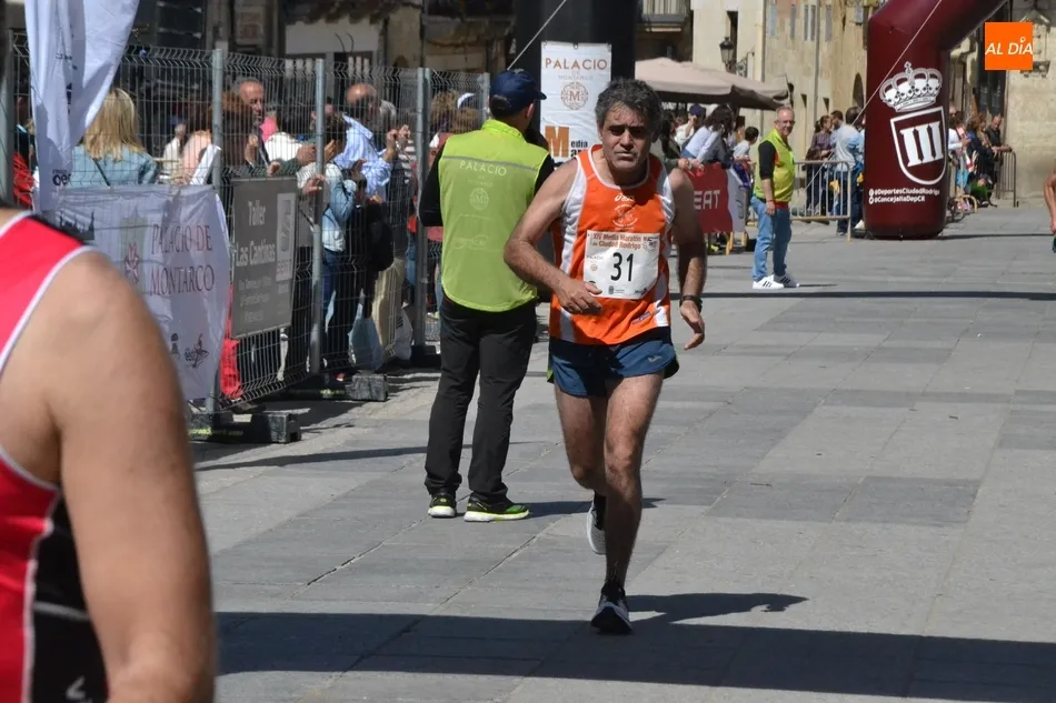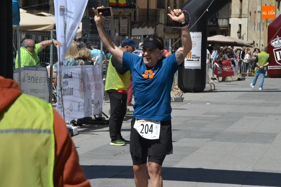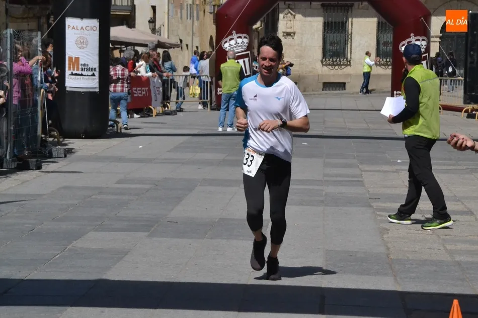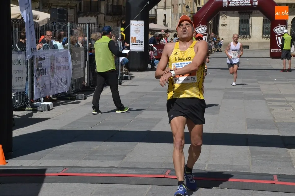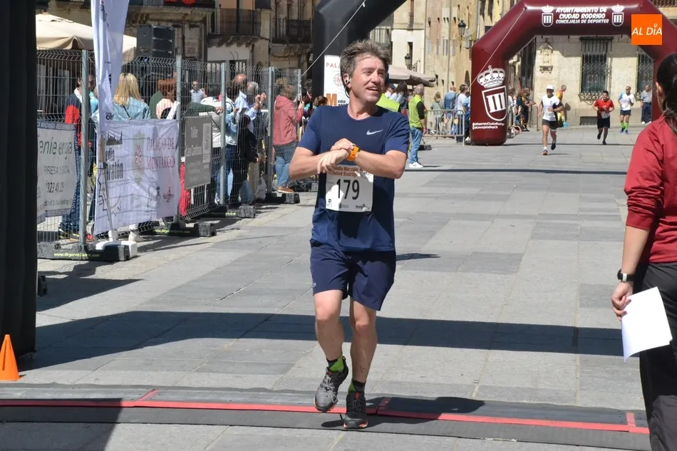 Ese atleta fue uno de los 4 que alcanzaron la Plaza Mayor mirobrigense cuando ya se había ?cerrado la meta? al alcanzarse el tiempo máximo establecido para completar la Media Maratón, que eran 2 horas y 15 minutos. En todo caso, esos 4 atletas tuvieron la oportunidad de pasar bajo el arco de meta, que todavía no se había desinflado. Y más aún, el último atleta en entrar se llevó una gran ovación de todas las personas que había por la Plaza, la mayoría de ellas a la sombra.
