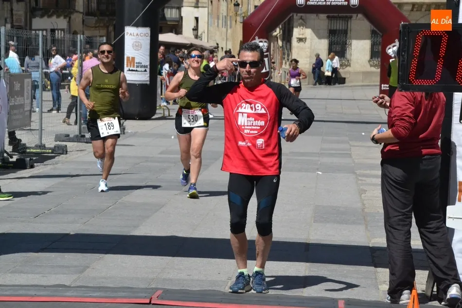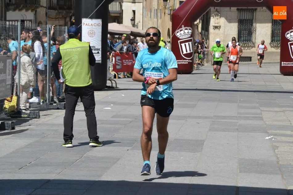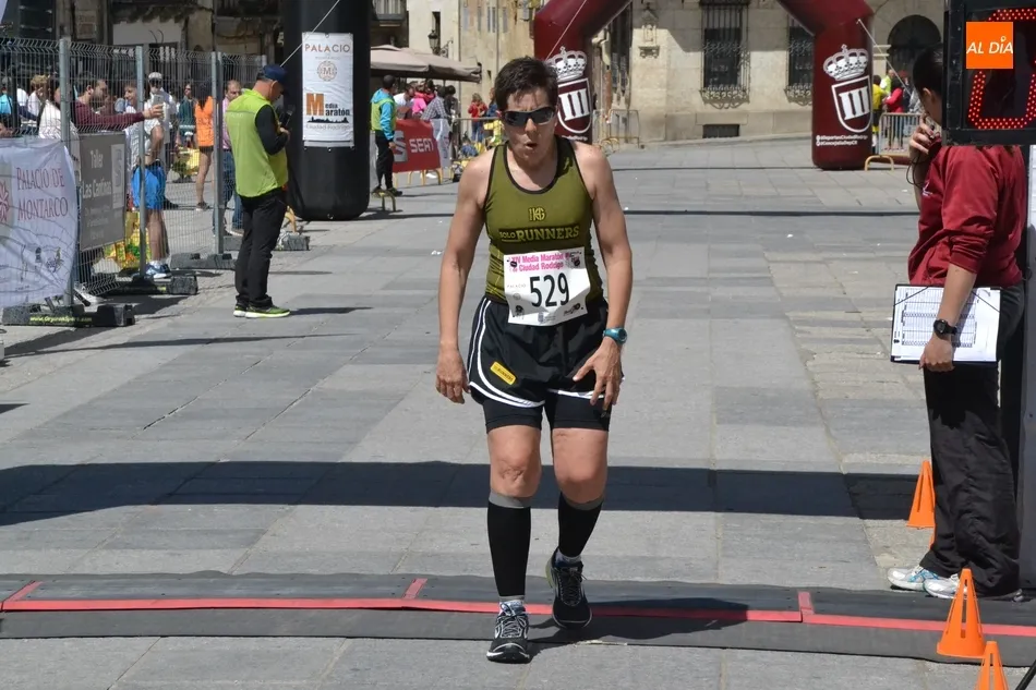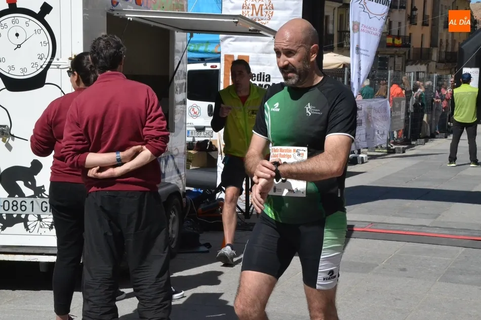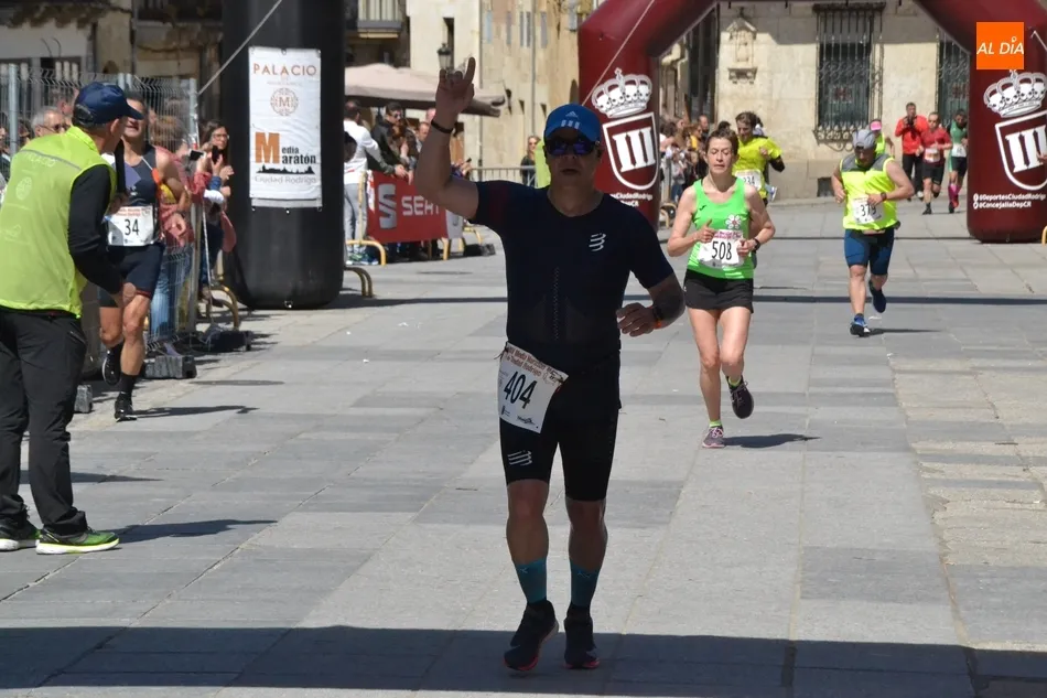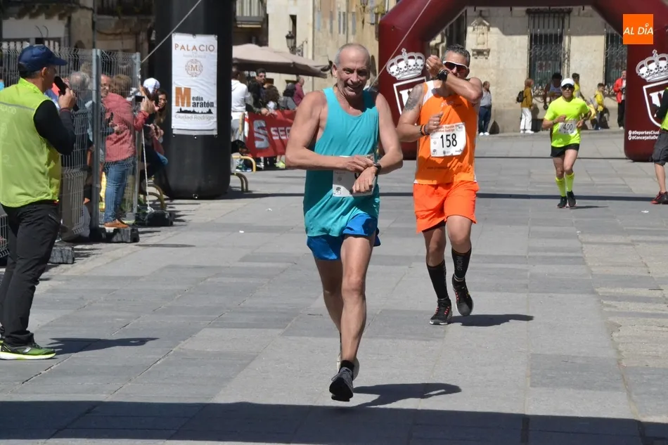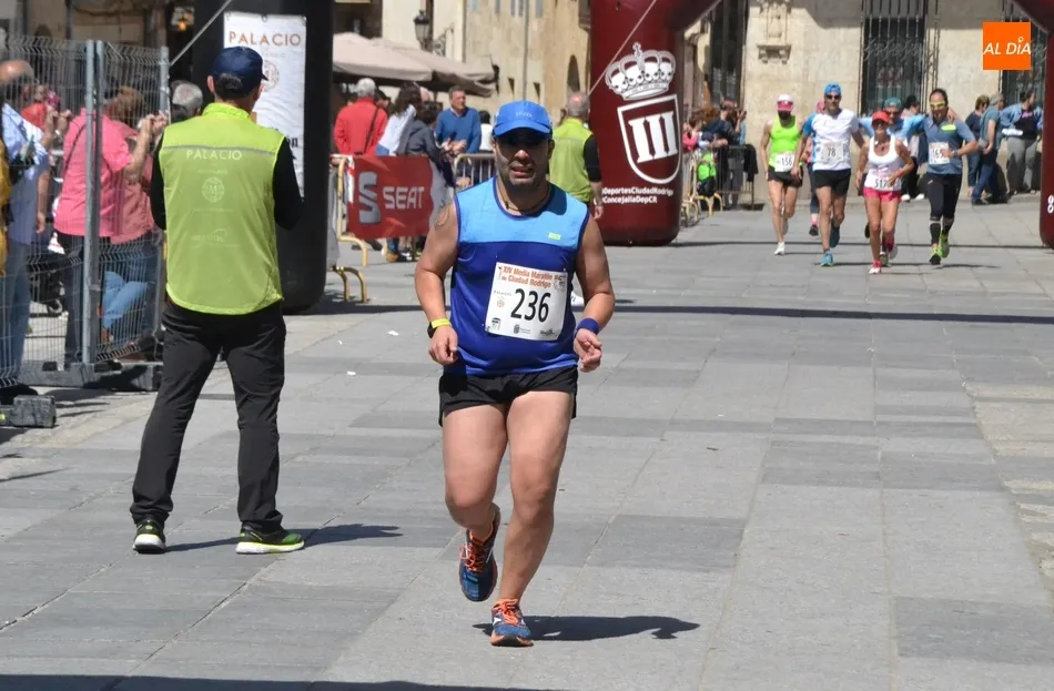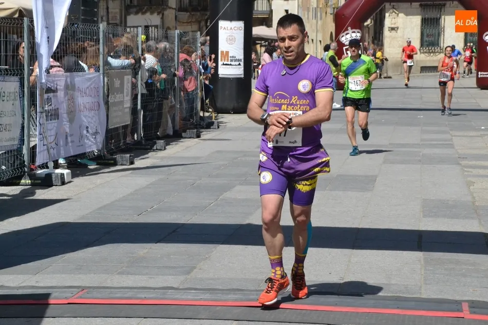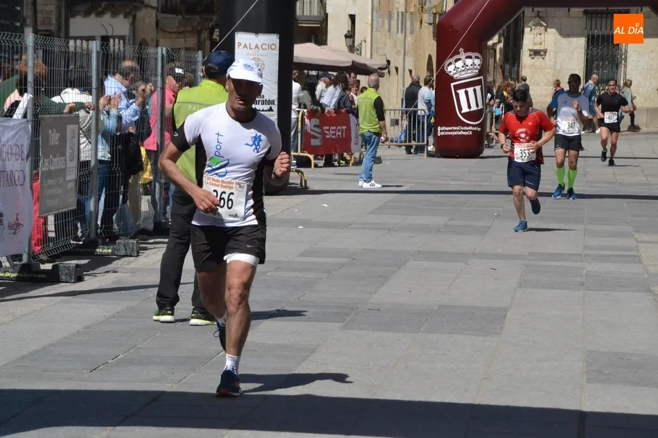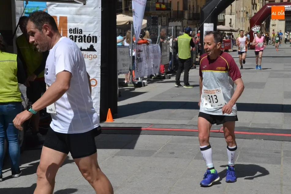 Ese atleta fue uno de los 4 que alcanzaron la Plaza Mayor mirobrigense cuando ya se había ?cerrado la meta? al alcanzarse el tiempo máximo establecido para completar la Media Maratón, que eran 2 horas y 15 minutos. En todo caso, esos 4 atletas tuvieron la oportunidad de pasar bajo el arco de meta, que todavía no se había desinflado. Y más aún, el último atleta en entrar se llevó una gran ovación de todas las personas que había por la Plaza, la mayoría de ellas a la sombra.