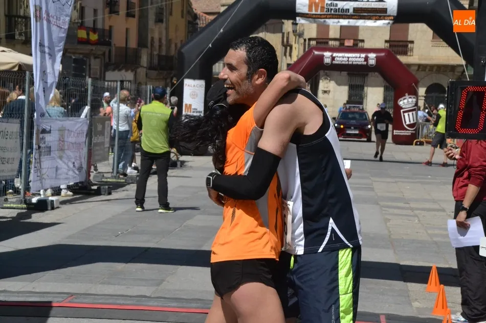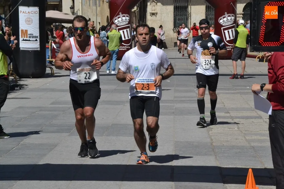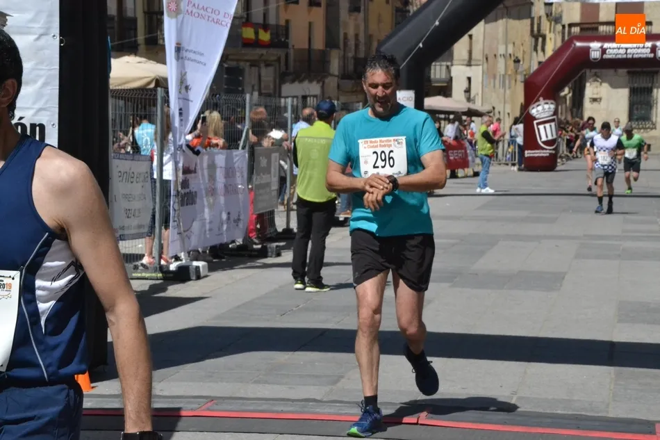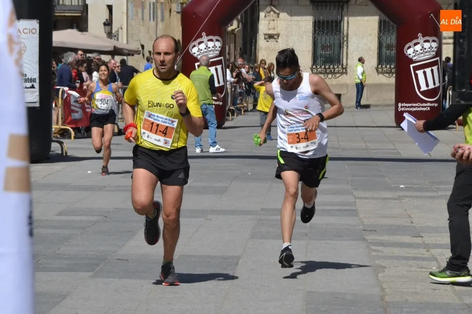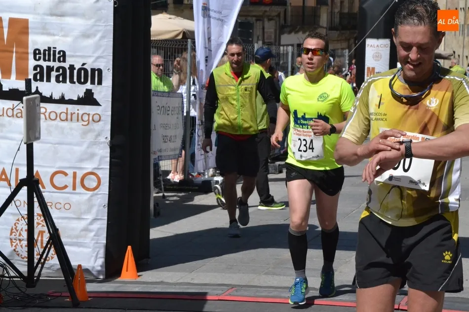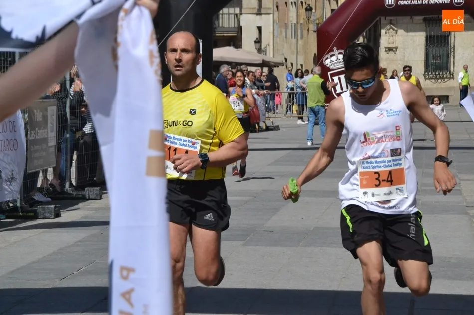 Tras dos años con mal tiempo (en el último domingo del mes de abril, eso sí), la edición de este año de la Media Maratón entre Sancti-Spíritus y Ciudad Rodrigo -recolocada en el mes de mayo debido a las Elecciones Generales- ha estado marcada por el sol y las altas temperaturas que hubo en la mañana dominical, lo que hizo mella en bastantes atletas, que llegaron mucho más sofocados a la Plaza Mayor mirobrigense, meta de la prueba.