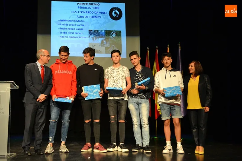 De esta forma, los Premios Motivar para Emprender han otorgado tres ganadores, correspondiendo el primer premio, a la idea empresarial ?Perdices Hork. Criadero de perdices para su comercialización?, presentada por los alumnos del IES Leonardo da Vinci, de Alba de Tormes, Javier Martín Martín, Andrés López García, Pedro Rollán García, Sergio Rivas Panero y Adonis Jiménez Arroyo; el segundo premio fue para ?Turistfront. Operador turístico especializado en el entorno de la Sierra de Béjar?, presentado por los alumnos del IES Ramón Olleros, de Béjar, Juan Carlos García y David Miñas Barbero; y el tercero para ?Agrinsecto S.C., Criadero de insectos para su utilización como plaguicida natural y consumo humano?, presentado por los alumnos del IES Peñaranda de Bracamonte, Óscar Nava Sánchez, Manuel López Sánchez, Aitor Rodríguez García, Sergio Arribas Labajos y Pablo Domínguez García.