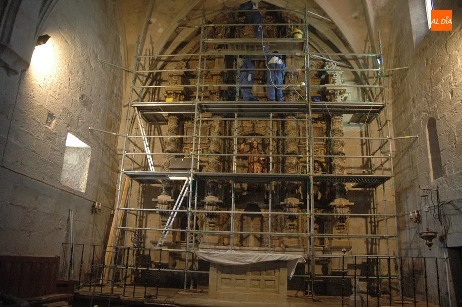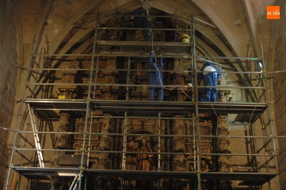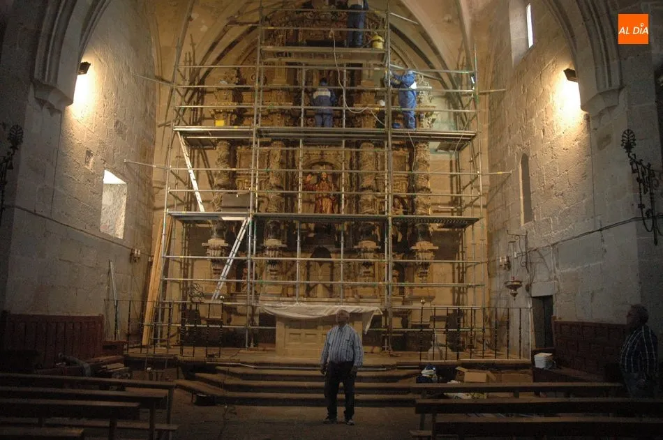 Jesús Ramos Tejero, responsable de la empresa en esta actuación y técnico en control de plagas, confirmaba a LAS ARRIBES AL DÍA ?el tratamiento curativo contra insectos xilófagos?, concretamente, anóbidos, que se está aplicando en el retablo de la iglesia El Salvador.