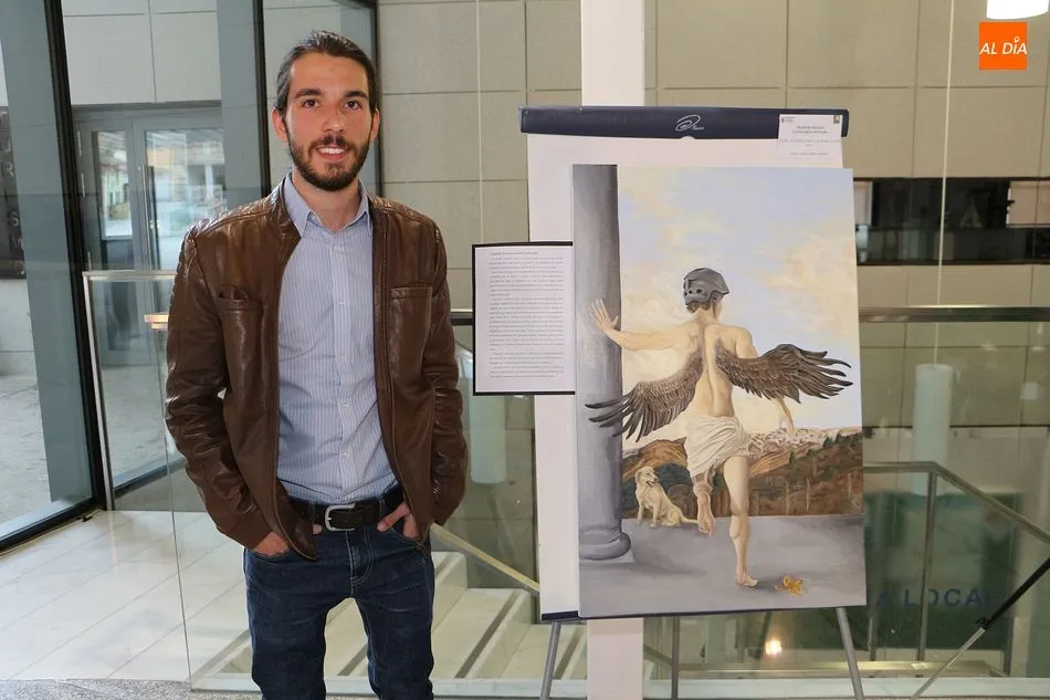 Aarón Rueda, pintor bejarano, se impuso en la categoría de pintura con su obra 'Cuidado Ícaro, o el miedo a volar'. "Me inspiré en la mitología clásica, pero actualizándolo con elementos modernos, una revisitación contemporánea, para hablar sobre el miedo de emprender cosas por tu cuenta, de echar a volar. Esa emoción por el aprendizaje en el que quizá caigas unas cuantas veces, pero con ilusión. Estos premios son una gran ayuda para poder seguir trabajando en el arte", indicó Rueda.