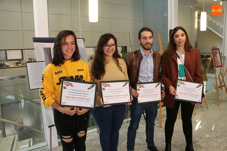 Andrea González, Deina Porras, Aarón Rueda y Carolina Sánchez reciben los premios del Certamen...