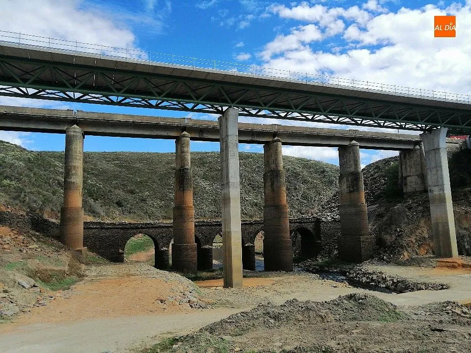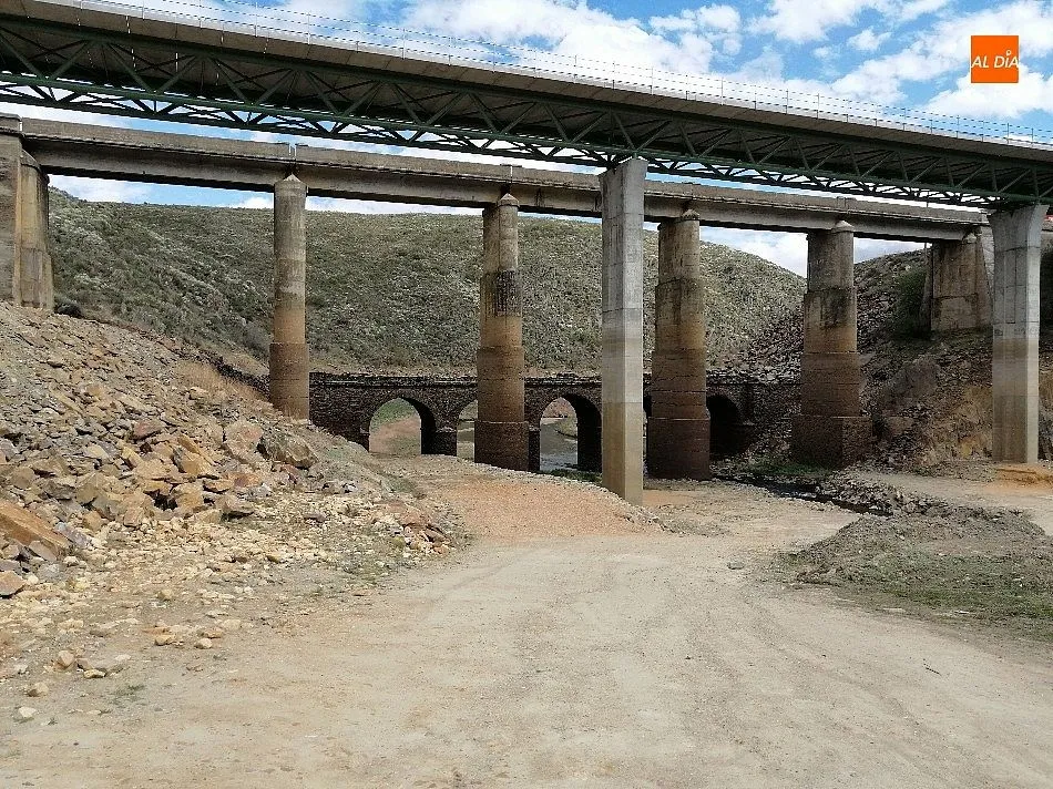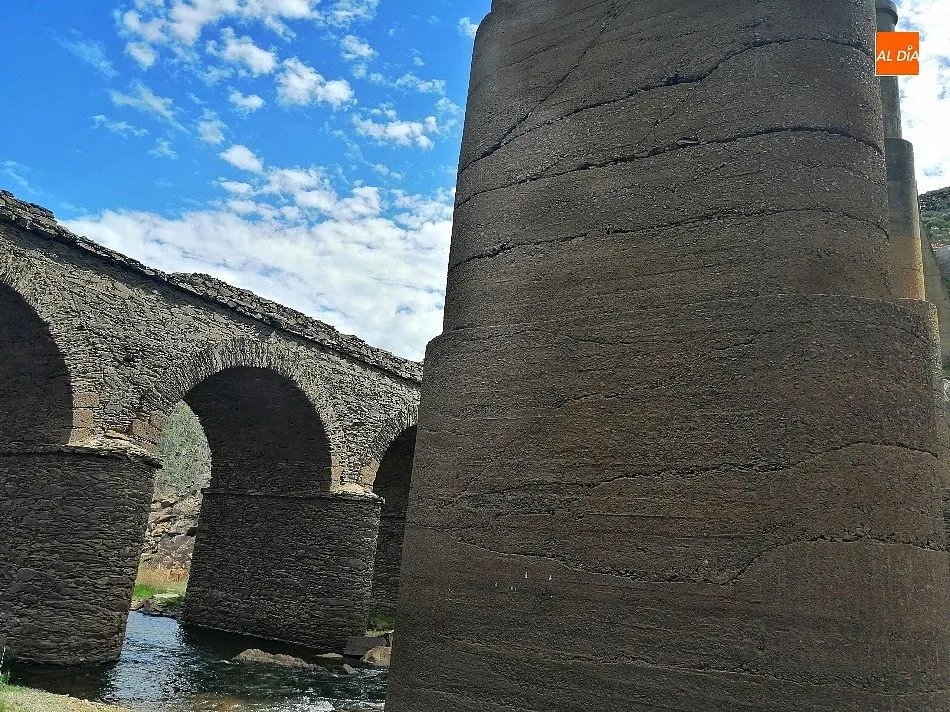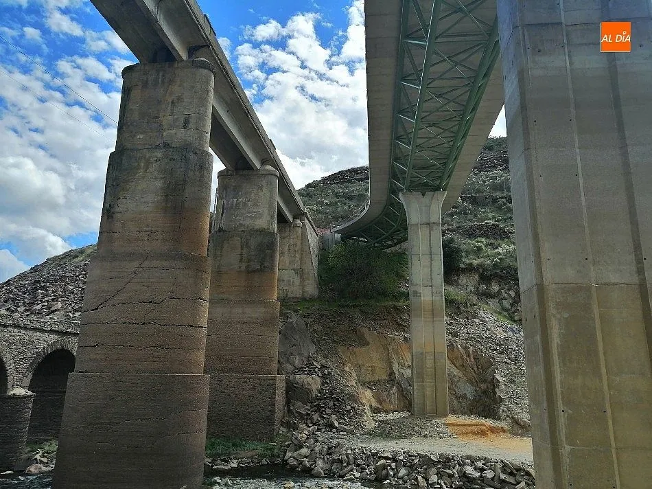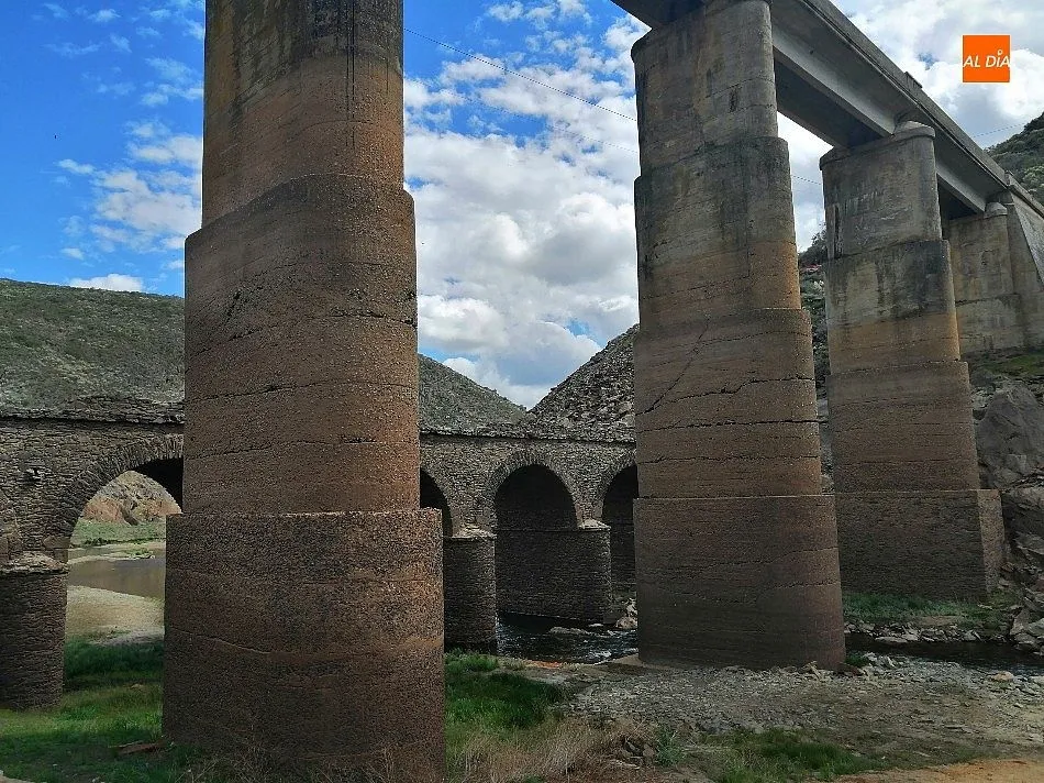 Por el momento, se puede contemplar la espectacular estampa de los tres puentes que ha tenido el Risco (que están separados por escasos metros): el más antiguo, de baja altura, que sólo ha sido visible durante las últimas décadas cuando el río ha traído poco caudal; el que se ha estado usando hasta que se cerró la zona a la circulación el pasado mes de enero; y la flamante nueva estructura, que los vecinos del sur de la comarca esperan que se complete lo antes posible.
